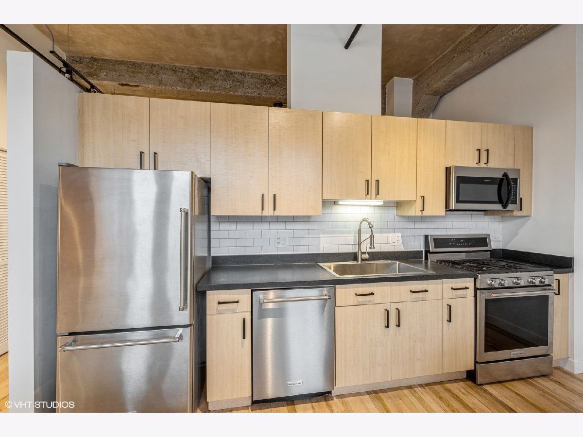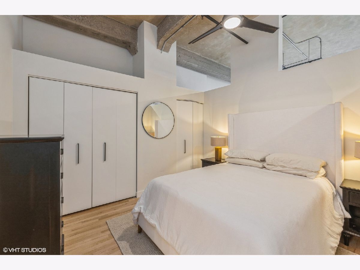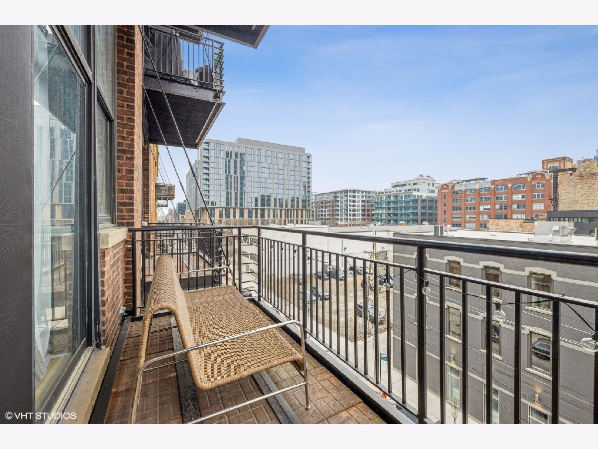 Rarely available 1-bedroom, 1-bath concrete loft in the highly sought-after Washington Blvd Lofts. This stunning home features soaring 14-foot concrete ceilings, exposed brick walls, and floor-to-ceiling west-facing windows that flood the space with natural light. The open, airy floor plan extends to a spacious private balcony. The kitchen offers stainless steel appliances, maple cabinetry, and granite countertops, seamlessly opening to the living and dining area. The living room is anchored by a gas fireplace with a decorative mantle and complemented by hardwood floors throughout. Thoughtful storage abounds with custom-built coat and bedroom closets. Additional highlights include newer in-unit stacked washer and dryer and a large, private, lockable storage cage located in a secure, climate-controlled storage room. A true loft living opportunity in a premier West Loop location close to the highway, Randolph Street restaurant row, Fulton Market, Mariano's, Whole Foods, Greektown, shopping, nightlife and more! 1 Deeded exterior parking space is included.