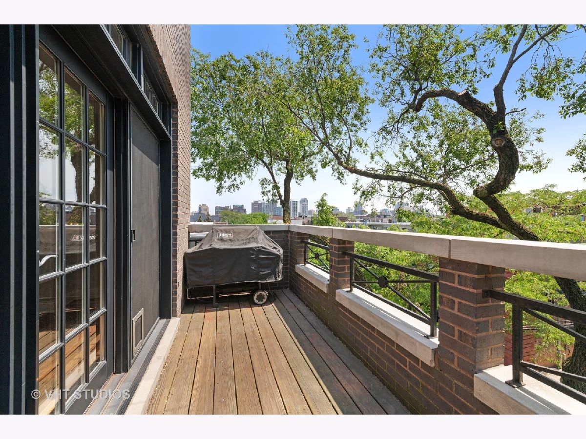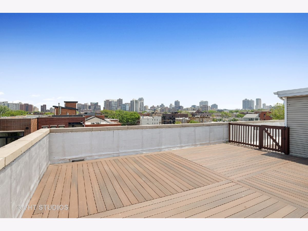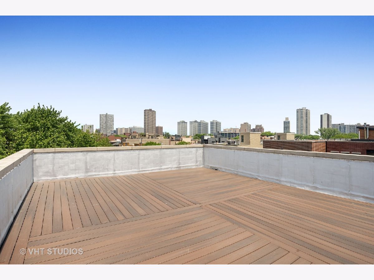 A beautiful East Lakeview penthouse with 3 dramatic outdoor spaces Exquisite extra wide 1800 square foot 2 bedroom 2 bath penthouse with 3 private decks including a roof deck with spectacular views. Large sundrenched rooms from four directions of unobstructed light. Enormous living room with wood burning fireplace and sliding glass doors that open onto an intimate tree top balcony Separate dining area opens onto a chefs kitchen with profession grade appliances, wine refrigerator and eat in center island. Primary bedroom boasts spa bath, custom closets and private deck. Spacious 2nd bedroom also has spacious closets and luxury stone bath. Beautiful inlayed hardwood floors throughout. Private roof deck has spectacular city views. 1 car garage parking included. Located in the Nettelhorst Elementary and Lakeview High School districts, this meticulously maintained home is close to restaurants, shopping, parks, public transportation and everything that Lakeview has to offer. Refinished floors and freshly painted, this home is move in ready.