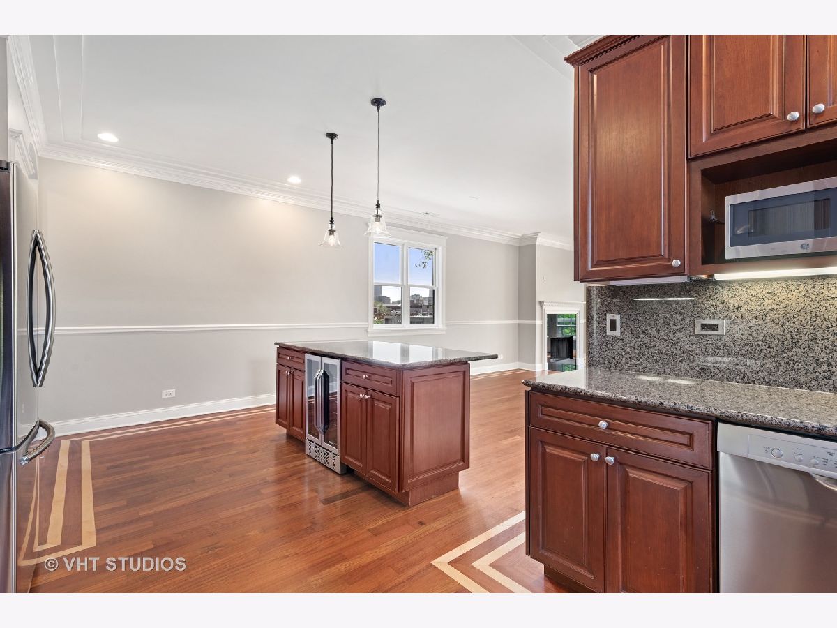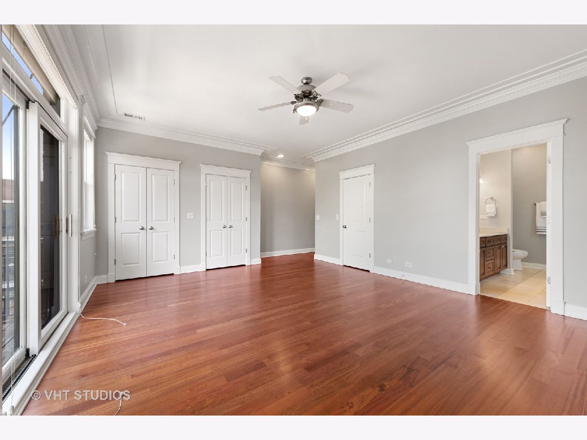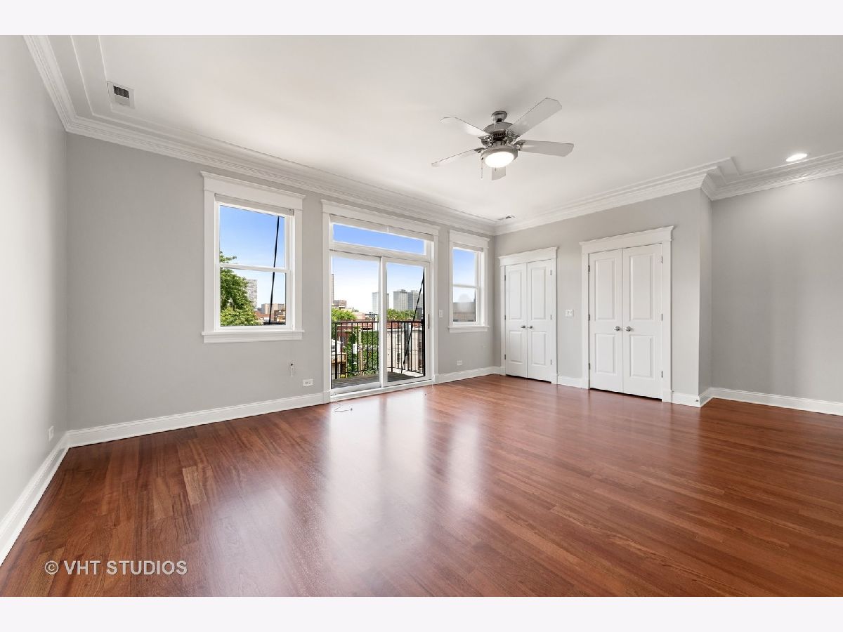 A beautiful East Lakeview penthouse with 3 dramatic outdoor spaces Exquisite extra wide 1800 square foot 2 bedroom 2 bath penthouse with 3 private decks including a roof deck with spectacular views. Large sundrenched rooms from four directions of unobstructed light. Enormous living room with wood burning fireplace and sliding glass doors that open onto an intimate tree top balcony Separate dining area opens onto a chefs kitchen with profession grade appliances, wine refrigerator and eat in center island. Primary bedroom boasts spa bath, custom closets and private deck. Spacious 2nd bedroom also has spacious closets and luxury stone bath. Beautiful inlayed hardwood floors throughout. Private roof deck has spectacular city views. 1 car garage parking included. Located in the Nettelhorst Elementary and Lakeview High School districts, this meticulously maintained home is close to restaurants, shopping, parks, public transportation and everything that Lakeview has to offer. Refinished floors and freshly painted, this home is move in ready.