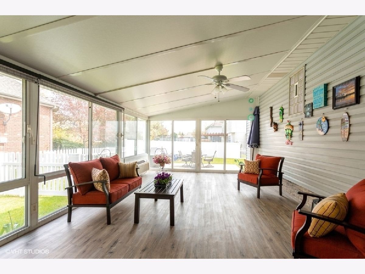 Come see this beautiful, 3 step ranch in highly desirable Bluestone Bay. This home sits on an oversized corner lot with a fenced in yard and lovely front porch to enjoy those beautiful summer nights or morning coffee. This home is move-in ready with 3 large bedrooms and 2.5 fully remodeled bathrooms. Upon entry you will find a bright and inviting combined living & dining room. This floor plan boasts an open concept kitchen with newer SS appliances, a large family room with gas fireplace and a sunroom with full windows & screens plus electric heat & AC so it can be used year round. Head downstairs you will find a very large partial basement ready for finishing with concrete crawl space. Furnace is approx. 15 years old, roof and appliances are 8 years old, HWH 5 years old, AC 3 years old, BRAND NEW bedroom & DR windows replaced this year. Conveniently located around the corner from the park, and within close proximity to Old Plank Trail, restaurants, shopping, entertainment, the Metra & the award winning Lincoln-Way (Central) HS district 210. Schedule your showing today--this one won't last long!! A preferred lender offers a reduced interest rate for this listing.