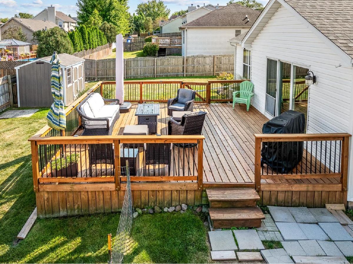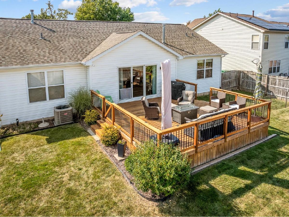AMAZING RANCH IN BELVIDERE! THE CURB APPEAL INVITES YOU IN TO A SPACIOUS ENTRY. THE LIVING ROOM FEATURES VAULTED CEILINGS, GAS FIREPLACE AND OVERLOOKS THE FENCED BACK YARD AND A DECK BIG ENOUGH FOR LARGE GATHERINGS. CABINET FILLED EAT-IN KITCHEN FEATURING QUARTZ COUNTERS, TILE BACKSPLASH AND SS APPLIANCES. ONE SIDE OF THE LIVING SPACE HOLDS THE PRIMARY BEDROOM SUITE, FEATURES INCLUDE DOUBLE BOWL VANITY, FULL BATH AND WALK-IN CLOSET. THERE ARE 2 SECONDARY BEDROOMS AND FULL BATH ON THE OTHER SIDE OF THE LIVING SPACE. FIRST FLOOR LAUNDRY COMPLETES THE MAIN FLOOR. FINISHED LOWER LEVEL OFFERS LARGE REC ROOM WITH ELECTRIC FIREPLACE AND BUILT IN CABINETS. THERE IS A SPACIOUS OFFICE. BIG UTILITY ROOM WITH BUILT IN SHELVING PLUS A WORKSHOP COMPLETE THE LOWER LEVEL. THE BACKYARD IS FENCED AND HAS A BIG STORAGE SHED. SO MUCH NEW- ROOF, HVAC, CA, WTR HTR, PATIO DOOR, SS APPLIANCES, QUARTZ COUNTERS, SOME WINDOWS, LIGHTING, NEWER FLOORING, DECK BOARDS, RAILING AND SHED WITHIN THE LAST 5 YEARS. REFRIGERATOR IN THE LOWER LEVEL, WALL MOUNT BRACKETS FOR TV AND TRELlIS STAY. BEAUTIFUL HOME!!