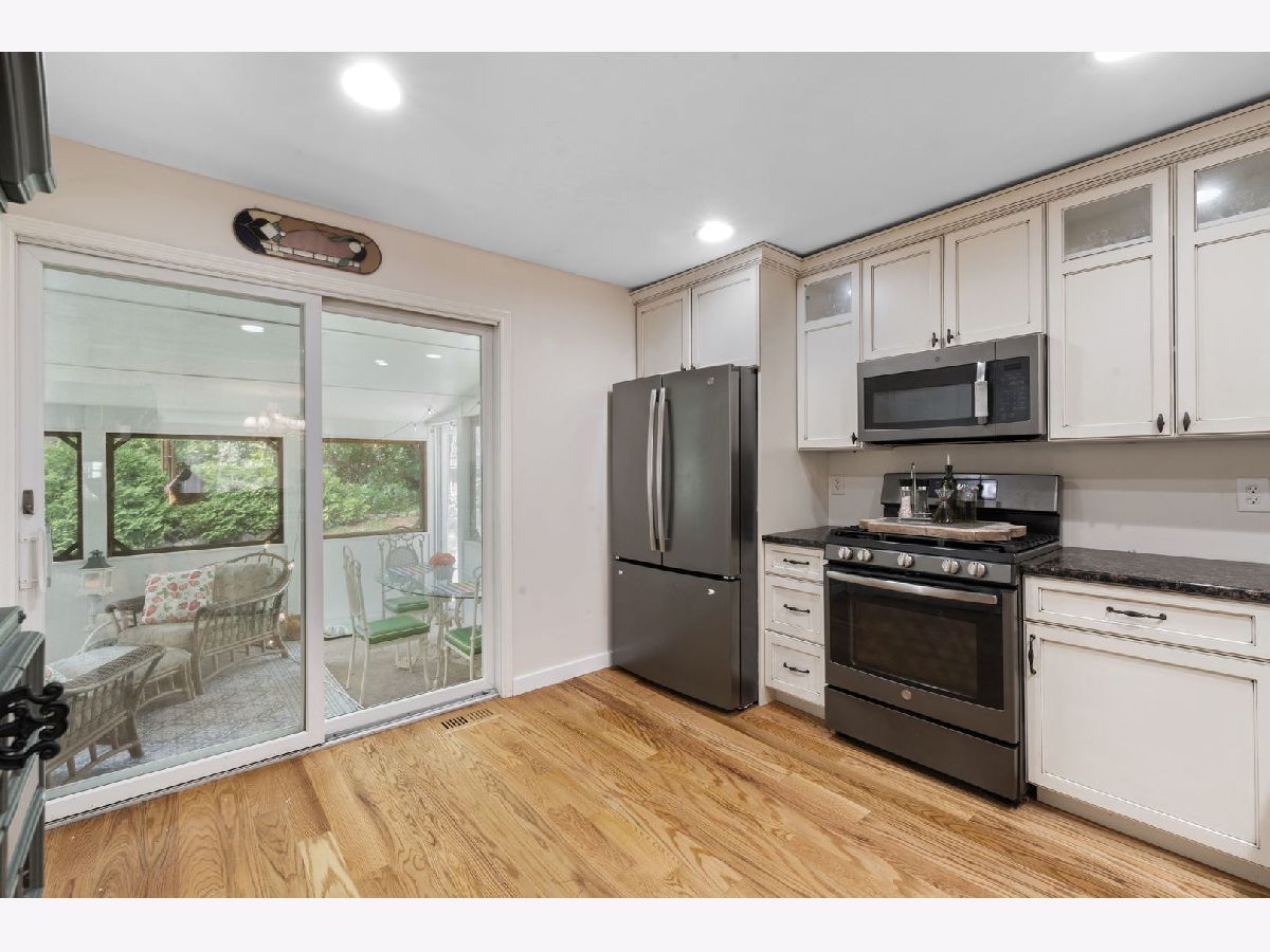Welcome to this beautifully maintained townhouse, perfectly situated on a private and spacious end lot, just moments from both downtown Geneva and St. Charles! Experience the best of both towns with acclaimed festivals, award-winning dining, boutique shopping, and year-round entertainment, all located within the top-rated Geneva School District 304. This prime location offers unbeatable outdoor access, with a private path just steps from your front door leading to Wheeler Park, featuring mini golf, disc golf, playgrounds, and open green space. The path also leads to Mount Saint Mary Park, known for its beautiful sculpture displays, and the scenic Fox River Trail, offering miles of walking, biking, or running along the river. Whether you're in the mood for a quiet nature stroll, a round of golf, or a picnic under the Pavilion, this vibrant location offers endless ways to enjoy the outdoors. Inside, hardwood floors flow seamlessly throughout the open-concept layout, while oversized windows bathe the home in natural light, creating a warm and inviting atmosphere. The spacious living room, featuring a cozy gas log fireplace and three large windows, provides the perfect place to relax or gather with guests. It flows effortlessly into the dining room and kitchen, making it easy to stay connected while entertaining or enjoying everyday meals. The kitchen is both stylish and functional, featuring white cabinetry, granite countertops, GE slate appliances (2019), a pantry, and counter seating. A sliding glass door opens to a large enclosed porch, perfect for morning coffee or evening drinks overlooking the private and picturesque backyard. The spacious primary bedroom offers a peaceful retreat with a walk-in closet featuring custom built-ins and a completely remodeled ensuite bath (2025), highlighted by herringbone tile flooring and a sleek glass-enclosed shower with exposed pipe showerhead. The second bedroom is equally spacious and includes custom built-in shelving, a ceiling fan, and generous closet space. A fully remodeled second full bath (2024) boasts a deep soaker tub and stylish finishes. Additional highlights on the main level include two closets, offering plenty of storage. The lower level features a spacious mudroom with a closet and access to the 2-car double-wide garage. You'll also find a large laundry room with a Maytag XL washer and dryer (2019), custom-built-in shelving, and a huge crawl space with built-ins that spans the length of the garage, perfect for even more storage or organization. Step outside to a serene and private backyard complete with mature trees, a lounge area, and a fire pit, ideal for outdoor entertaining, gardening, or simply unwinding in nature. Additional updates include new lighting throughout, featuring chandeliers in the dining room and master closet, recessed lighting in the living room, and updated electrical outlets (2020). This move-in-ready home offers the perfect blend of comfort, convenience, and community, ideal for those looking to enjoy a walkable lifestyle near parks, trails, and the vibrant heart of downtown Geneva and St. Charles.