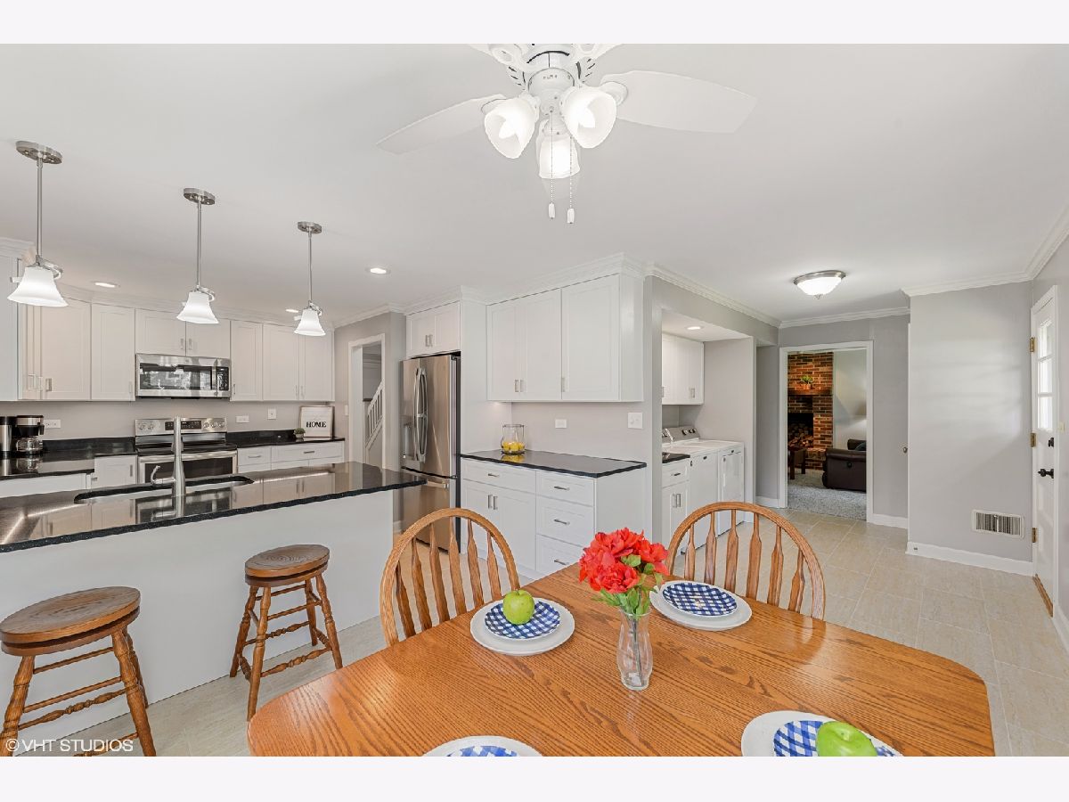 Tantalizing colonial that has been all spruced up in a prime and perfect Arlington Heights location awaits you! Attractive NEW landscaping, freshly painted shutters, garage door, and NEW exterior lighting illuminating the recently resealed driveway ready for your viewing! A sense of calm and serenity washes over you immediately as you enter through the BRAND NEW front door. The refurbished entry hall matches the exquisite refinished hardwood flooring featured throughout the home complimented by the soothing crisp color selection. Enormous sun-lit Living Room gracefully flows into tastefully decorated Dining Room. The completely gutted Kitchen has been transformed into a chef's paradise complete with ALL NEW SS APPLIANCES, NEW 42' white shaker cabinets, stunning quartz counters, all NEW lighting and perfect all NEW porcelain floors. Magnificent views provided from bay window and slider into the generous sized eating area. Travel down the hallway thru the fully equipped Laundry area into the newly carpeted Family Room boasting brick fireplace with rustic mantle, perfect alcove space for big screen TV, closets galore! A large walk in closet that has flexible purpose, and a lovely updated 1st floor bathroom complete the main floor. 2nd level sleeping area is the home to a massive Master Bedroom suite plus 3 other light filled and oh so spacious bedrooms and a center hall bath with tub. There's more... a finished basement, ready for family activity, BRAND New exquisite deck that has been built off the breakfast area leading into the lush fully fenced backyard hosting mature sweeping trees, an amazing firepit and room for whatever you imagine! Near Greens park, in the highly rated Olive, Thomas, and Hersey school boundaries, and a short distance to the trendy downtown and the Metra. It doesn't get better than this!