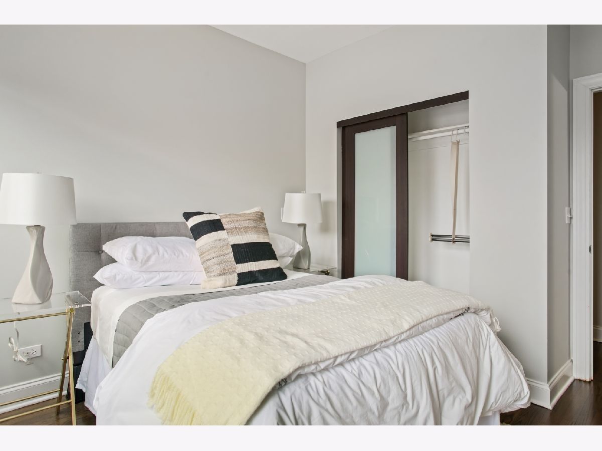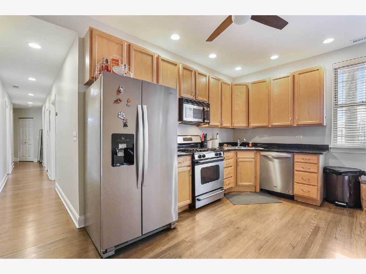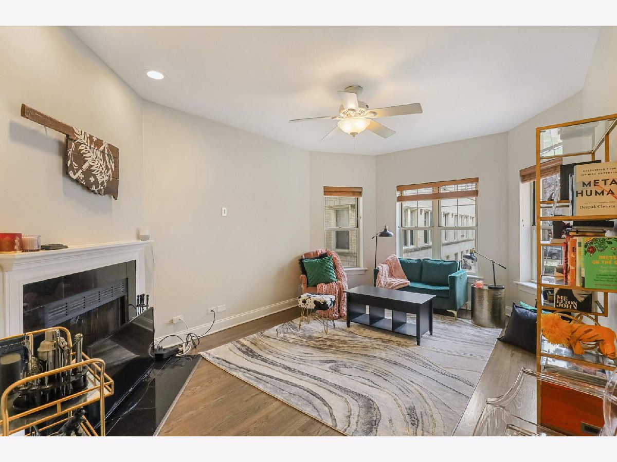 This elevated first floor unit is filled with natural light and is situated on a beautiful tree-lined street, just steps from the lakefront! Enjoy the parks, beach, Montrose Dog Beach, shopping, great restaurants & nightlife! Located steps to the Wilson Red/Purple Line stop with the new entrance on Sunnyside next to Target, as well as several CTA bus lines. This recently updated home features hardwood floors throughout, central heat and AC, in-unit laundry, and additional storage - great for storing bikes. Additional highlights include a cozy living room with wood-burning fireplace that overlooks the lovely courtyard and a spacious eat-in kitchen featuring 42" cabinets, granite counters, and stainless-steel appliances. The sizeable primary bedroom has two closets with custom shelving and storage as well as an en suite bathroom with spa tub. A spacious secondary bedroom includes generous closet space with the newer second bathroom located across the hallway. Nothing to do but move in! Enjoy the easy permit street parking.