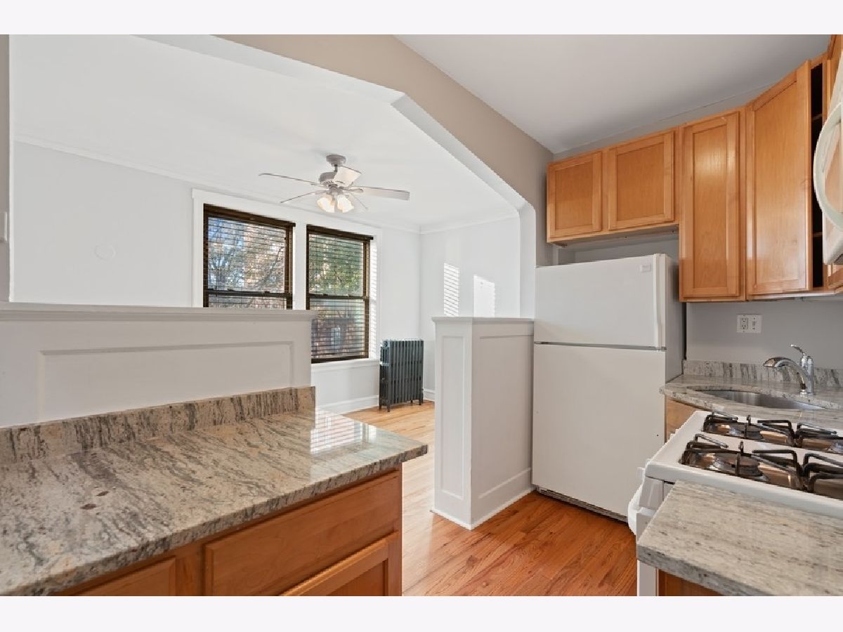 Vintage 1 bedroom condo located in west Hyde Park. A large living room overlooks the courtyard entrance. Well maintained hardwood throughout and bright natural light from the south facing windows. Original built ins and deco details combined with recent updates. Granite countertops, microwave and range in an exposed kitchen. Close to highways, bus, train and historical park.