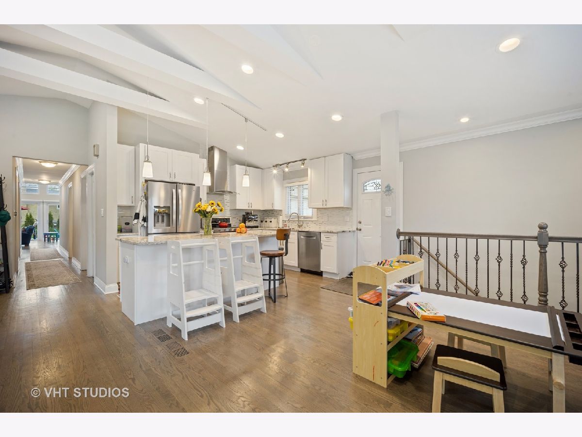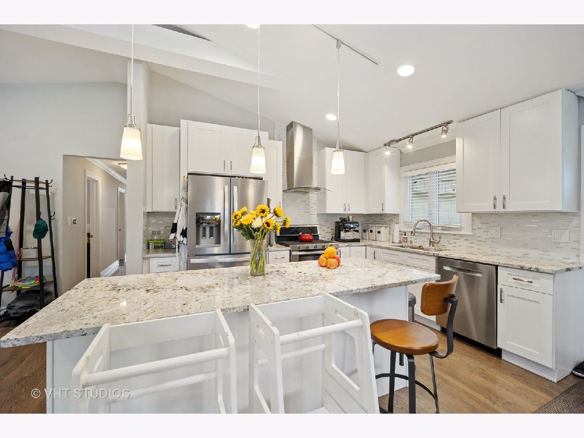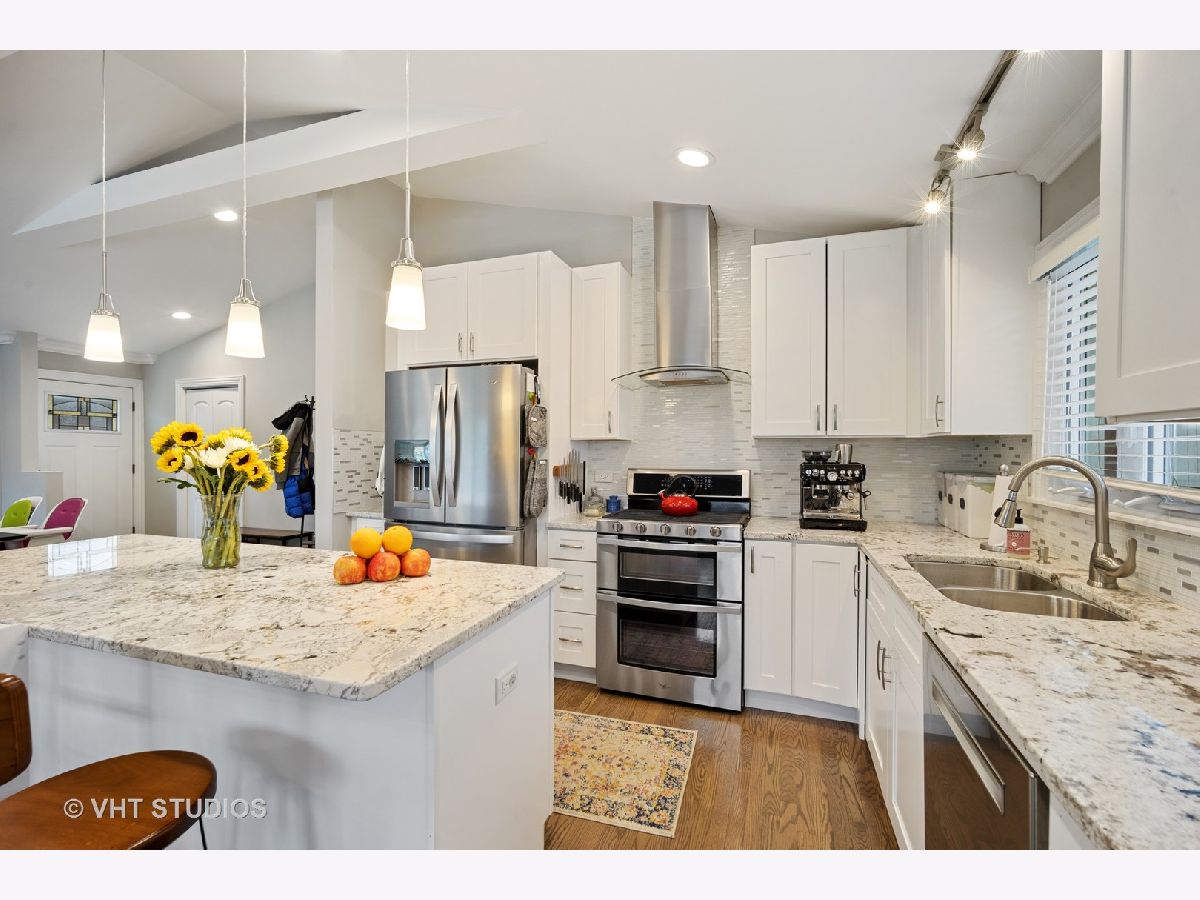 Beautiful newly renovated ranch with an amazing open concept floor plan. The vaulted ceiling front room with floor to ceiling windows brings in tons of natural light. A stunning kitchen with custom cabinetry, granite counters and stainless steel appliances. Three bedrooms on the main level with a master suite. A vaulted ceiling family room with a fireplace overlooking the expansive back yard that is perfect for entertaining featuring a paver patio & fire pit. A full finished basement with a large rec room, wet bar, 2nd fireplace, guest bedroom, and an additional full bath. Tons of additional storage throughout. A great location close to shopping, dining, parks, transportation, schools and just minutes to Uptown Park Ridge
