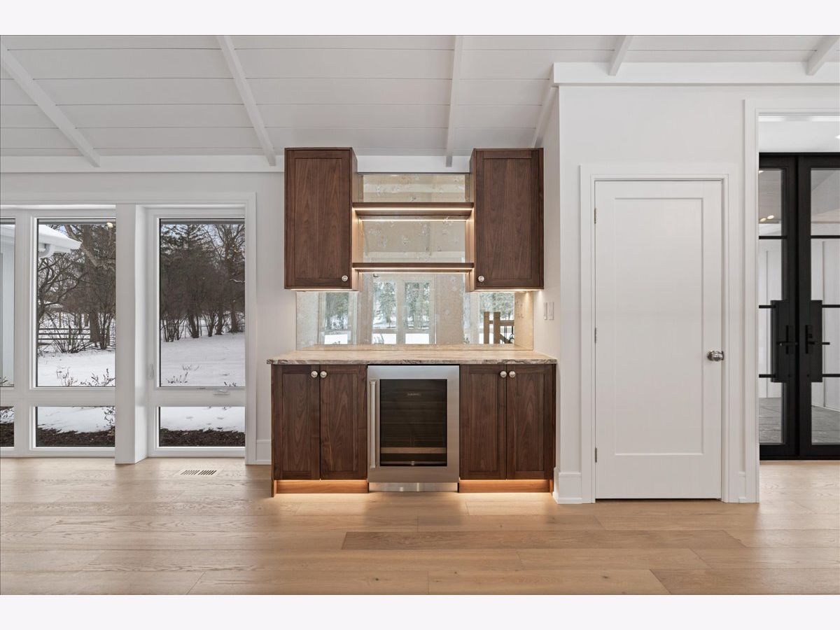 Welcome to your private sanctuary in East Glenview-a breathtaking, single-story ranch quietly sited on over one acre of pristine grounds yet mere steps from downtown Glenview's hottest new restaurants, cafes and boutiques. This exceptional 5-bedroom, 4-bathroom home combines generous living spaces with thoughtful modern updates, all arranged on one effortlessly accessible level. Key Features: Expansive Open Floorplan: Vaulted ceilings soar above the light-filled great room, anchored by a dramatic stone fireplace and richly grained hardwood floors. Chefs Kitchen: Centered by a quartz-topped island with waterfall edges, the kitchen boasts paneled 36inch Sub-Zero refrigeration and 36inch freezer, a Wolf six-burner range, built-in Wolf coffee station and an integrated walk-in pantry-perfect for entertaining. In addition, you have a massive 8 x 12 scullery pantry for all of your entertaining preparation and catering needs. Covered Porch Oasis: Step outside through oversized sliding doors to a generous porch with vaulted ceiling-perfect for morning coffee or evening al fresco dining while overlooking lush, park-like grounds. Five Bedrooms & Four Baths: The primary suite is a serene retreat with vaulted ceiling, spa-style bathroom and generous walk-in closets. Four additional bedrooms offer flexibility for family, guests and additional home office. Fully Finished Basement: An ideal hangout zone featuring a second living area, media room, gym or play space-plus a full bath and your 5th bedroom option and ample storage. Flagship Lot Privacy: Over one meticulously landscaped acre provides room for play, gardening or future expansion, all bordered by mature trees for complete seclusion. With being a flagship lot, you have the prestige and convenience of Wagner Road without the frontage on Wagner, but yet your beautiful private drive tucked behind your neighbors. Walkable Location: Leave the car in the three-car garage-stroll to Glenview's Metra station, discover award-winning restaurants, walk to Wagner Farm and the Farmers Market, explore specialty shops and enjoy the vibrant community scene. Combining single-level convenience with luxurious finishes and an unbeatable walk-to-downtown address, this sprawling ranch embodies the best of North Shore living. Schedule your private tour today and discover why this East Glenview gem is truly one of a kind.