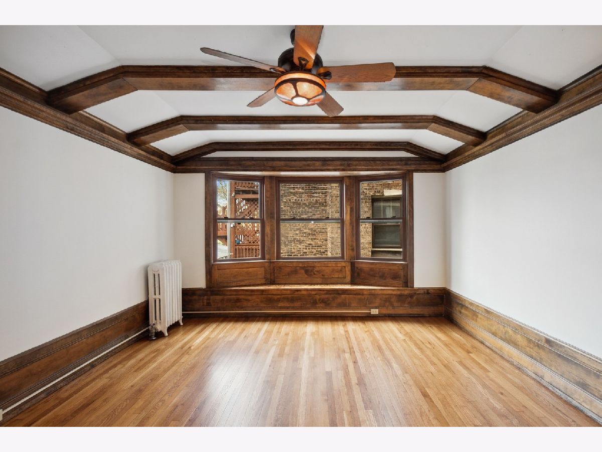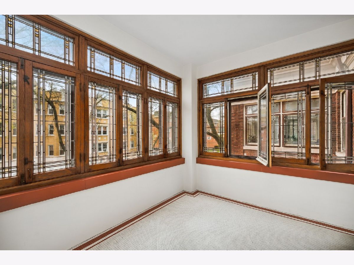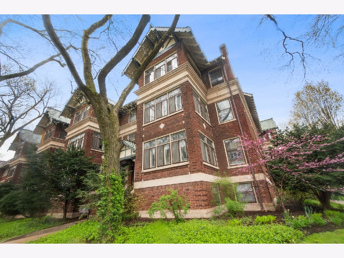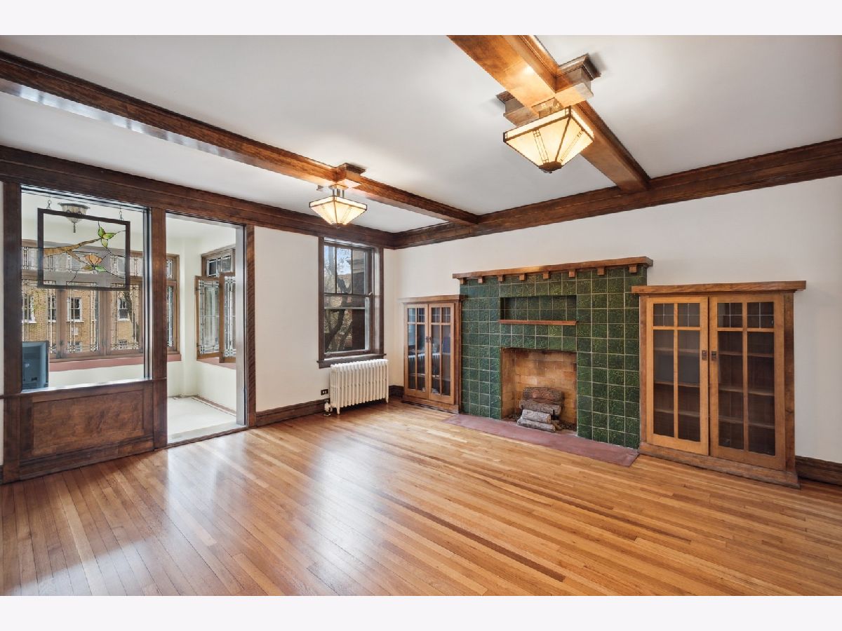 Welcome to one of Oak Park's very favorite vintage properties- Lu Viola. 1930's arts and crafts style at its finest, with most original details remaining and expertly restored. Herringbone floors and stained/leaded glass in 4 season sun room. Exquisite wood beamed ceilings in both enormous living areas. Glass and wood bookcases flank the fireplace with original ceramic glazed tile surround. Recently renovated eat in kitchen with granite countertops and tons of storage with access to back porch and yard. Bathroom has original claw foot tub and separate shower. Property is currently configured as a 2 bedroom plus large family room but can easily used as an official 3 bedroom. 2 portable LG a/c units which cool the property will remain- central/spacepac a/c is allowed. Free common area laundry in basement with the ability to easily add to the unit Private garage with electric car charger INCLUDED! Great common lawn and gardens with grill for all to enjoy. Engineer lives on site and takes meticulous care. Excellent location steps to el, downtown Oak Park, and multiple conveniences including the new Sugar Beet Coop Market! 100% owner occupied. Properties like this do not come on the market often and when they do, they go quickly!