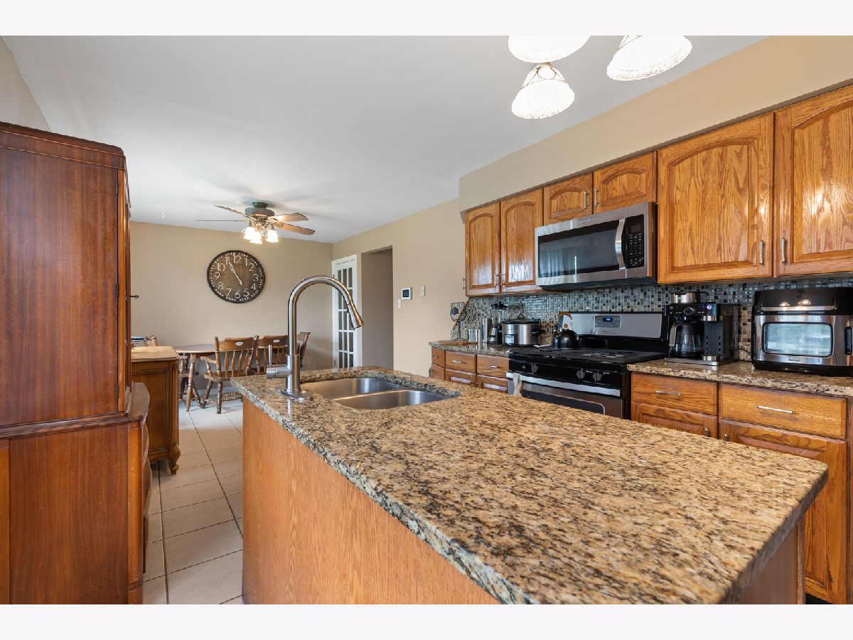 Turn key 3 bedroom, 3 bath home on large corner lot, steps from Kasey Meadow Park. Kitchen with Whirlpool stainless steel appliances, new backsplash, faucet and granite counters. Beautiful new landscaping to include watering system, perennial plantings, paver patio, gazebo and fenced yard. Lots of storage options with organized closets in two bedrooms. Huge finished basement with possible in-law arrangement with wet bar, bathroom and storage. 2.5 car garage with long driveway for ample parking on the east side of home along with an additional drive on the northside of home for more vehicle parking! Great location with easy access to 294/155. Steps from city park pool, skate park, tennis, basketball courts, soccer field. All within award winning school districts.