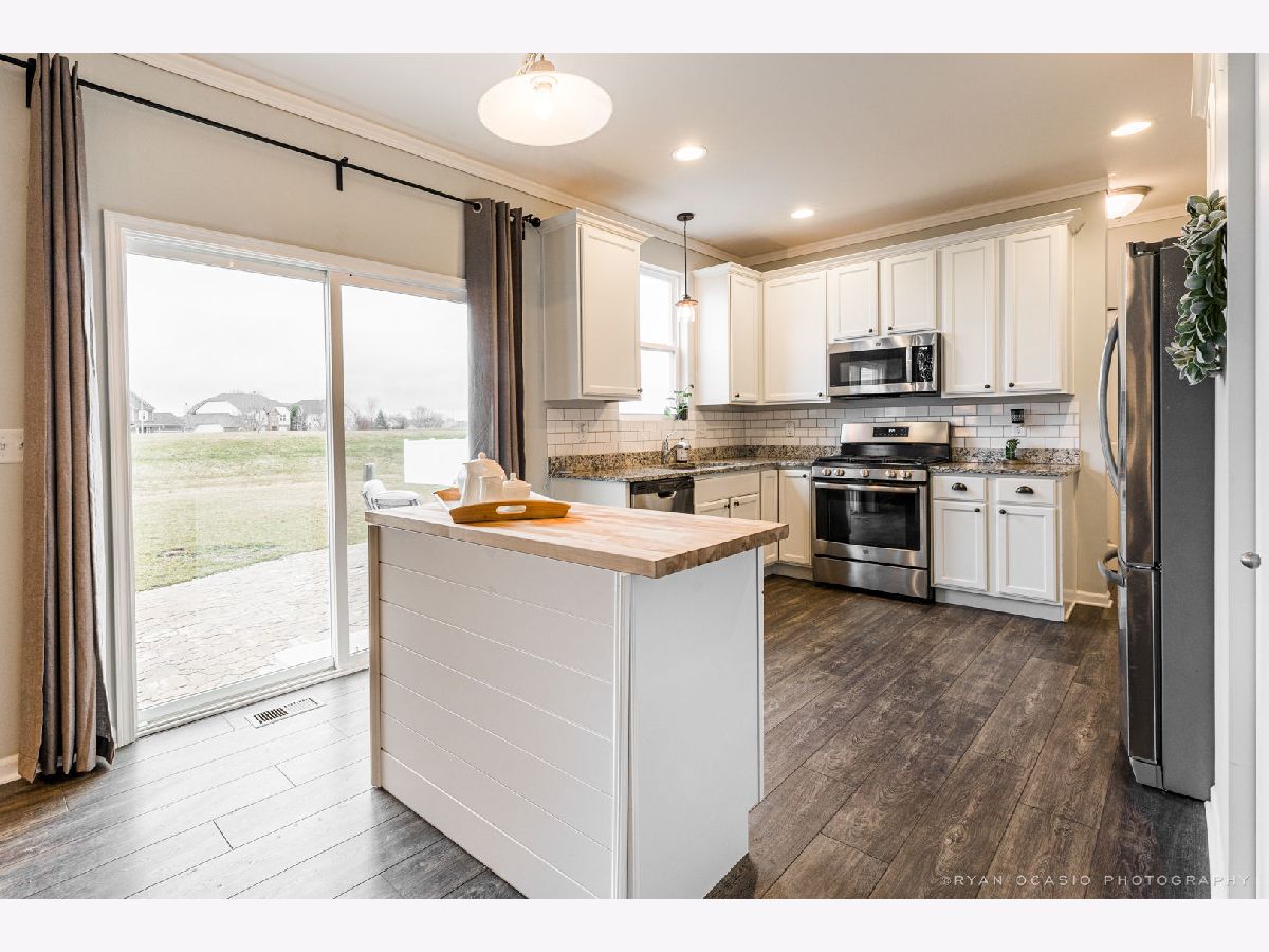 BETTER THAN NEW! This home was just built in 2019, but now has an established yard and landscaping, patio, plus all the window treatments. This home will soon have all new siding (light gray) and a new roof, due to hail damage. You'll love the flexible open floor plan in this "Starks" model. First floor is accented with crown molding has beautiful and durable vinyl plank flooring. Front room (living room) is currently being used as a formal dining room, that adjoins the family room with a half wall and column. Family room then opens to the kitchen and dining area. A movable island now occupies the dining space and provides more kitchen storage and counter space. Kitchen also features SS appliances, granite countertops, subway tile backsplash, 42" cabinets with a linen finish, plus a walk-in pantry. First floor has a half bath and patio doors leading to the new large paver patio, perfect for grilling, family meals, and entertaining. Heading upstairs you'll find a full hall bathroom, 2nd floor laundry, plus four nice size bedrooms including the 13X15 master suite with a large walk-in-closet and bathroom with double sinks and shower with a built-in seat. Basement is unfinished, has a passive radon system, and offers plenty of storage in the elevated crawl space. The whole house features high tech comfort with a NEST thermostat. This premium lot backs up to open elevated land that will not be built upon - a perfect expanded play area and sledding hill, all maintained by the HOA. *Property taxes being reduced to approx. $8,500. What's not to love? Check it out today!!