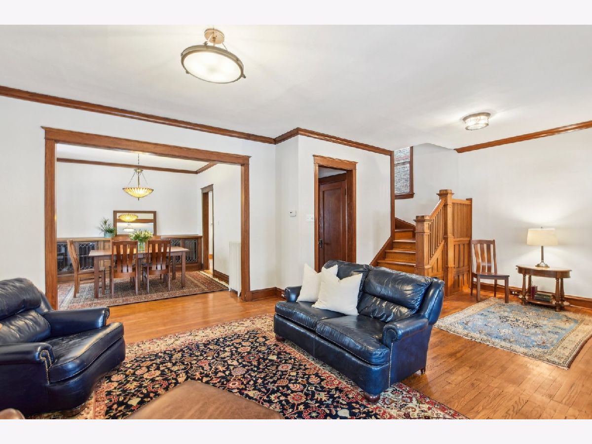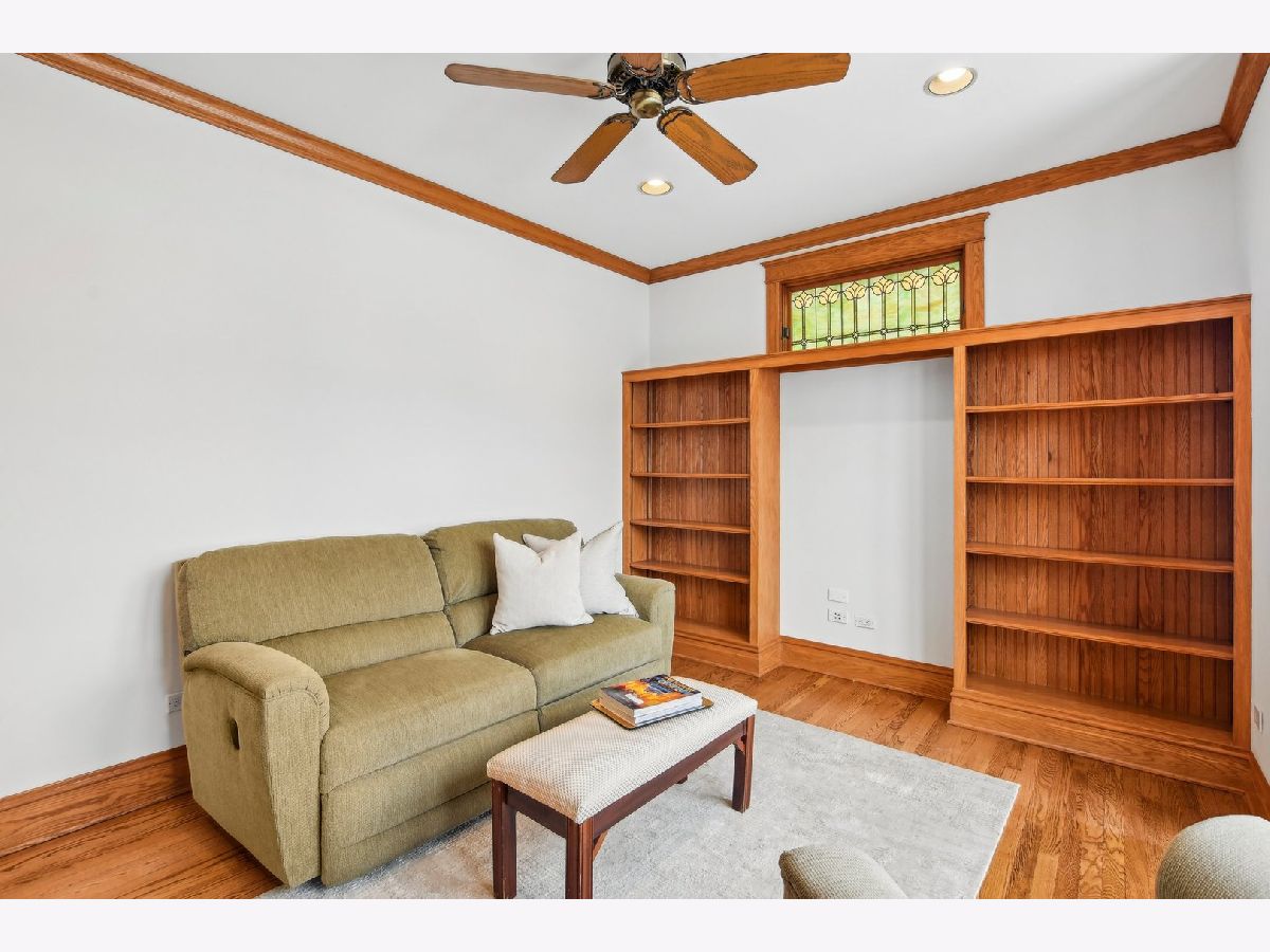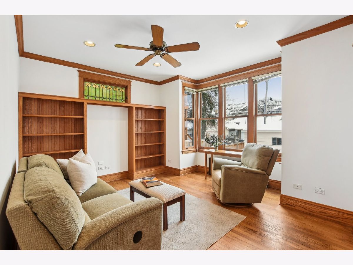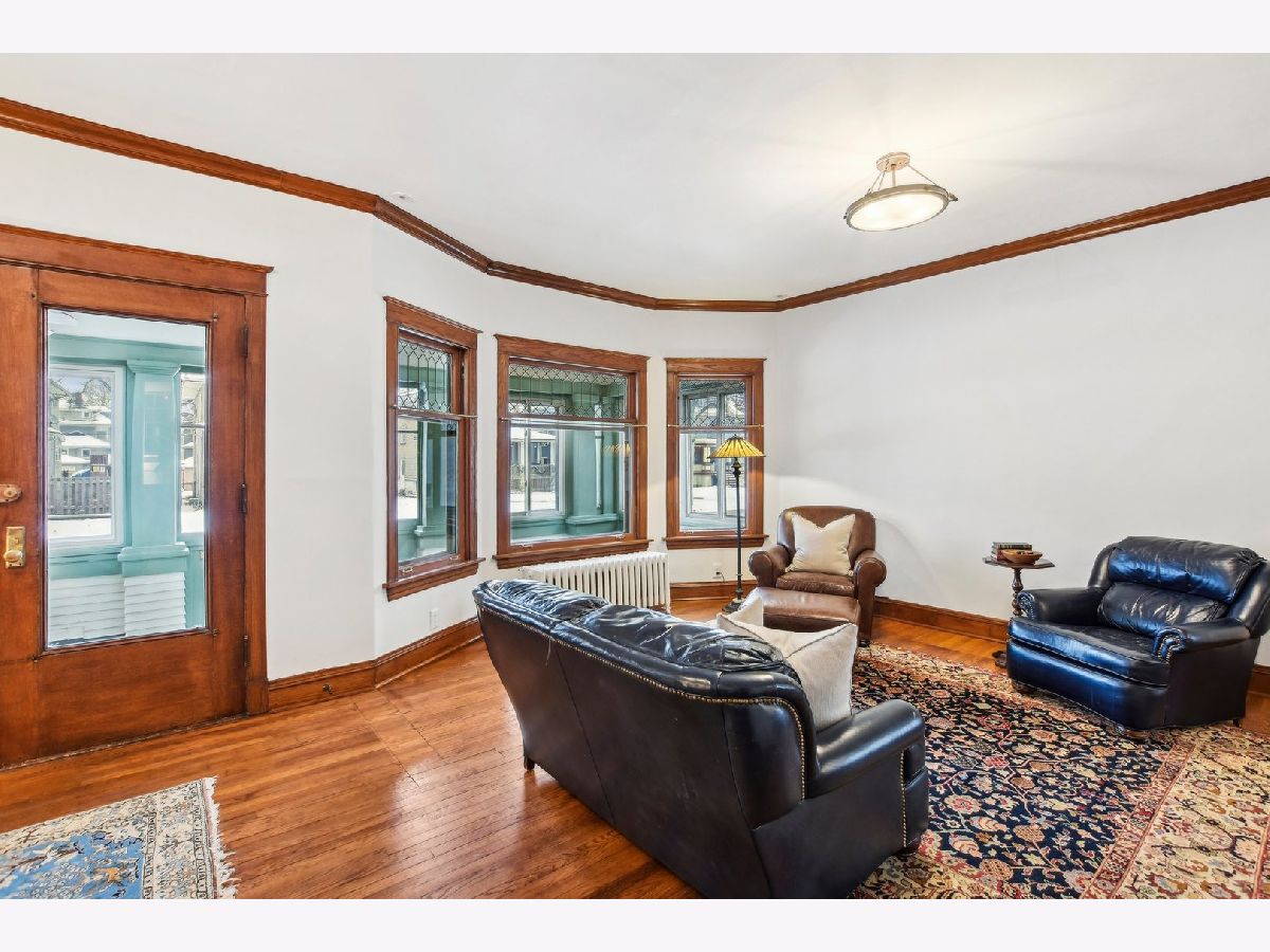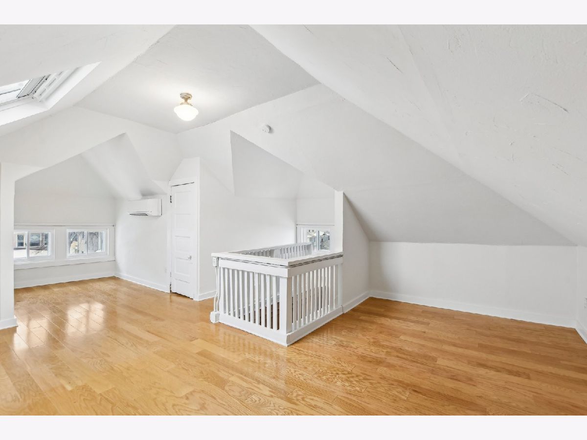 This charming Gunderson home on an incredible block is a true gem! It welcomes you with an inviting front porch and a large foyer that leads to a beautiful staircase. The entry opens into a spacious living room, featuring lovely leaded glass windows. The formal dining room also boasts leaded glass and an original built-in cabinet. The recently renovated kitchen is a chef's dream, with marble countertops, an abundance of cabinets, under-cabinet lighting, and a convenient breakfast bar. It opens to a sunny family room, perfect for gatherings, with built-in bookcases. For added convenience, there's a large mudroom right off the back door, providing additional storage. The first floor also includes a full bathroom with a shower. On the second floor, you'll find four generously sized bedrooms. Three have generous closets, and one offers a built-in bookcase. The full bathroom on this level, is beautifully renovated and is truly stunning. There also may be potential to create a primary bath by expanding over the first-floor addition. The third floor offers incredible flexible space that can be used as a bedroom, office, or playroom. It is separately cooled with a mini-split and includes a large closet and skylight. The finished basement offers even more living space, with a family room, laundry room, and additional storage. There is also potential to add a bathroom. The backyard is expansive, featuring a brick paver patio and raised garden beds, perfect for planting in the spring. The 2.5-car garage completes the property. Located in the heart of a tight-knit block known for its annual block parties, this home is just steps away from Maze Library and Longfellow Elementary. Enjoy walking to the CTA Blue Line and exploring the shops and restaurants in the Oak Park Arts District. A truly special home in a fantastic neighborhood!