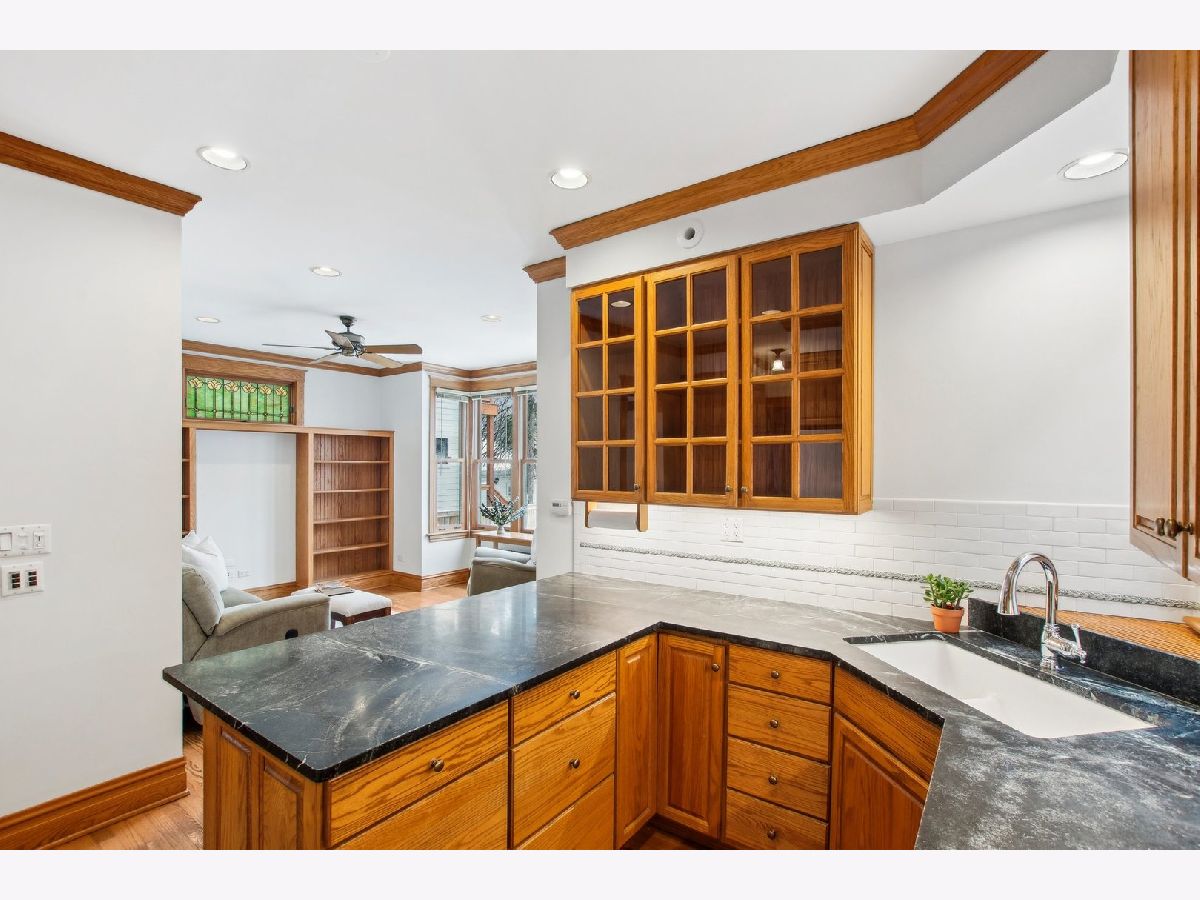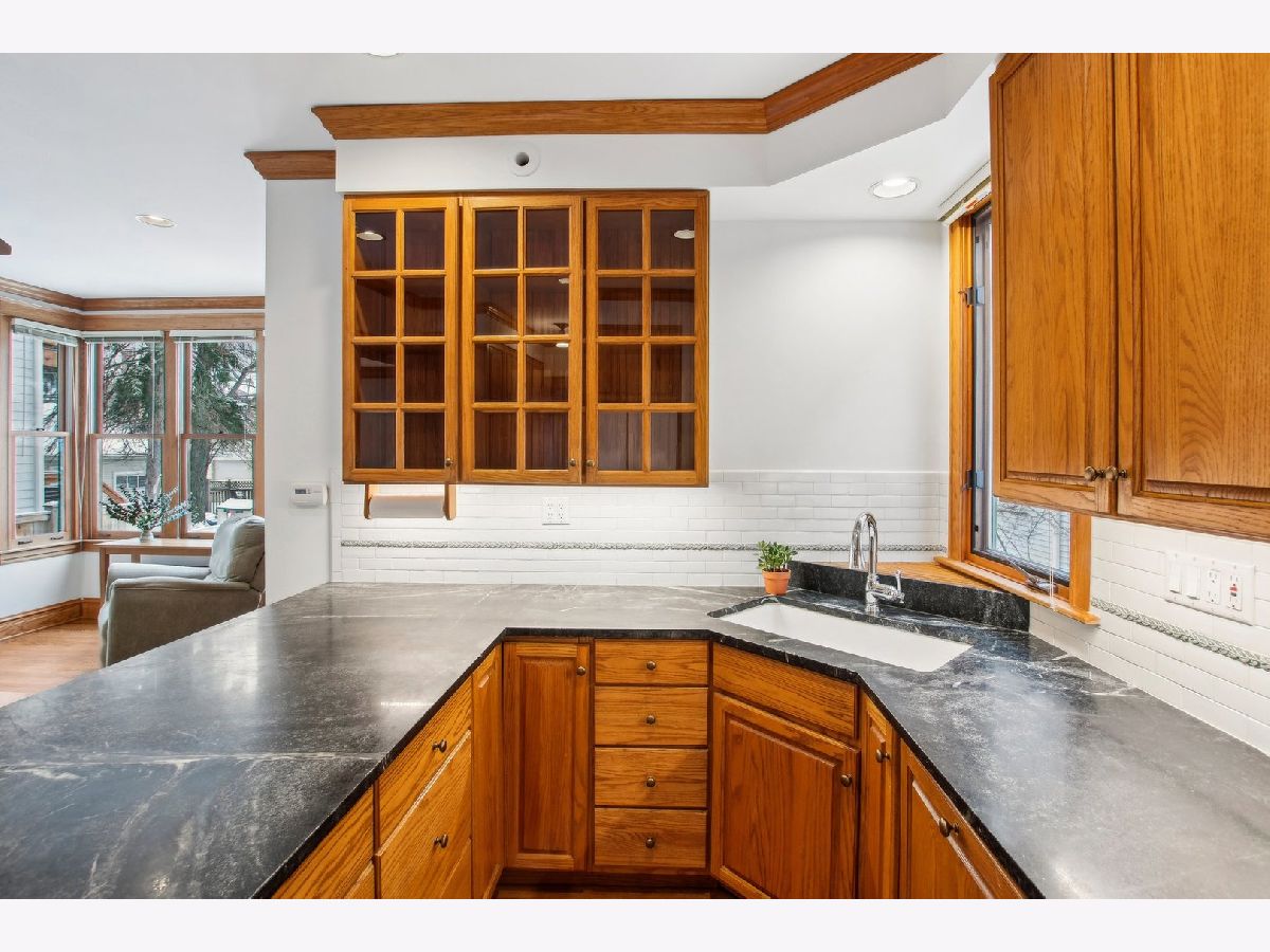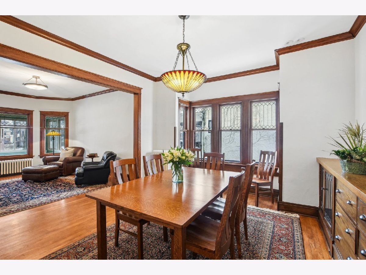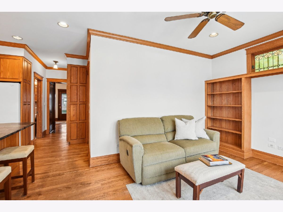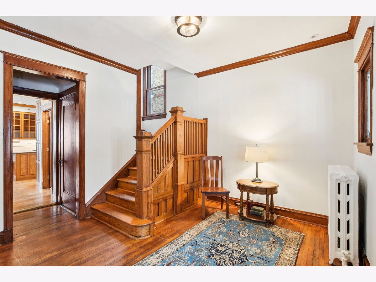 This charming Gunderson home on an incredible block is a true gem! It welcomes you with an inviting front porch and a large foyer that leads to a beautiful staircase. The entry opens into a spacious living room, featuring lovely leaded glass windows. The formal dining room also boasts leaded glass and an original built-in cabinet. The recently renovated kitchen is a chef's dream, with marble countertops, an abundance of cabinets, under-cabinet lighting, and a convenient breakfast bar. It opens to a sunny family room, perfect for gatherings, with built-in bookcases. For added convenience, there's a large mudroom right off the back door, providing additional storage. The first floor also includes a full bathroom with a shower. On the second floor, you'll find four generously sized bedrooms. Three have generous closets, and one offers a built-in bookcase. The full bathroom on this level, is beautifully renovated and is truly stunning. There also may be potential to create a primary bath by expanding over the first-floor addition. The third floor offers incredible flexible space that can be used as a bedroom, office, or playroom. It is separately cooled with a mini-split and includes a large closet and skylight. The finished basement offers even more living space, with a family room, laundry room, and additional storage. There is also potential to add a bathroom. The backyard is expansive, featuring a brick paver patio and raised garden beds, perfect for planting in the spring. The 2.5-car garage completes the property. Located in the heart of a tight-knit block known for its annual block parties, this home is just steps away from Maze Library and Longfellow Elementary. Enjoy walking to the CTA Blue Line and exploring the shops and restaurants in the Oak Park Arts District. A truly special home in a fantastic neighborhood!