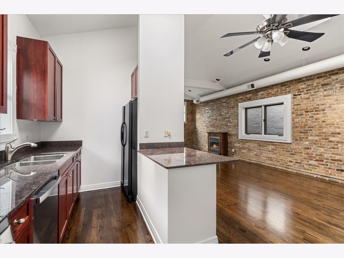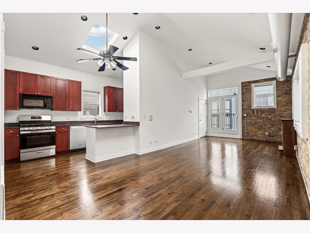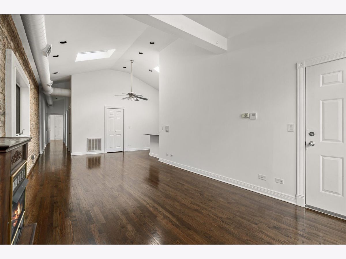 Fresh and bright penthouse 2 bed/2 bath condo in the heart of River West! This open concept flat boasts soaring vaulted ceilings with skylights, exposed brick, a gas fireplace, a pantry and a Juliet balcony plus newly refinished hardwood flooring throughout. An updated kitchen comes complete with shaker-style cabinetry, granite countertops and recently replaced appliances. The home also features custom window treatments, a new furnace and new stackable washer/dryer. Additional amenities like a huge private back deck with incredible skyline views and one parking space are also included. Investor friendly. This perfect West Town location has a walk score of 97 and you are just steps to the Chicago Blue Line 'L' stop, Eckhart Park, Fulton Market, Randolph Street plus all of the fine dining, galleries, entertainment and shopping on West Chicago Avenue.