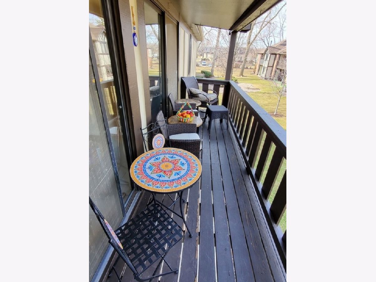 XL top floor 3 Bedroom 2 Bath condo with garage parking in a beautiful well landscaped neighborhood (Timbers of Palos Hills). Master bedroom with private bath. Large living room with wet bar and separate dining room. Large 18 foot balcony can be accessed from both the living room and kitchen. In-unit full sized laundry. Two storage closets (one off of balcony and one in front of garage space). Newer furnace and a/c unit (installed November 2017). Complex amenities include club house, outdoor swimming pool, tennis courts and playground. Mostly owner occupied due to rental cap and other restrictions on rentals. New roof on building