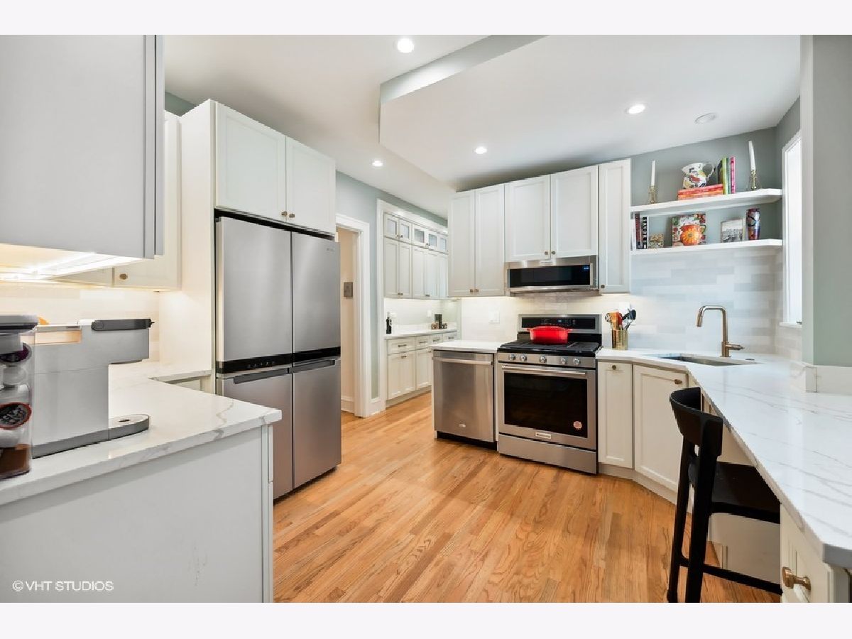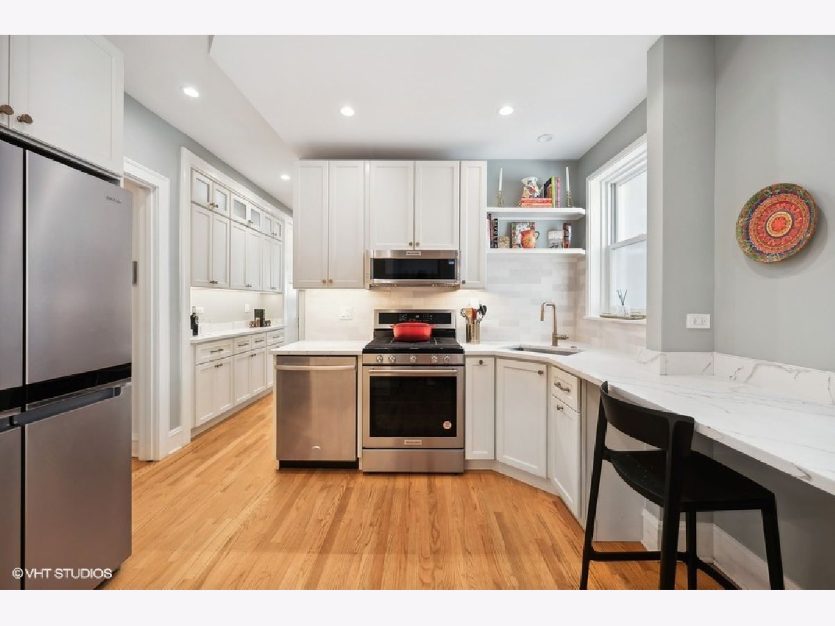 Beautiful, recently renovated (2023) condo just two blocks from Lake Michigan and Clark Square. Feel those lake breezes! Also conveniently located to Main/Chicago Street shopping and restaurants. This gem of a condo was reconfigured just last year by eliminating the smaller third bedroom and giving the space to the kitchen and bathroom to make it a much more liveable unit. It boasts a brand new, expanded and on-trend kitchen with breakfast bar and a long hallway of updated pantry space. So great! Also new in 2023 are the two bathrooms, which are also on-trend. The space is wonderful and the feel of the unit encompasses the character of yesteryear and the conveniences and style of today. This home has in-unit laundry and new windows throughout the building have been recently replaced; also new lighting fixtures throughout and freshly painted. You truly will fall in love with this spot - the unit itself and the fabulous location and walkability to groceries, restaurants, shopping, Metra and "El" as well as the walkability to the beauty of Lake Michigan. So easy to call this one "home".