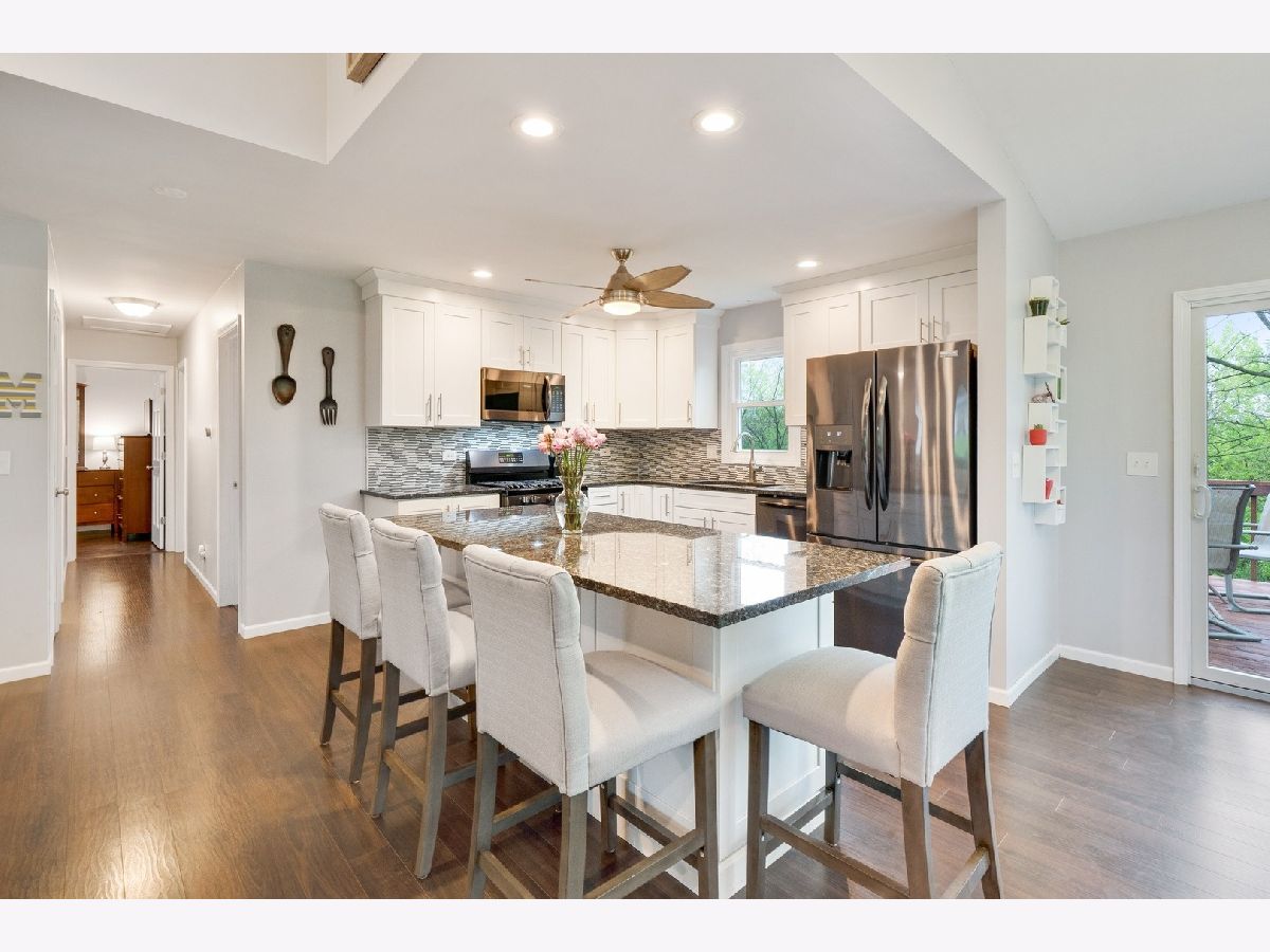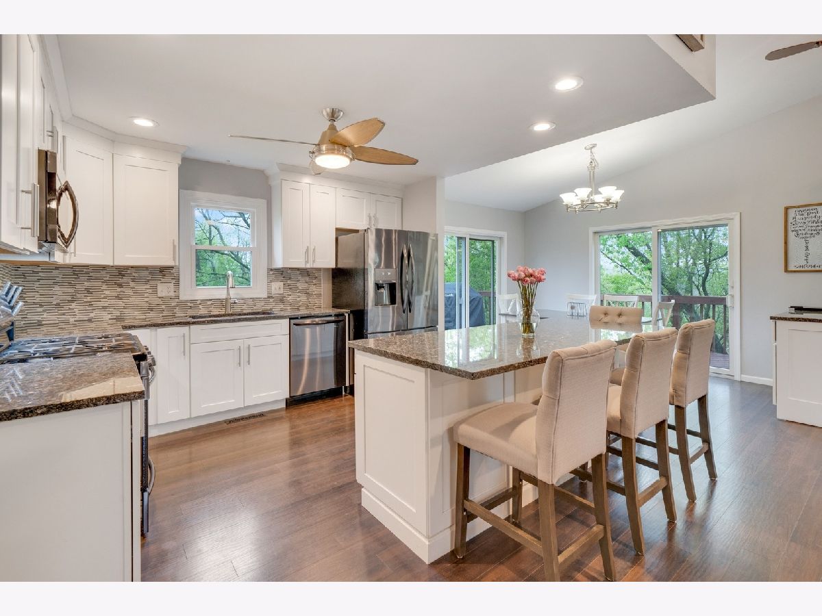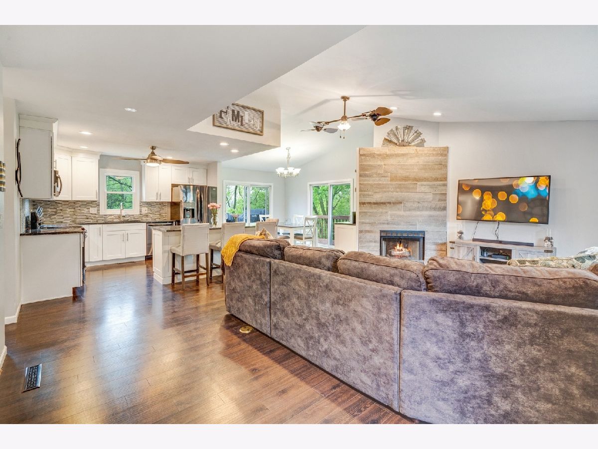 Updated and On-Trend! This amazing walk out ranch with breathtaking views offering tons of privacy, makes coming home feel like a wooded vacation spot. You'll enjoy your morning coffee from the deck with stunning views of the lake behind. This gorgeous home is great for entertaining with its open concept main level offering luxury vinyl plank flooring throughout, on trend kitchen with white cabinets, granite counter tops sought after black stainless steel appliances and large center island. The gas start fireplace is a gorgeous focal piece in the heart of the home. The master features its own private master bath and both bathrooms have been recently updated. FINISHED Walk out basement with huge bar, rec room, game room, large laundry and 4th bedroom. So many newer features including NEW WINDOWS in 2020, hot water heater ('17), completely new kitchen with appliances ('17), new roof apprx ('14). Enjoy proximity to parks, schools and everything you could need on Randall Rd in this perfect Lake in the Hills home! Don't delay, come see this gem today!