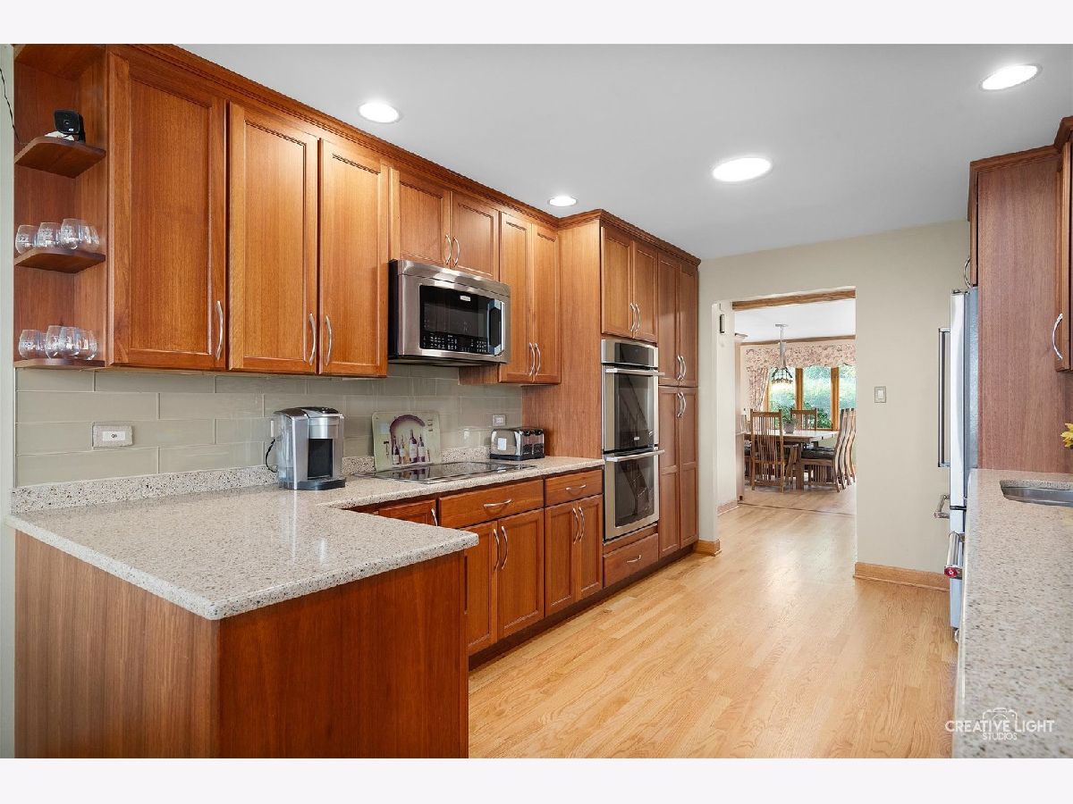 Welcome to this Gallagher & Henry expanded Montclare design split-level with a finished sub-basement, featuring a timeless stone and brick exterior. All four levels are finished providing nearly 3284 Sq Ft of finished living space! With nearly all new Pella windows, Pella doors, as well as a tear-off roof installed in 2020, this home offers both durability and modern comfort. The remodeled eat-in kitchen (2011) showcases eucalyptus cabinetry, Silestone countertops, a peninsula, stainless steel appliances, and a beautiful glass and mosaic tile backsplash. You'll love the pantry with pull-out shelves and newer designer lighting. The primary suite includes an updated step-in shower, and all bathrooms have been fully renovated for added luxury. The walk-out family room, complete with a gas fireplace, built-in bookcases, and wet bar, leads to the backyard with a new stamped concrete patio and walkway, perfect for entertaining. The finished sub-basement adds even more functionality, with a recreation room, exercise room, wine room, and steam shower. A two-car garage with epoxy flooring and a concrete driveway further enhance the home's appeal. Located in an established neighborhood close to Ide's Grove East Park, transportation, and shopping, this home provides the perfect blend of modern upgrades and prime location. Be sure to review the Feature Sheet under additional information for more of this property's amazing details!
