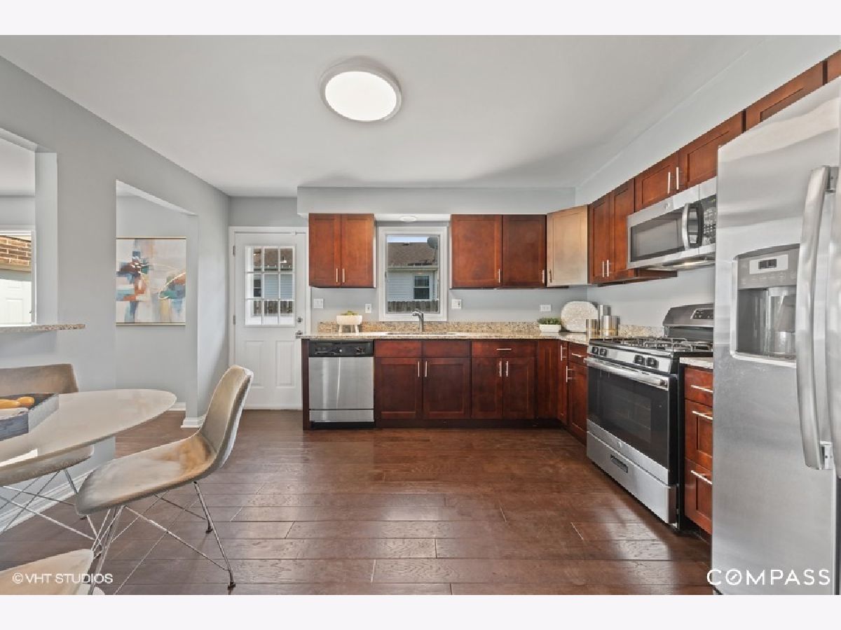 Wow, what a surprise! From the moment you enter you will start making plans. Dark wood, grey walls, open kitchen. All 3 bedrooms are generous in size and yes, there is a master bathroom. The whole interior has been redone with today's buyer in mind. Just a few steps down to a family room with lots of light and a beautiful fireplace and another brand new bath. Family room walks out to a good sized yard with the perfect spot for a dog run or garden along with green space. 2 plus car garage and large driveway. Easy access to the city and all major thoroughfares. High ranking schools and a beautiful community with lots to do for everyone in the family, down the street from La Grange Park District, Eberly Park and the MAX. Yes, road is busy but once inside, easy to forget. Come see this home for yourself!