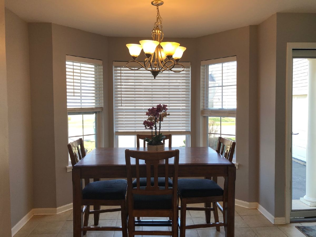 RANCH END UNIT! Keep it simple with the desirable ranch home backing to huge common green space. Large kitchen/dining room with updated white cabinets, newer counters, white appliances and ceramic flooring. Bright beautiful bay window with ample space for dining with guests. Living room with extra space for office, playroom or exercise equipment. Large sliding door leading to park like setting with walking paths for you to enjoy. Master bedroom with large walk-in closet. Custom insulated cellular shades in bedrooms and two-inch faux blinds in kitchen. Water heater, washer & dryer new within the last 2 years. Water softener is owned and stays but sold "As Is". Home Warranty included!