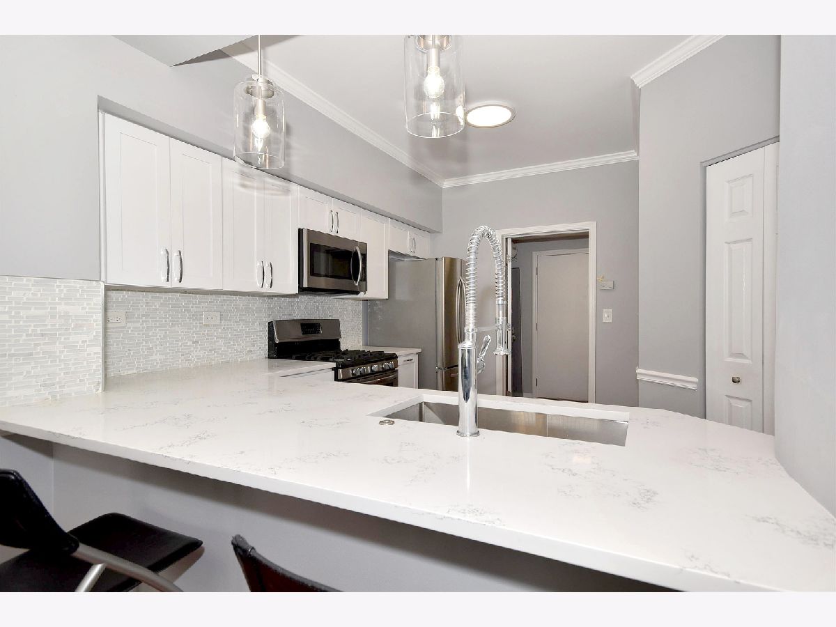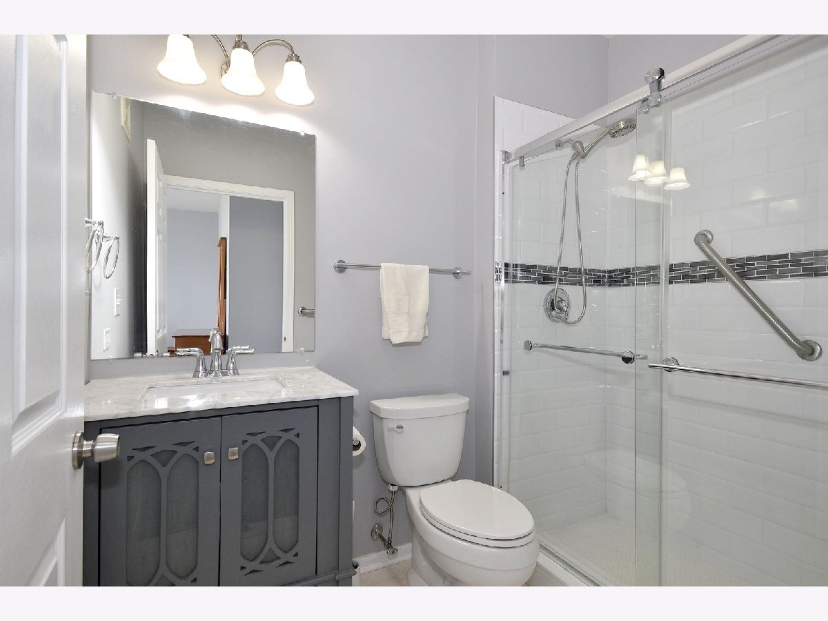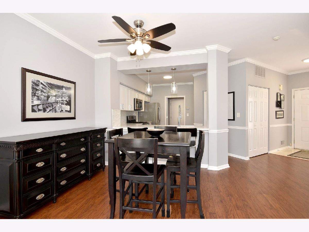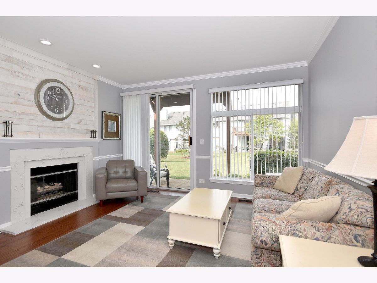 Gorgeous first floor unit with updated kitchen, baths, flooring, lighting, paint, new blinds, and luxury features. Kitchen has new white shaker cabinets, quartz countertops, beautiful backsplash, new lighting, and stainless steel appliances. A pass through breakfast bar from the kitchen, makes cereal in the morning a comfortable habit. The wood-look flooring throughout the common living space highlights the stylish features, including the updated fireplace with shiplap chimney front and quartz surround. Tons of light in this unit's exposure and great courtyard views. This home includes two bedrooms with new carpets and two very stately updated bathrooms. Tons of storage including a huge walk-in master closet, kitchen pantry, & convenient in-unit laundry. Enjoy the patio, the easy access to the one car attached garage, and low monthly HOA fees! Top rated schools! The perfect location with easy access to I-55! Live Luxury in Darien!