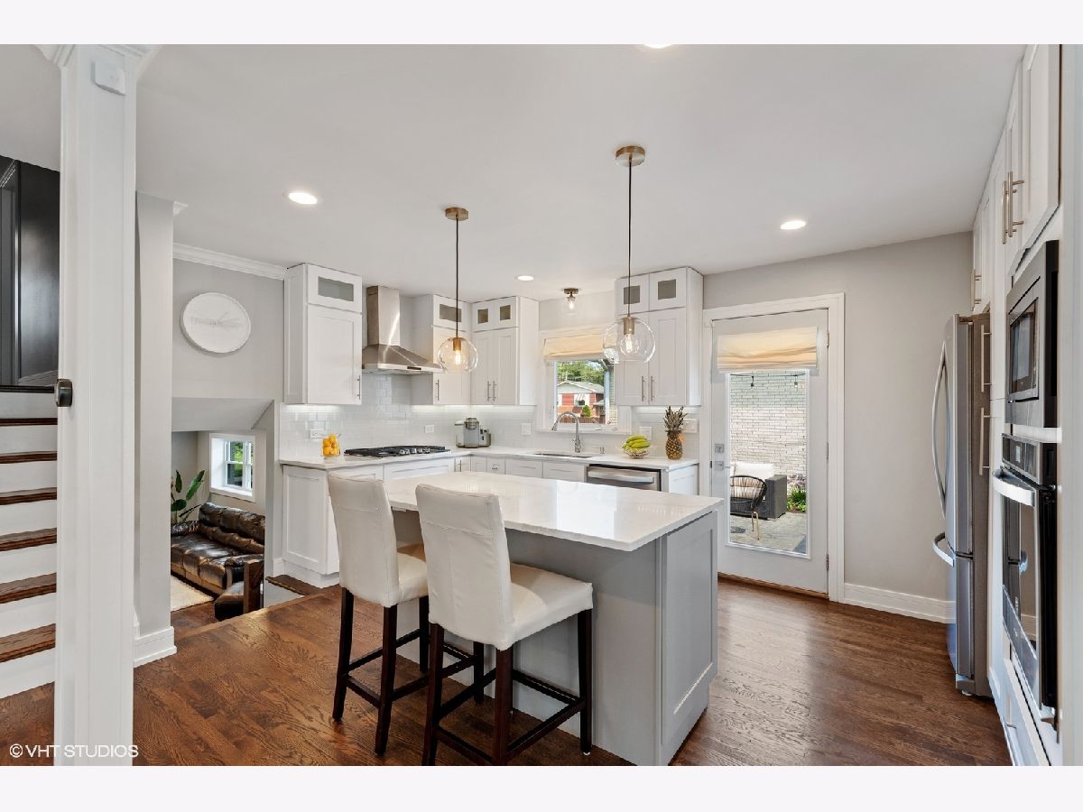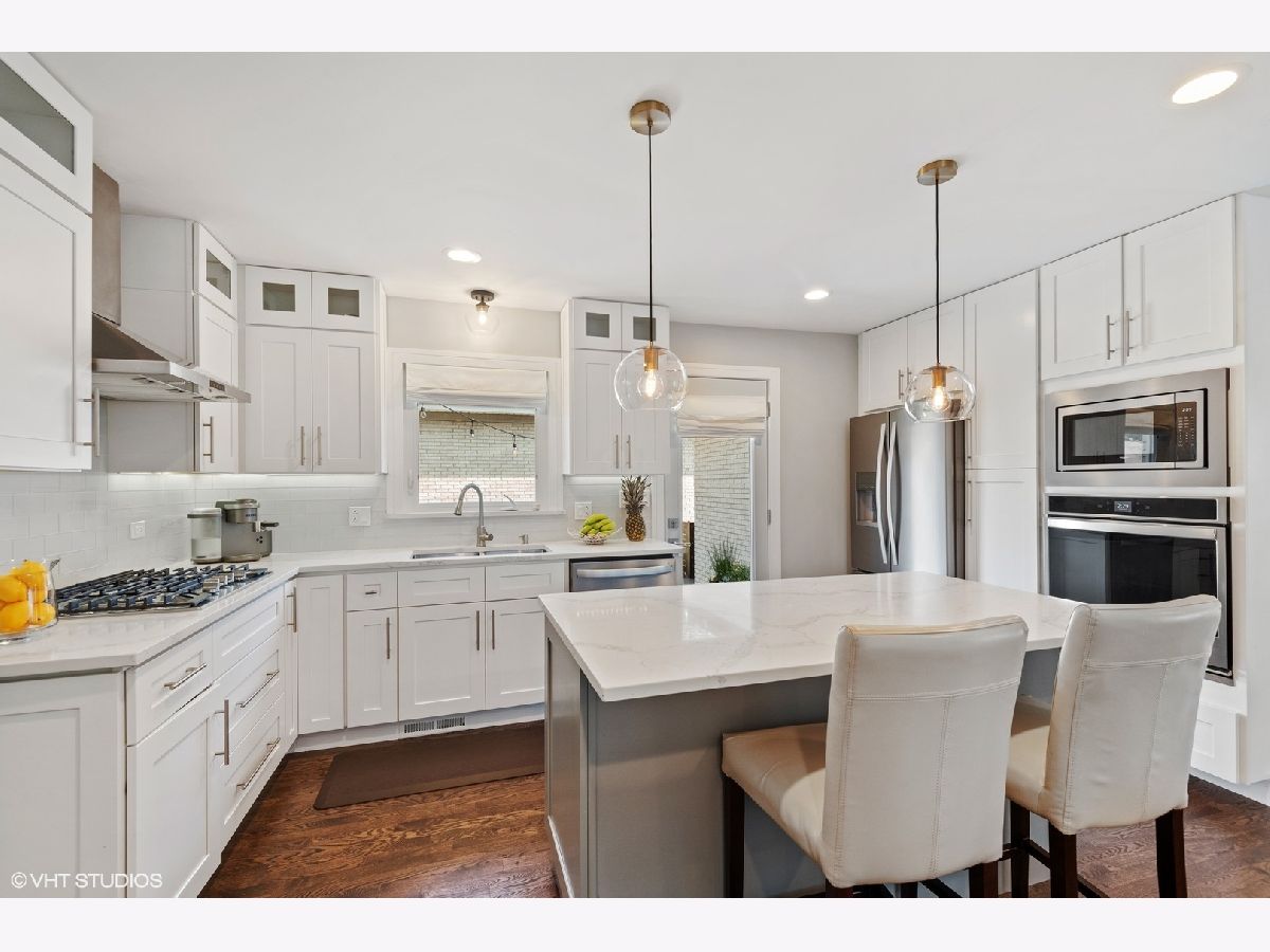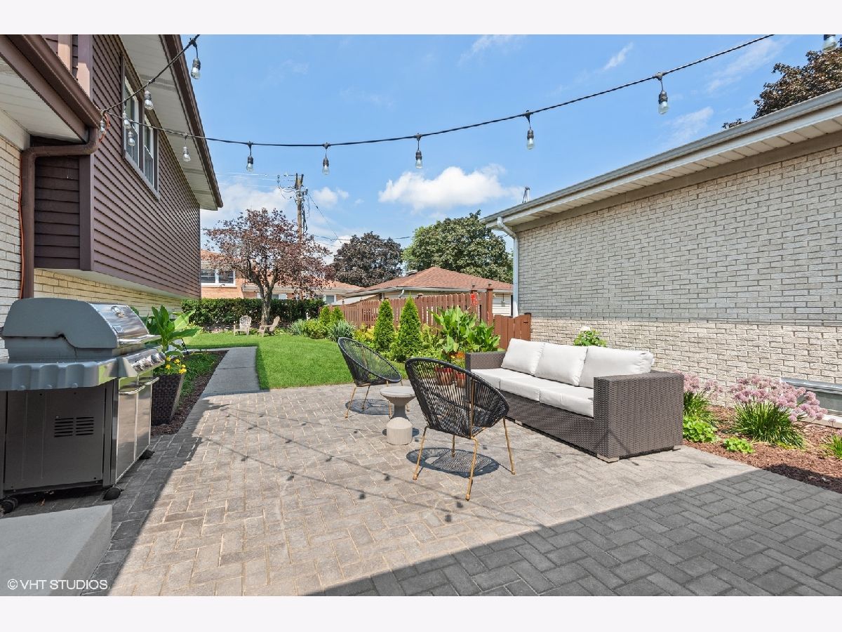 Beautiful home tastefully remodeled throughout. Light, bright and inviting flowing design, perfect for casual living or easy entertaining. Gleaming hardwood floors encompass the interior open floor plan with freshly painted walls in neutral colors, white custom woodwork and designer light fixtures. The incredible gourmet Kitchen is detailed with stainless steel Whirlpool appliances, soft close custom cabinetry, stainless steel vent hood, glass backsplash, quartz tops and large island with additional base cabinets and sitting area with pendant lights placed right above it. Brick paver patio right outside the kitchen is located on the side of the home offering privacy for year-round enjoyment and view of a large backyard. The spacious Dining Room with large window and direct access to the kitchen connects with the Living Room. Open and airy Family Room is warmed by a fireplace with quartz surround, dry bar and big windows for providing a lot of natural light. Adjacent to family room is the Office area, Powder Room and a Laundry Room with side by side oversized washer and dryer and exit to your backyard. Bedrooms are located on the second floor. Master Bedroom has wall to wall closet and en suite Bathroom with porcelain tile walls, oversized shower with custom glass, double vanity and up to date fixtures. Two other generously sized Bedrooms share hallway Bathroom also remodeled with ceramic tiles, double vanity and modern fixtures. Basement offers additional loft-style feel Recreation Areas with recessed lights and ceramic tile floor throughout, big storage walk in closet and utility room. Home upgrades include recessed lights, new electrical CB box, plumbing, custom millwork, hardware and interior/exterior doors. Home has new copper water line to the street and vinyl windows. Attached two car garage with convenient and direct access to home, concrete driveway and recently landscaped yard. Move-in condition. Great location, close to I-90/294, Cumberland CTA/Blue Line, O'Hare, stores restaurants, school, Forest Preserve and minutes to Rosemont attractions. You'll love the beauty, comfort and convenience. A must see!