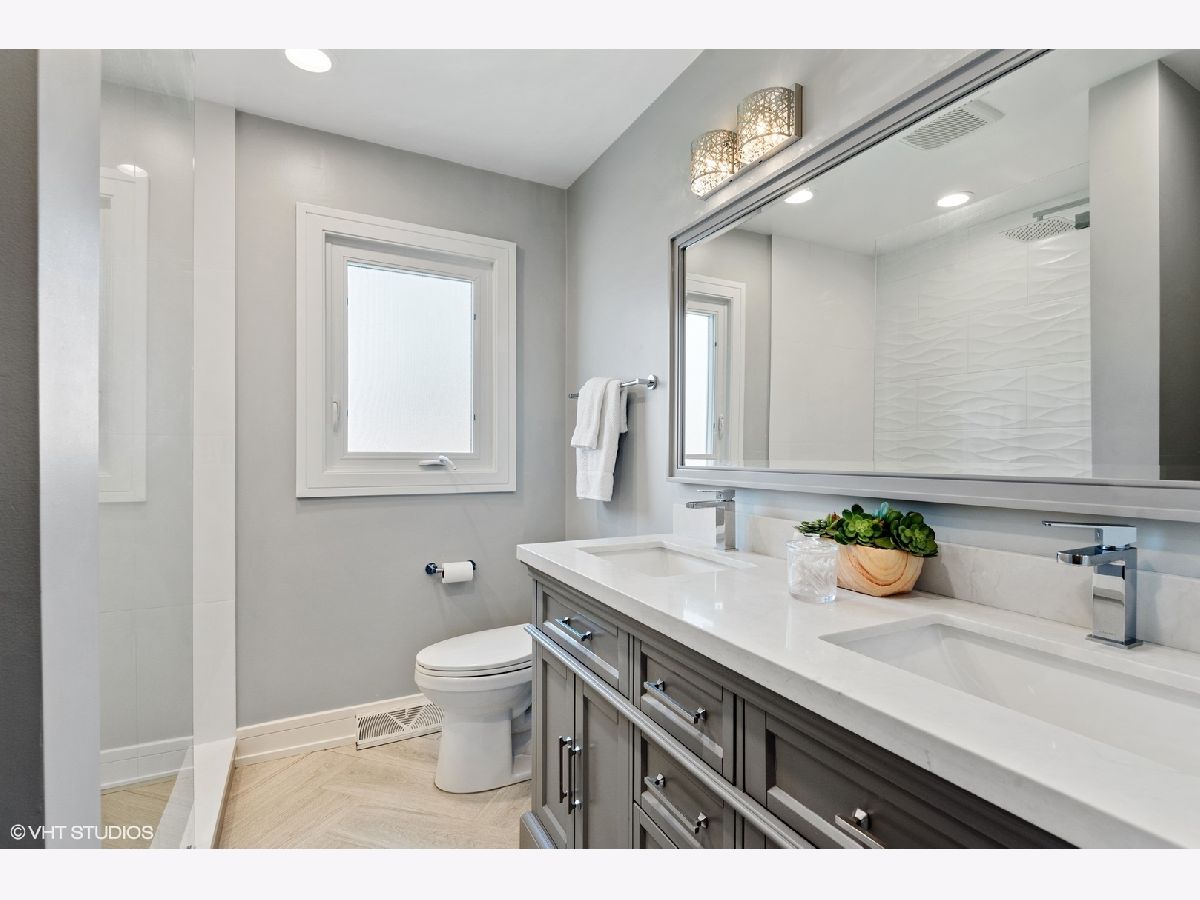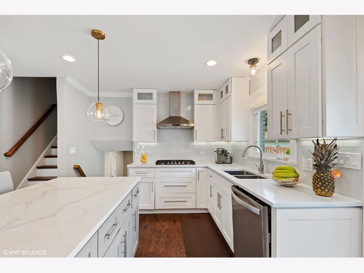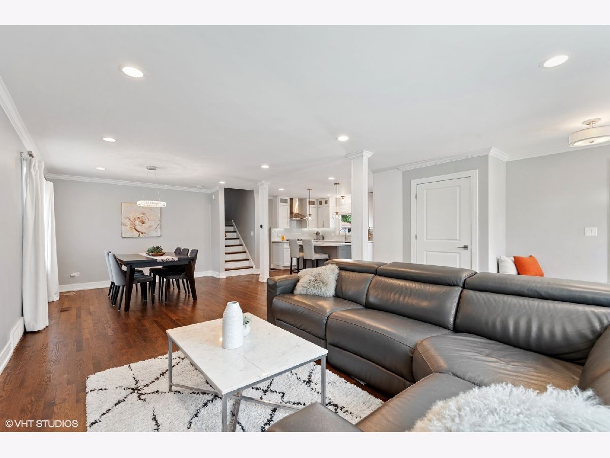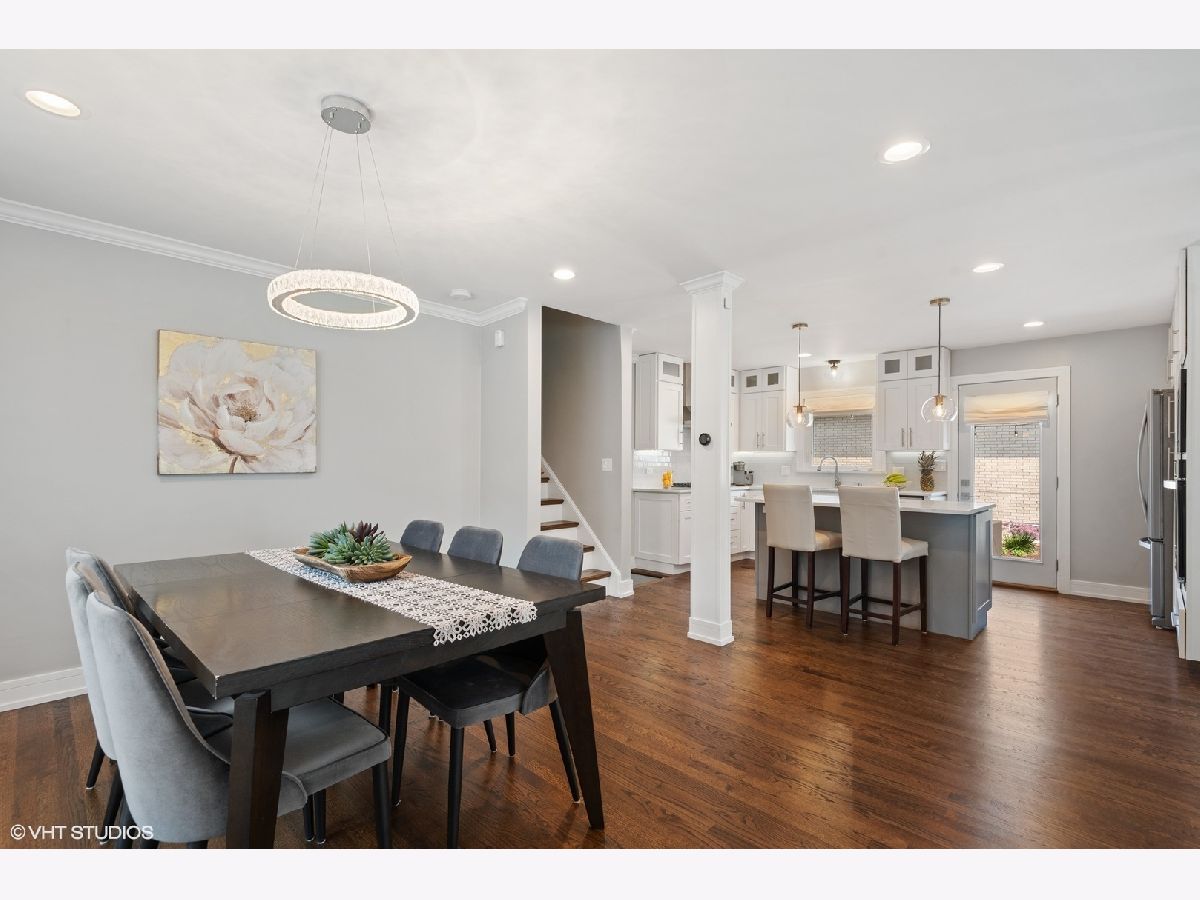 Beautiful home tastefully remodeled throughout. Light, bright and inviting flowing design, perfect for casual living or easy entertaining. Gleaming hardwood floors encompass the interior open floor plan with freshly painted walls in neutral colors, white custom woodwork and designer light fixtures. The incredible gourmet Kitchen is detailed with stainless steel Whirlpool appliances, soft close custom cabinetry, stainless steel vent hood, glass backsplash, quartz tops and large island with additional base cabinets and sitting area with pendant lights placed right above it. Brick paver patio right outside the kitchen is located on the side of the home offering privacy for year-round enjoyment and view of a large backyard. The spacious Dining Room with large window and direct access to the kitchen connects with the Living Room. Open and airy Family Room is warmed by a fireplace with quartz surround, dry bar and big windows for providing a lot of natural light. Adjacent to family room is the Office area, Powder Room and a Laundry Room with side by side oversized washer and dryer and exit to your backyard. Bedrooms are located on the second floor. Master Bedroom has wall to wall closet and en suite Bathroom with porcelain tile walls, oversized shower with custom glass, double vanity and up to date fixtures. Two other generously sized Bedrooms share hallway Bathroom also remodeled with ceramic tiles, double vanity and modern fixtures. Basement offers additional loft-style feel Recreation Areas with recessed lights and ceramic tile floor throughout, big storage walk in closet and utility room. Home upgrades include recessed lights, new electrical CB box, plumbing, custom millwork, hardware and interior/exterior doors. Home has new copper water line to the street and vinyl windows. Attached two car garage with convenient and direct access to home, concrete driveway and recently landscaped yard. Move-in condition. Great location, close to I-90/294, Cumberland CTA/Blue Line, O'Hare, stores restaurants, school, Forest Preserve and minutes to Rosemont attractions. You'll love the beauty, comfort and convenience. A must see!