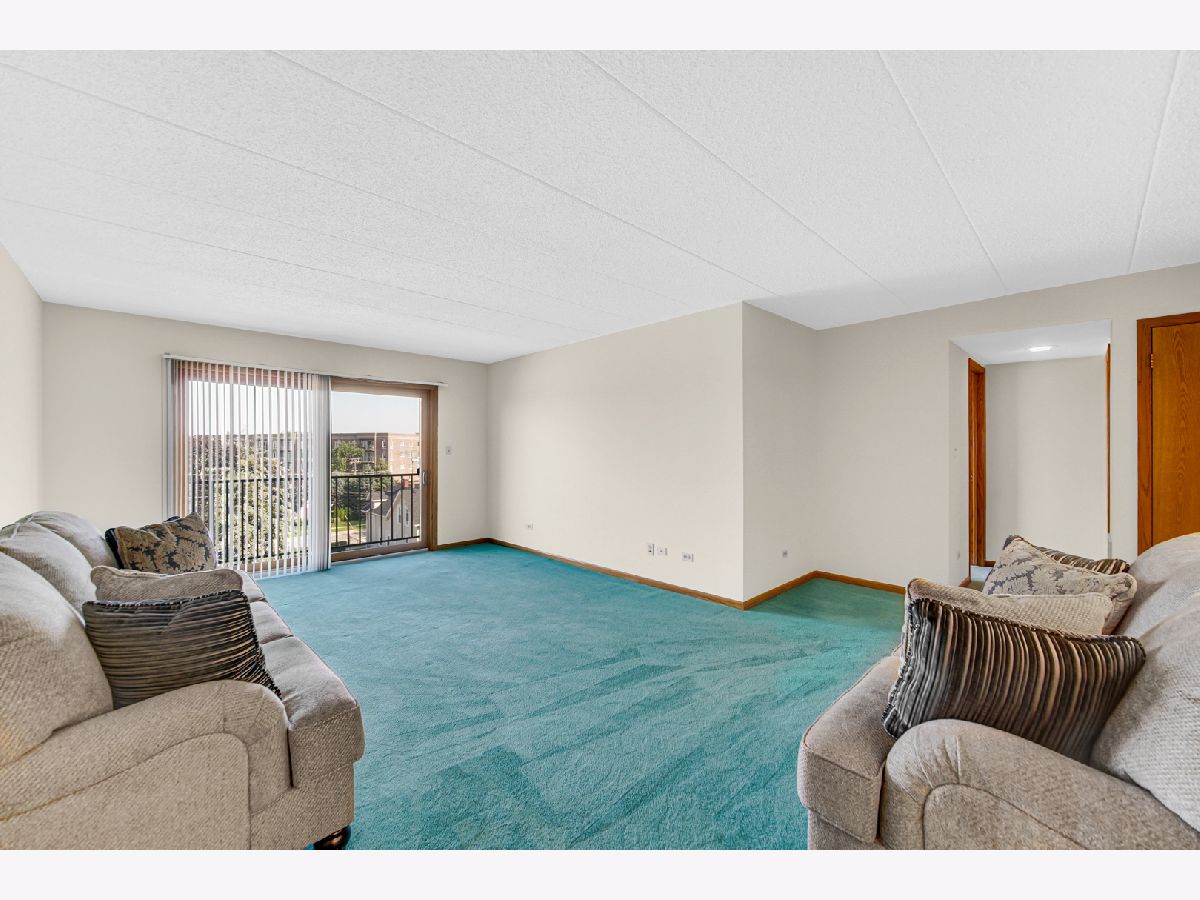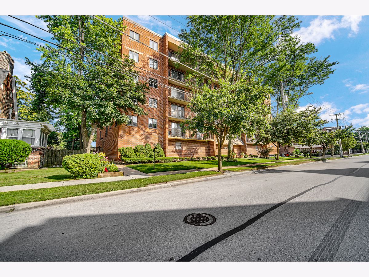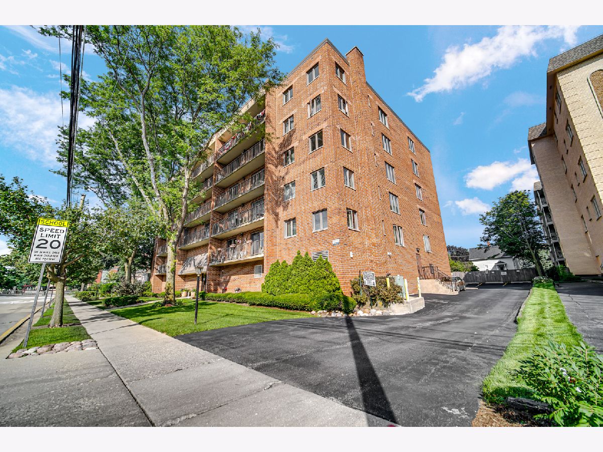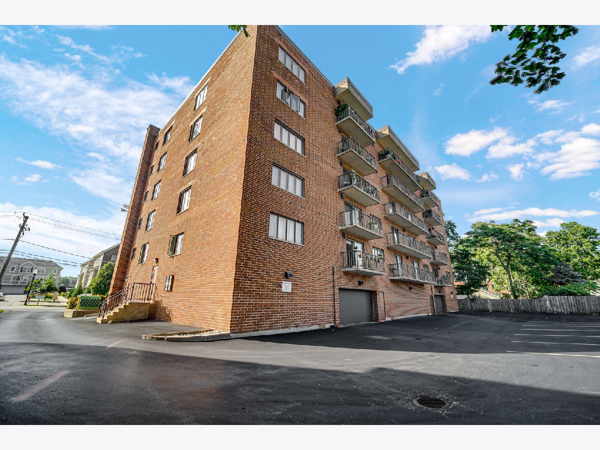 Lovely one bedroom 5th floor condo with eastern exposure with long balcony off of both living room and bedroom. Conveniently positioned across from elevator. Large Bedroom has two closets, one walk in. Nearly 900 square feet of living space. In unit full size washer and dryer in spacious laundry room which includes sink. TWO parking spaces, one in the garage (#3) and another in designated outside parking spot (#1). Large secured storage unit (#2) on 2nd floor. Unit is excellently maintained. Quick close possible. All owner occupied. Professionally managed. Close to library, METRA/PACE station, bakery theatre, grocery store. Easily accessible to 294/90.