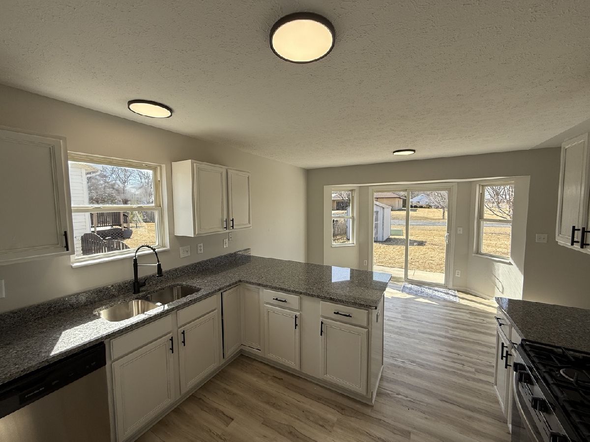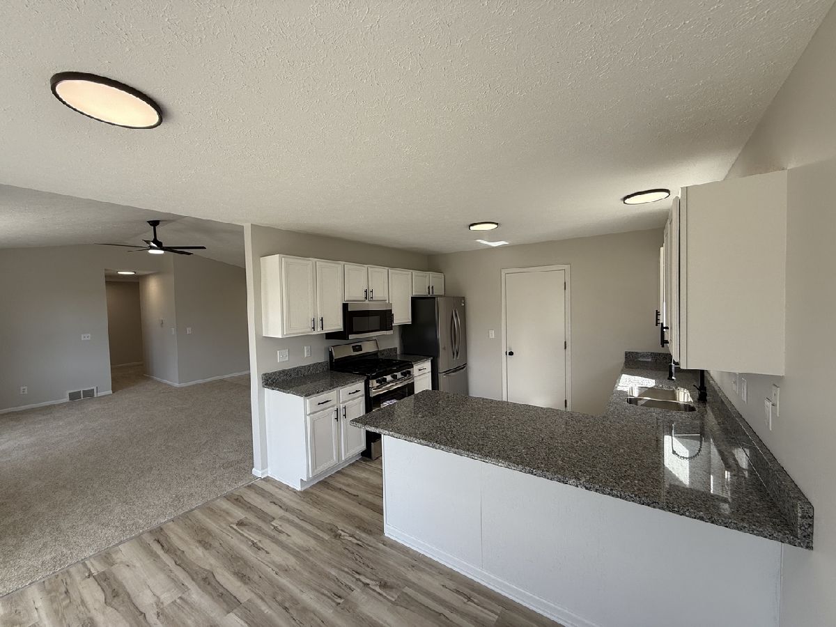 4 Bed 3 Full bath Ranch with a 2 car garage. Updated and move-in ready. New carpet and paint throughout. Tons of cabinet space in the kitchen. Brand new stainless steel appliance suite. Granite counter tops. Eating area that opens to concrete patio and deck. New luxury vinyl plank flooring. Vaulted ceilings in living room. Nicely sized master bedroom with master bath. Ceiling fans in bedrooms Full finished basement with large family room, fourth bedroom, and full bath. Large yard with a shed for additional storage. Come take a look today!