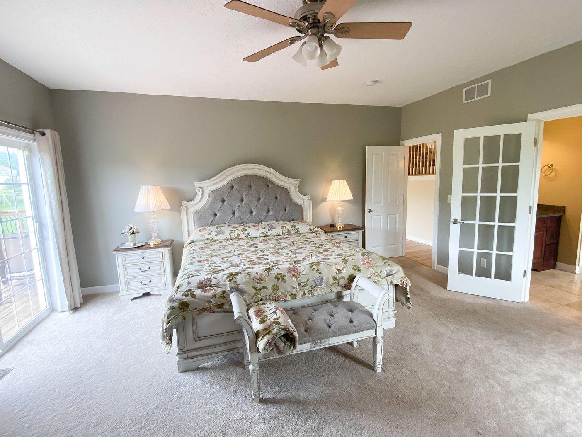 OVER 6,000 SF LIVING SPACE IN PRESTIGIOUS STONEGATE WITH DESIRED BELVIDERE SCHOOLS! The professional landscaping makes a stunning statement as it leads you into the dramatic 2 story entryway w/gorgeous staircase. Formal dining room & living room w/soaring ceiling. The eat-in kitchen is open to the family room with fireplace & boasts loads of cherry cabinets, granite, stainless steel appliances, breakfast bar, island, soft close drawers, tile backsplash & arched doorways. 1st floor laundry. The main floor master features a corner fireplace, large full bath w/french doors, soaker tub & separate shower, WIC, & sliders onto the deck overlooking the enormous back yard that backs up to a conservation area. The upper level has 2 more BRs, 2 full baths & a large bonus room/gym. The full walkout LL has a rec room with fireplace, bar area with sink, sliders to patio, & BR with full BA & WIC. Zoned heat. Two staircases to upper level. CHECK OUT THE VIRTUAL TOUR & COME VIEW IT TO APPRECIATE IT!