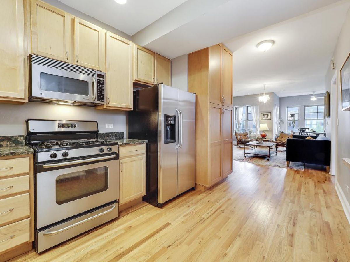 This highly sought after 2bd/2ba top floor Unit sits on a quiet tree-lined street. With only a 10-minute walk to Montrose Harbor, the dog beach, and extensive walking and biking trails along Lake Michigan, you can enjoy that lakefront lifestyle year-round. Hardwood floors throughout, a huge bank of South facing windows bathe the living space in natural sunlight, and a wood-burning fireplace with gas starter that is ideal for relaxing on a chilly night or during the holidays. The master bedroom features a walk-in closet and an en-suite bathroom with whirlpool tub. The kitchen comes equipped with stainless steel appliances, granite countertops, a gas range, and abundant storage. From the kitchen, the back door opens out to a large covered deck where you can dine al-fresco, garden, or grill. Step back inside to cool off with central air. Going downtown? Just three short blocks west is the Wilson red/purple line entrance at the end of the street. Additional storage unit in basement. Great restaurants and four convenient grocery stores within walking distance! Schedule a showing now before others snap this up!