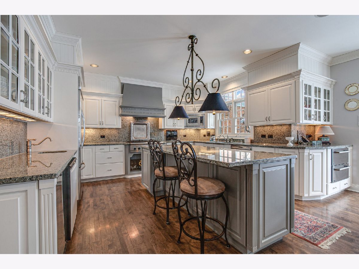 This maintenance-free townhome, located in Lake Forest's highly desirable Woodland Creek Manor, comes with all the fine amenities you would expect in the most luxurious home. Sophisticated finishes include stunning two story marble foyer with dramatic curved staircase and built-in stone tables. Private light filled library with tray ceiling, built-ins and double door entry. Warm, inviting living room w/gas fireplace. Spacious family room is located just off the kitchen leads to wonderful carpeted 3 season room w/vaulted ceiling, skylights and ceiling fan that looks out onto the beautiful, private yard. The gourmet kitchen is a cook's dream. High end stainless steel appliances include 6 burner cooktop, 2 Thermador ovens and warming drawers and French door refrigerator. Other highlights include granite counter tops, an abundance of cabinetry, huge center island with breakfast bar and large eating area opening out to small patio, flower garden and gas hookup for grill. The master bedroom suite feels like your own private oasis with tray ceiling, fireplace, 2 walk-in closets and a luxurious marble bath with 2 separate vanities, built-in dresser, whirlpool tub and separate steam shower. Completing the 2nd floor are two additional bedrooms and full bath, an office, bright laundry room and a bonus room. Great finished lower level includes additional family room, bedroom and bath and exercise area. New roof & gutters-2019, 2 new sump pumps & battery back up-2020, 2 hot water heaters- 2016, most inside windows new in 2013. Two-car garage with wall of built-ins for storage. Close to shopping and commuter train.