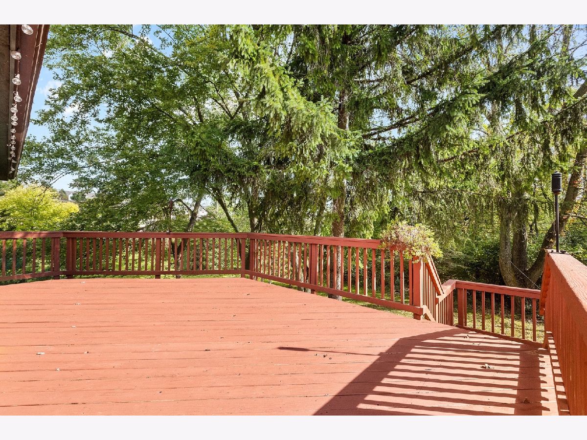 Rustic stone and oak raised ranch home set on a large private wooded lot in Lake in the Hills. This spacious 3 bedroom and 2 bath home features a walk-out lower level, freshly painted exterior and interior walls, large kitchen with island and breakfast bar, stainless steel appliances, updated baths, brick fireplace, and hardwood floors thru out. Sliding doors off kitchen, adjacent dining room, and master bedroom to deck and yard. Lower level includes laundry room, office, full bath, walk-out sliding door to yard, and attached 2.5 garage with plenty of room for cars and storage. Some of the newer updates include: hot water heater, kitchen appliances, and washer and dryer. Enjoy the outdoors with the beautiful large backyard and a newly stained custom 2 tier deck, perfect for entertaining. This amazing property is nestled on a quiet dead end street and close to shopping, schools & restaurants, and more.