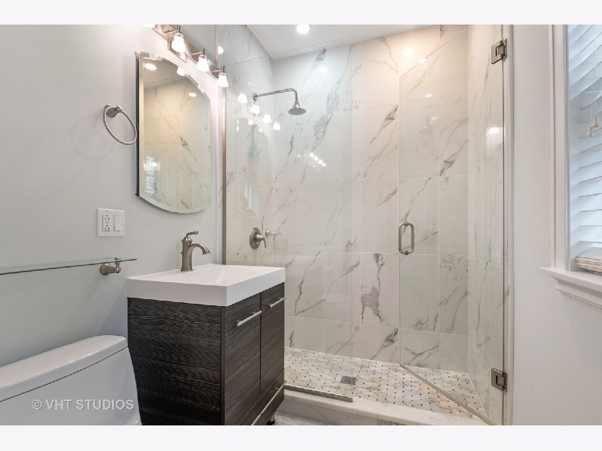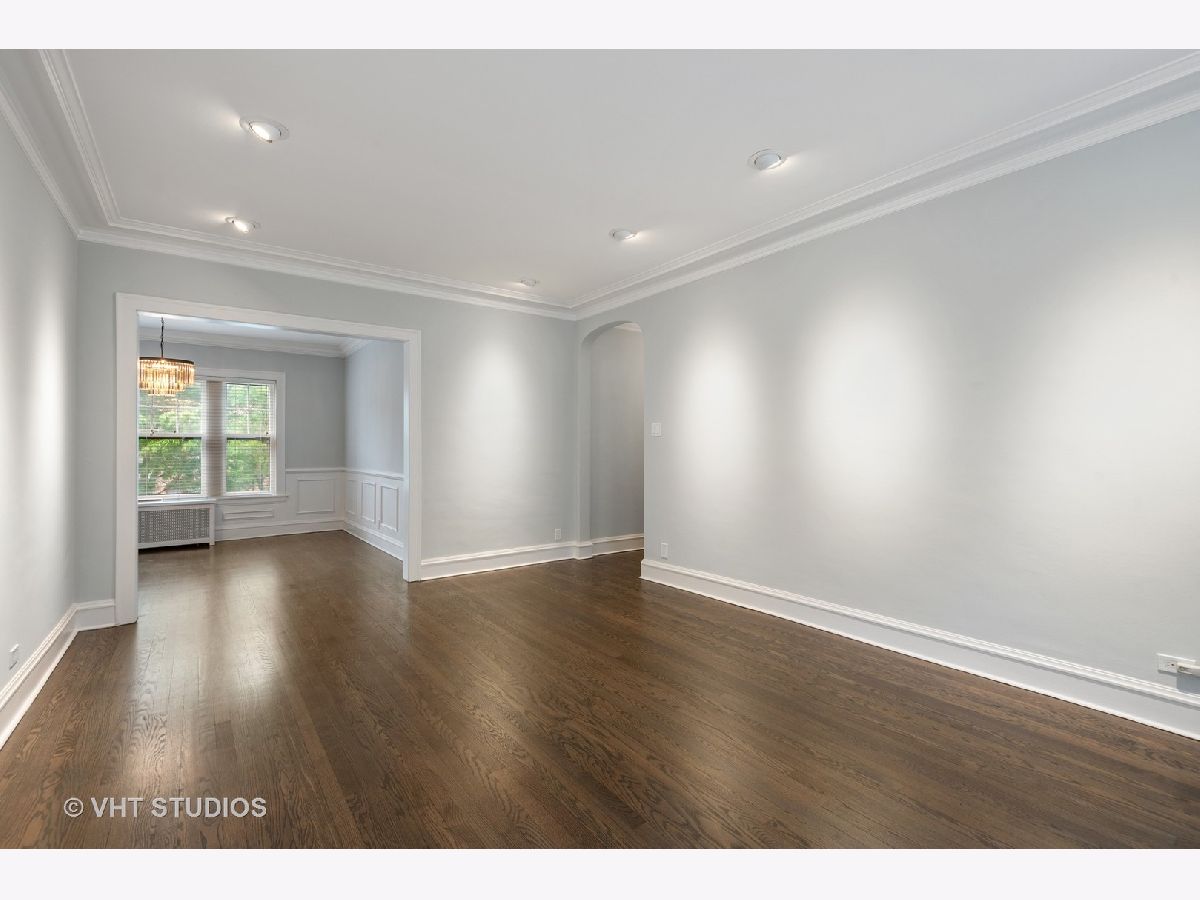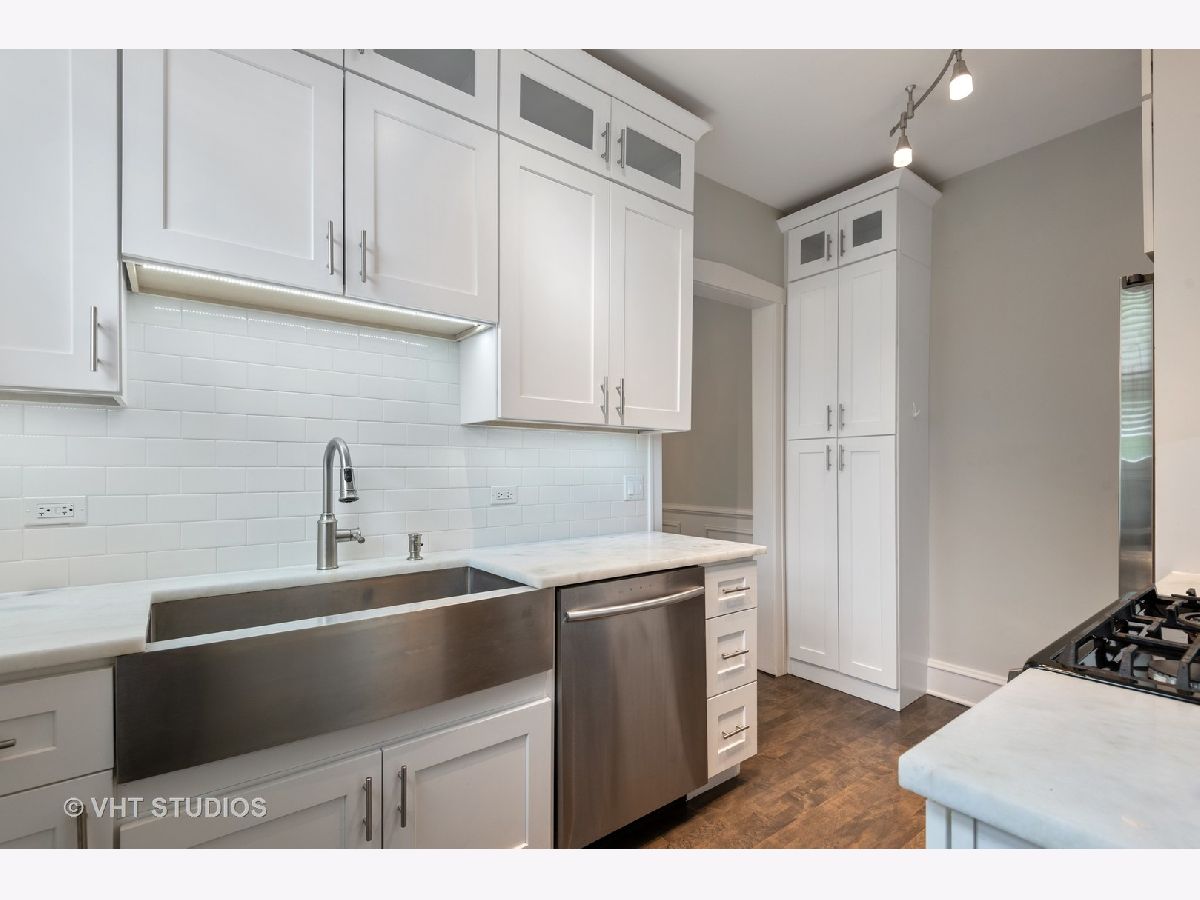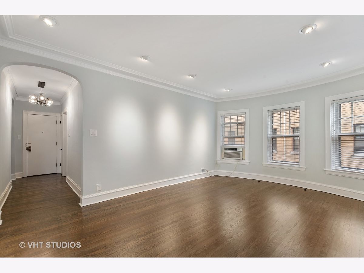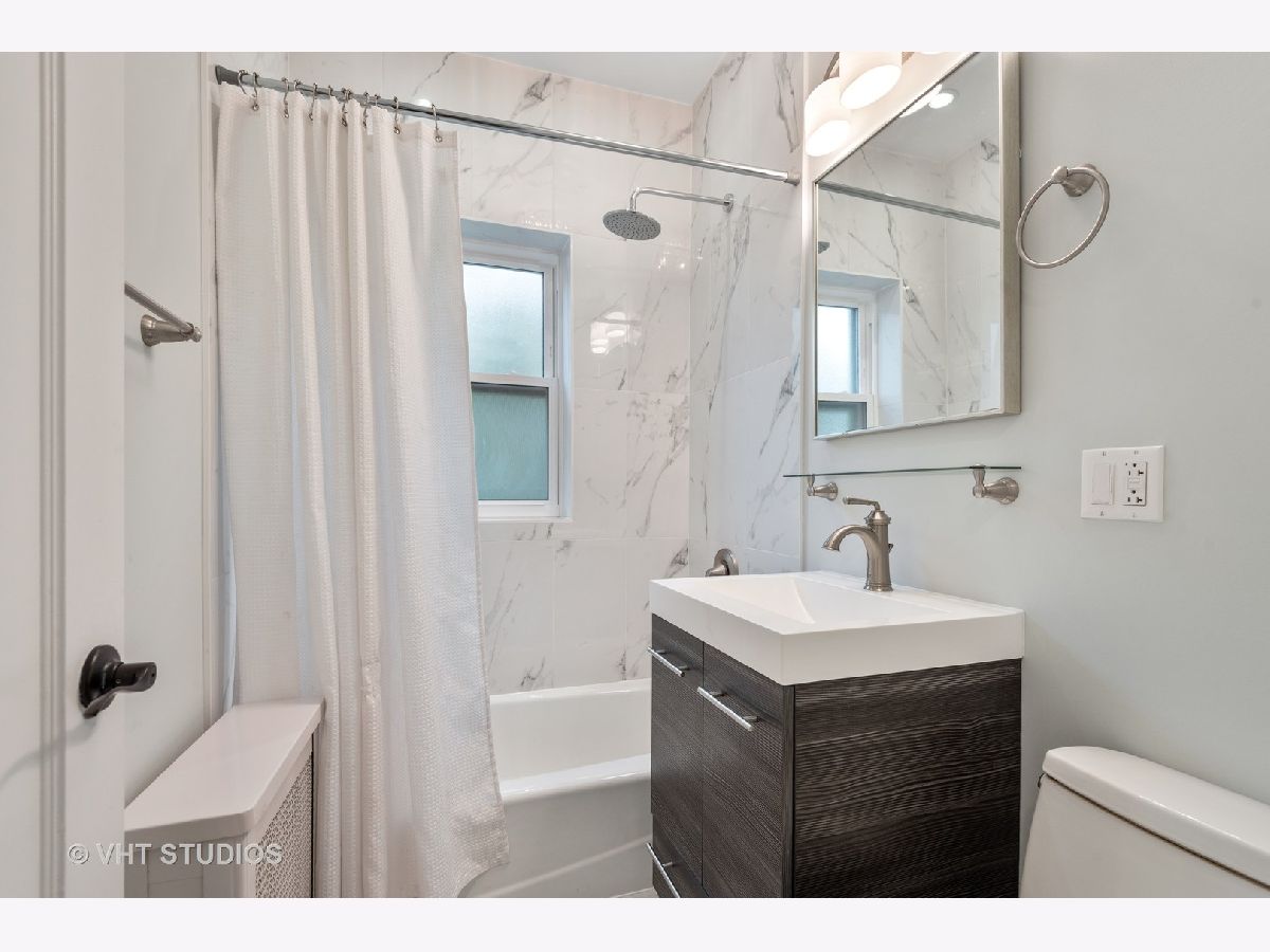 This beautifully updated vintage condo is nestled in an ideal SE Evanston location. Amazing space and layout, this light-filled unit features gorgeous renovations throughout while maintaining its classic integrity. Enter into a striking foyer with dramatic gallery and arched details. The sizeable living room overlooks a lovely, professionally landscaped courtyard. Attractive crown and picture moldings are highlighted in the large, separate dining room. The completely remodeled kitchen was spared no expense with soft-close white shaker cabinets, quartz counters, farmhouse sink and stainless steel appliances. The primary bedroom leads into a stunning rehabbed bath with marble floors, porcelain tiles, striking new vanity and walk-in shower. The secondary bath was also remodeled and features the same superior finishes. Restored hardwood floors and freshly painted throughout. All new lighting on dimmers to select for that perfect mood. In-unit front loader washer and dryer and heated, garage parking round out this impeccable space. Walking distance to the lake, Main Street shops, cafes and public transportation. A true A+ and move-in ready!