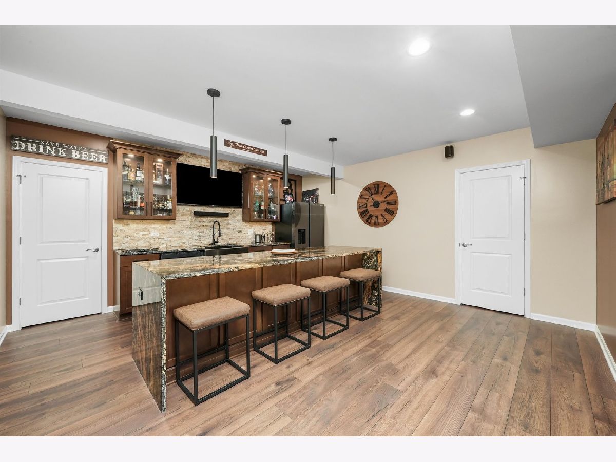 Welcome to the Timbers Edge subdivision of Woodridge, this 5-bedroom home with a fully finished basement and 3 car garage features premium updates that won't be found anywhere else. The expansive open floor plan in the main living area is perfect for modern day living and family events. A large mudroom with bench and storage plus a bonus office area off the kitchen for homework or work from home offer useful additional space. No expense was spared with the upgrades to this home: finished basement with high end kitchen and bathroom, custom built in desk in upstairs bedroom, built in Weber grill, double side burner and refrigerator on huge outdoor island, covered pergola, large paver patio with gas fire pit, custom landscaping, and sprinkler system. The backyard is perfect for entertaining and relaxing, moving seamlessly from indoor to outdoor space that is fully fenced in and landscaped for privacy and security. The second level includes a laundry room, 4 bedrooms and a bonus family room. The basement features a 5th bedroom, movie theater room, dining area, full bathroom, and elegant kitchen with a full-sized island. Ide's Grove West Park is less than half of a mile away without crossing any major streets.