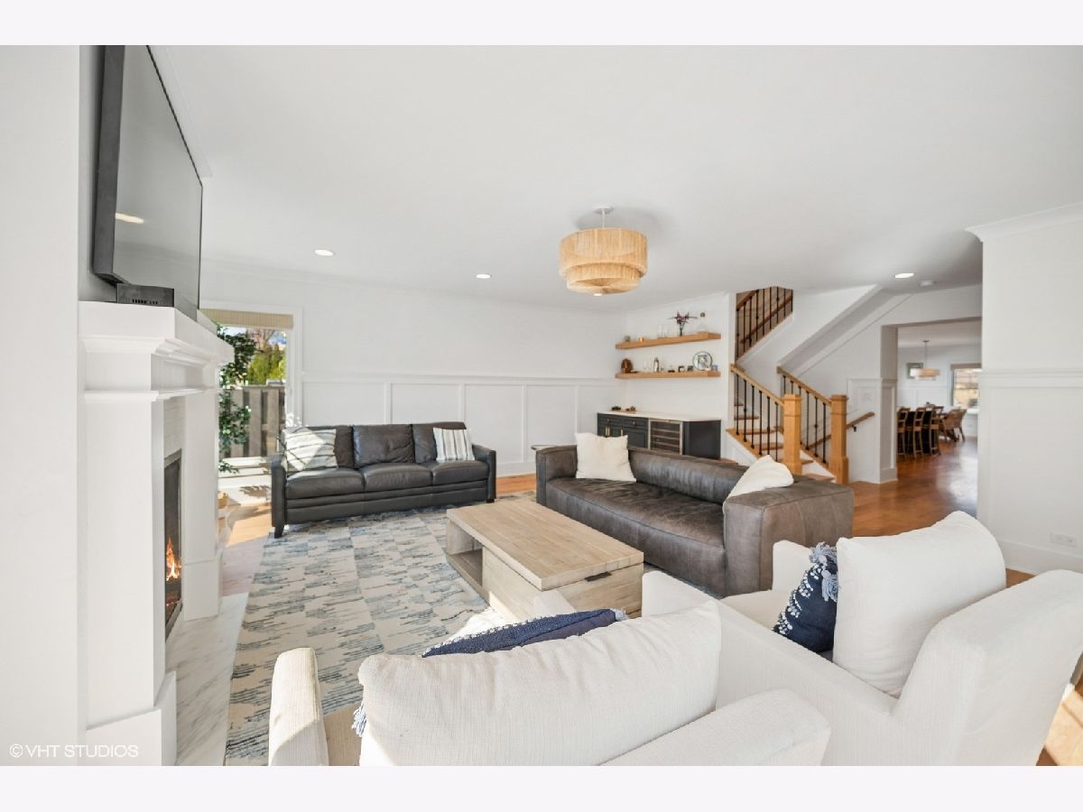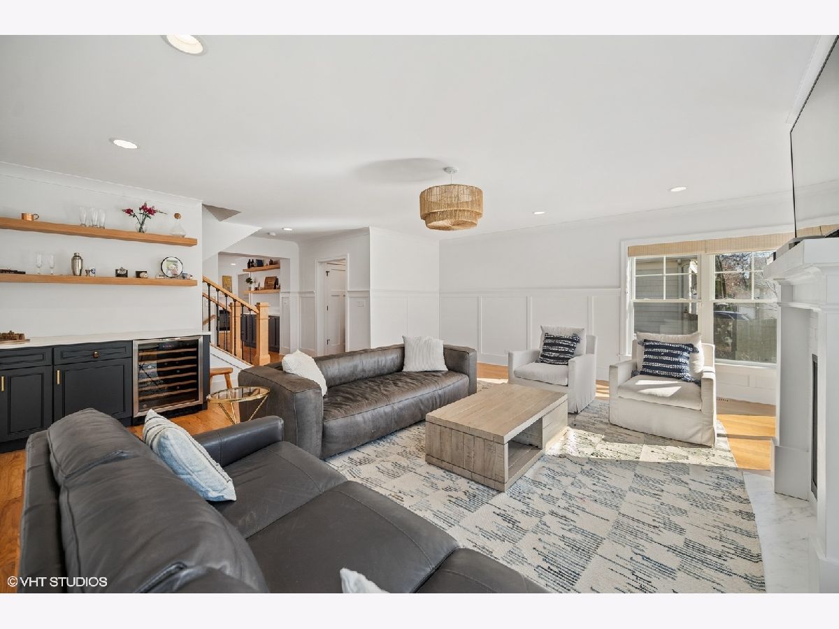 This fabulous house is the culmination of a total renovation plus a three story addition, all with exceptional design, quality and charm. The first floor features an open floor plan with a gorgeous kitchen (with high-end appliances (Viking, Bosch, Sharp), and huge center island with seating for 4 flowing easily to the living area and family room, both with fireplaces. A handsome entertaining/serving bar with storage underneath in the kitchen and an entertaining bar with wine beverage fridge in the family room are practical added features. Also on the first floor is a bedroom (or office), full bath and a well designed mudroom with cubbie and closet storage. The second floor features a luxurious primary suite with a large bedroom which overlooks the charming backyard, a beautiful bathroom with double sinks, spacious steam shower with bench and a large walk-in closet and a traditional wall closet. Two additional bedrooms - both with high ceilings, skylights and spacious closet space and a fun 'bonus' space in the northeast bedroom- are delightful. A fresh hall bath with current, bright finishes and double sinks and a full laundry room complete the second floor. The sun-filled lower level is fantastic with a large media room, spacious play/crafts room, full bath and a huge storage area. The idyllic, sunny back yard is perfect for gardening and play and the newer garage offers parking for two cars and loads of additional storage space. Home sweet home doesn't get better!