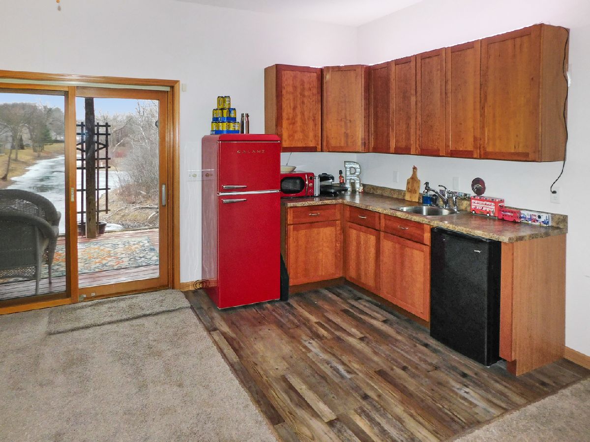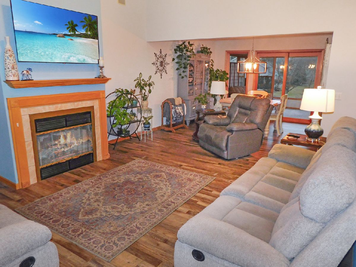 This absolute gorgeous condo located in the charming Village of Rockton is within the highly ranked Hononegah High and Rockton Grade school districts. It features 3 finished levels of living space including a full walkout exposure! This wonderful condo is situated along a beautiful pond with wonderful nature and water views! This open great room floor plan features a cathedral ceiling, luxury plank flooring and a gas fireplace plus transom windows that create a light and bright living space! The great room flows directly into an open dining room with a view of the pond that is sure to be enjoyed! Enjoy the pond views while dining or just relaxing in the sunroom that overlooks the pond. The entryway features a beautiful new front door along with a roomy coat closet. The spacious kitchen is complete with stainless steel appliances and beautiful painted cabinetry providing tons of storage. This kitchen is ideal for the home chef with a big pantry closet providing lots of food storage, tons of granite countertop prep space and on-trend subway tile back splash plus luxury plank flooring and a beautiful, wooded pond view from the kitchen window. A main floor bedroom suite is spacious with a window overlooking the pond along with a wonderful upgraded full bathroom adjacent that includes a fully tiled walk-in shower and upgraded vanity. A handy main floor laundry closet features a washer and dryer and is conveniently located near the main floor bedroom. An open staircase leads to a wonderful primary suite that is secluded on the 2nd level! This luxury suite is complete with a walk-in closet and a gorgeous spa like fully refinished bathroom is ideally furnished with a double sink, cathedral ceiling and a fully tiled walk-in shower! A whirlpool tub featuring a window with nature views is perfect to relax after a long day. A finished walk out lower level features a big family room complete with a kitchenette and a patio door leading to an expansive deck that runs along the pond! You will truly feel like you are on vacation every day, just sit and relax while enjoying all the sounds of nature! This deck is perfectly Zen, situated to enjoy the beautiful water views! An absolute gorgeous park like setting at your own home! A big third bedroom with a huge walk-in closet is tucked into the back of the walkout lower level with a full bathroom just adjacent. This bedroom would make an ideal guest suite or the perfect quiet secluded office space with a view! An attached 2 car garage provides plenty of exterior storage along with a set of pull-down steps for extra attic storage space! Plenty of additional parking for guests is located close by. The Village of Rockton provides so much entertainment with the downtown a short walk away! Events and festivals all year round include the river market on Wednesday evenings all summer with live music, food trucks, shopping and activities! You are sure to enjoy your time spent in one of the parks, playground or forest preserve. Take a ride on the bike paths, swim at the community pool or launch your boat from the community boat launch. Do your errands locally, just take a walk down Main Street, you will find plenty of shops, restaurants, bars, a market, library and handmade ice cream or just sit and relax at the wine bar! Plenty of sporting opportunities are available at the athletic fields or play tennis, pickle ball and basketball at the community courts.