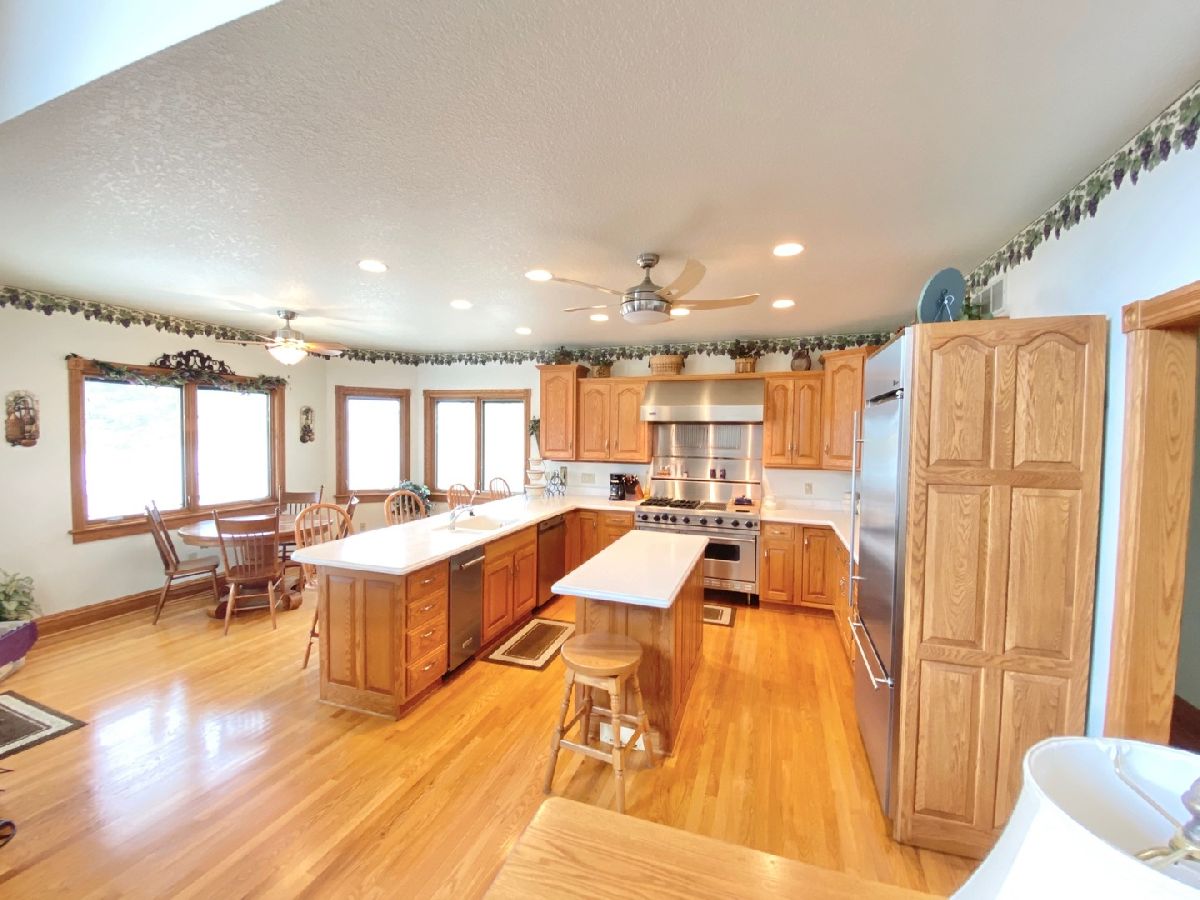 Tranquil & Peaceful setting with a one of a kind spacious all brick home with 250 feet of gorgeous ROCK RIVER waterfront finished with a seawall. Impeccably maintained throughout. 4-5 bedrooms, 3.5 baths and an amazing 1200 sqft finished garage with all of the perks. Full walk-out lower level that leads directly out to the 2000 sq ft brick courtyard (perfect for entertaining) and the flat river frontage with no steep steps or hills. The lower level offers plenty of space for enjoying the indoors after a day on the river including a large changing room with shower/laundry, seperate area with plumbing/sink that could easily be a bar and a large rec room perfect for pool table, darts or just relaxing watching movies. Upstairs the open concept main floor offers views from every room, a 64x16 Brazillian Iron Wood deck wrapping the back of the home with easy access from the kitchen or primary bedroom, a cooks kitchen complete with Corian counters, solid John Martin cabinets, a Jenn Air stove, oversized stainless fridge and a seperate ice machine. The 2 story window filled Great Room has a beautiful coffered ceiling, open staircase, gas fireplace and perfect hardwood floors. The master suite is large and offers a 14 foot vaulted ceiling, master bathroom complete with dual walk-in custom closets, tiled walk-in shower, seperate toliet closet, dual vanities and a jetted tub. This home also offers an oversized main floor laundry mud room, formal dining room with custom built-ins, in floor heat in the lower level, 3 -2nd story spacious bedrooms with fantastic walk-in closet space. This home is loaded with amenities throughout and priced welll below the cost to duplicate. Located in Dixon this community is the perfect place to call home, enjoy small town living with local dining/botiques, main street involvement and feeling a true sense of community. Located just minutes from I-88 and a hop skip and jump from the suburbs with out the traffic. Perfect opportunity to make this your Dream Home or 2nd Property to just get away from it all.