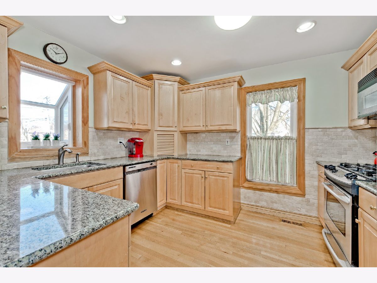 THIS HOME IS SECURED, CLEANED AND SANITIZED. PLEASE COME VIEW IT. Fantastic, updated 3 bedroom/ 1 1/2 bathroom home located in excellent Arlington Heights neighborhood and top rated John Hersey school district. Updated kitchen with solid, custom Maple wood cabinetry blended with granite countertops, custom tiles backsplash, stainless steel appliances and breakfast room. Large sun-drenched living room with a fireplace and surround sound. Perfectly positioned formal dining room. Second floor has large master bedroom and two guest bedrooms, with updated full bathroom. Small den area off the kitchen. Small partially finished basement with laundry, recreation area, mechanicals and storage. Home has updates throughout including: Exterior siding on home and garage, roof, electrical, plumbing, mechanics, newer hardwood floors installed throughout, brick paved patio, garage exterior and roof. Large rear yard with newer sewer drainage and brick paved patio. 2 car detached garage!