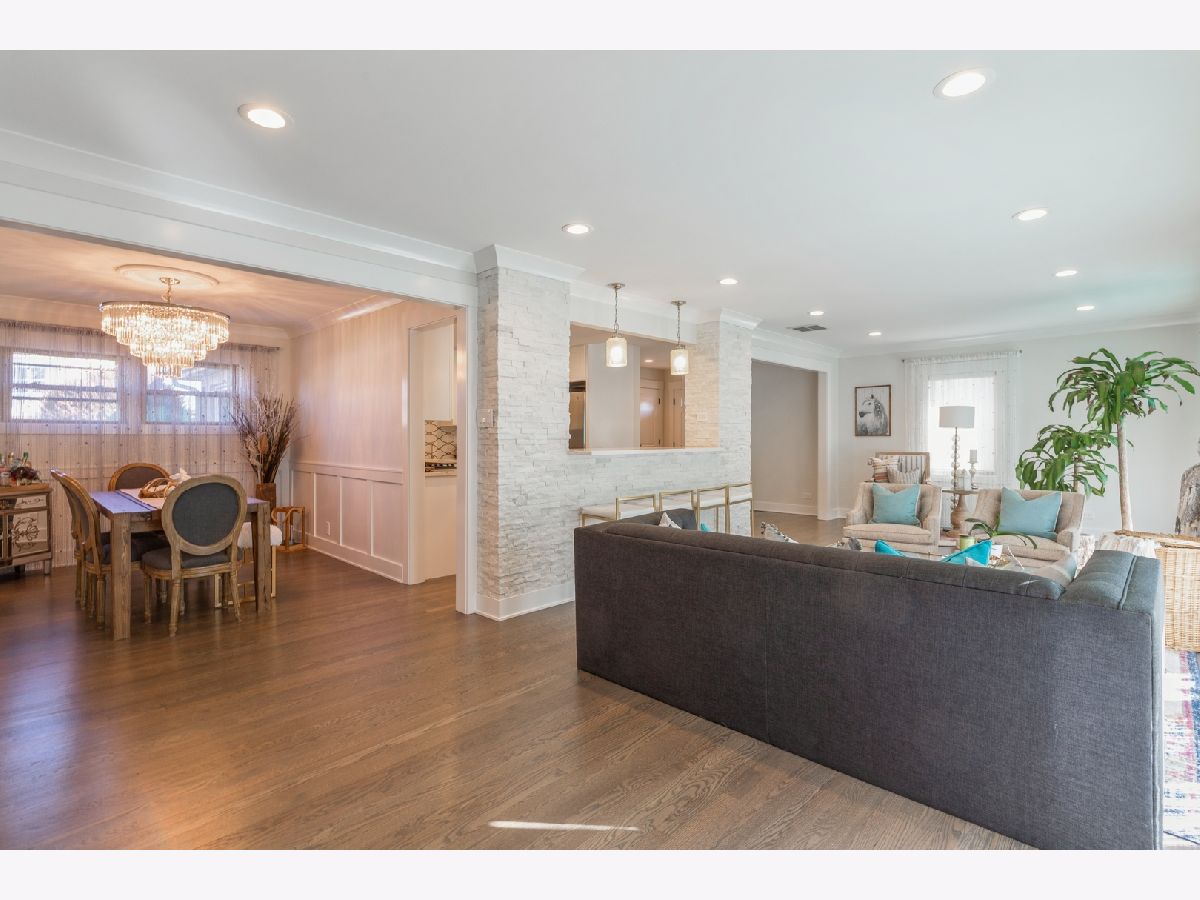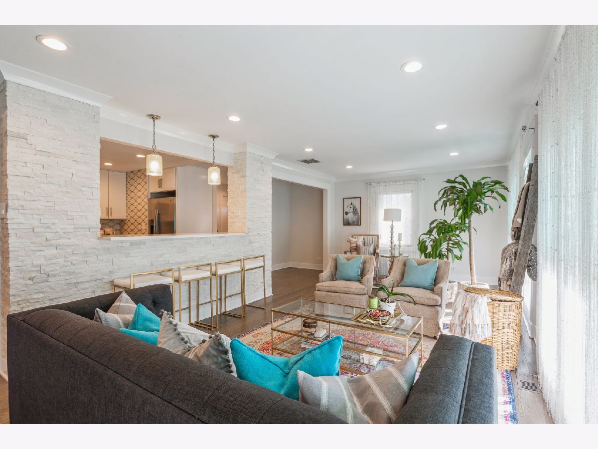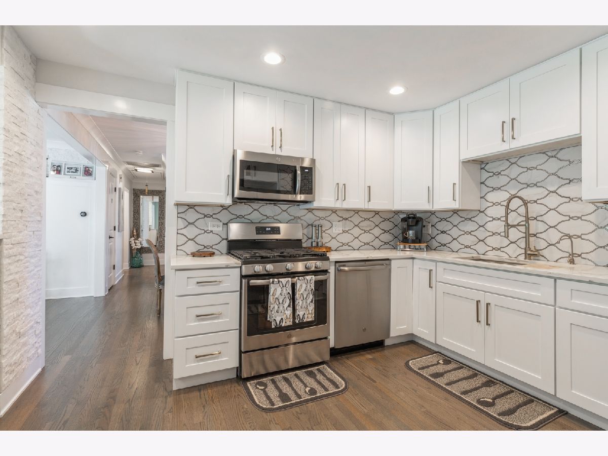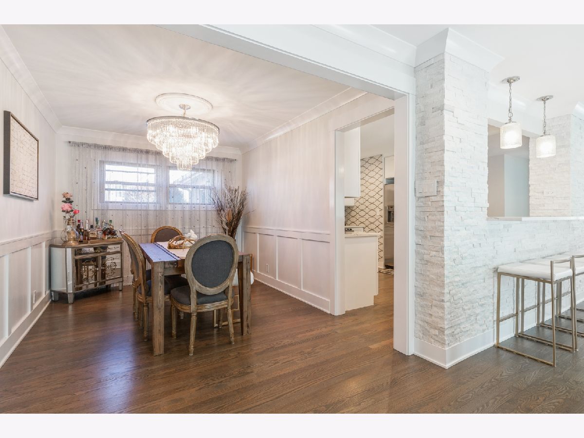 Stop your search! One look and you will be smitten! Absolutely stunning, fully renovated 3 bedroom/2 bathroom ranch in a fantastic Norridge location. As you enter you will notice the gleaming hardwood floors that are featured throughout the house. Open space, tons of natural light, perfect for hosting and entertaining. Be amazed with lovely design kitchen with custom white cabinets, quartz countertops, beautiful porcelain backsplash and all stainless steel appliances. Gorgeous breakfast bar surrounded by quartz leger stone wall. Custom crown moldings and wainscoting in formal areas. Down the hallway, you will have 3 bedrooms including a bathroom with double vanity, porcelain countertop and a bathtub. Family room with vaulted ceiling, skylights and elegant, glass remote controlled fireplace. Built in TV space above the fireplace. Recessed lighting throughout the house. Home offers 1700 square feet of living space and sits on a big, corner lot with large deck coming off the family room. Great schools! Near train, shopping, O'Hare airport and expressways. Start your next chapter here!