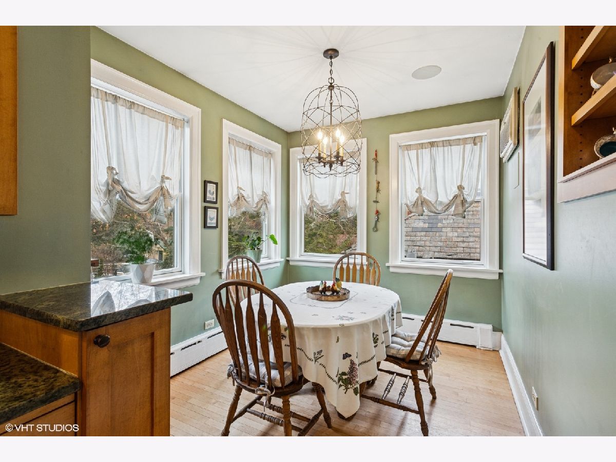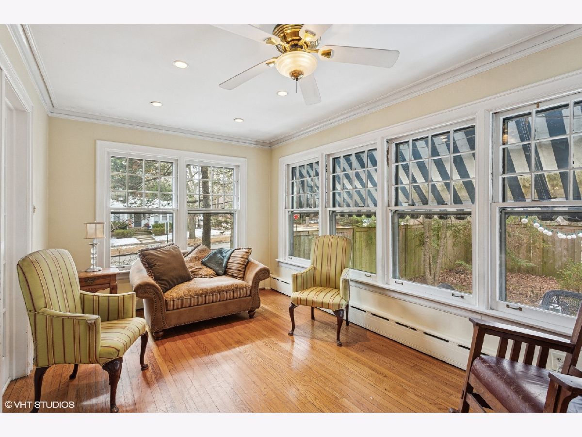 This sun-flooded, stately red brick Colonial is nestled in one of Northeast Evanston's most sought-after locations. Walk to Lighthouse Beach, Orrington School, the EL, Canal Shores Golf Course, tennis courts, parks and playgrounds. Enjoy easy access to the Metra and to upscale Central Street shops. Boasting spacious rooms and an ideal first-floor layout, the oversized living room features a charming wood-burning fireplace with an elegant mantle and original built-in bookcases. French doors open to a sunroom that overlooks the fenced side yard and flagstone patio. The generous dining room is perfect for hosting large gatherings. Just off the kitchen, find a versatile den/office sunroom. This sunny space can easily double as a guest bedroom, thanks to the updated full bath with walk-in shower. The renovated kitchen is a chef's dream, with granite countertops, ample cabinet storage, stainless steel appliances, a double oven, and a sunny breakfast room for casual dining. Upstairs, you'll find three bedrooms, including a spacious primary suite (enough room to add a primary bath!) with a very large walk-in closet. The second bedroom features an attached sunroom, adding even more living space. A classic vintage Jack-and-Jill half bath connects the two guest bedrooms. The full attic, accessible by pull-down stairs, offers high ceilings and endless potential for expansion. The full walk-out basement also provides ample storage space, laundry area, and high ceilings, offering fantastic possibilities for a rec room, exercise space, or whatever your imagination can envision. Rich in classic vintage details, this home features hardwood floors throughout, crown molding, decorative wall moldings, and more. The fenced yard and one-car garage complete this wonderful home. Love where you live!