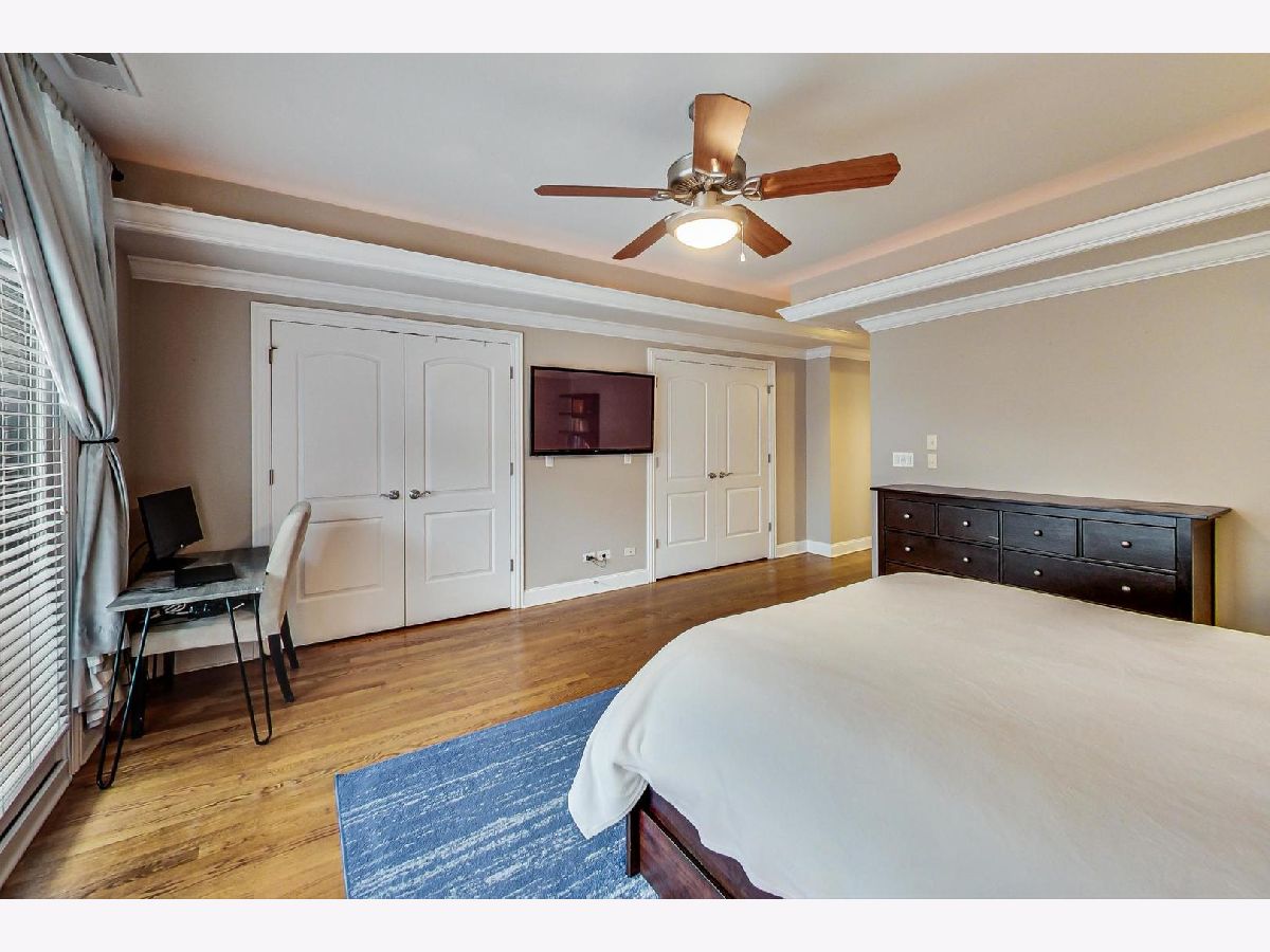 Amazing opportunity to own this oversized 2 bedroom / 2 bathroom home with many extra features! Situated on a one-way, tree lined Street in prime Lakeview location. Floor-to-Ceiling windows and a Juliet balcony bring in lots of natural sunlight. Enjoy the spacious open-plan layout with the gas fireplace as a cozy focal point. Ample space for seating and dining areas which leads into a well equipped kitchen that boasts plenty of countertop and cabinet space. Bonus wet bar area right off the kitchen is a wonderful feature. The extra millwork is notable with intricate crown molding throughout and tray ceilings. The gorgeous hardwood floors are in excellent condition. Huge Master Suite that includes double custom closets and private walk-out balcony. Luxurious en-suite with dual vanity, jetted tub & separate rainfall shower! Additional outdoor space includes a common roof deck which is currently being upgraded with composite decking and pergola. New roof recently installed on the building. Seperate storage closet on site and 1 garage parking space included. Easy walk to the Train, the Lakefront and all the restaurants in the area. Nettlehorst Elementary around the Corner. Very healthy and well run association.