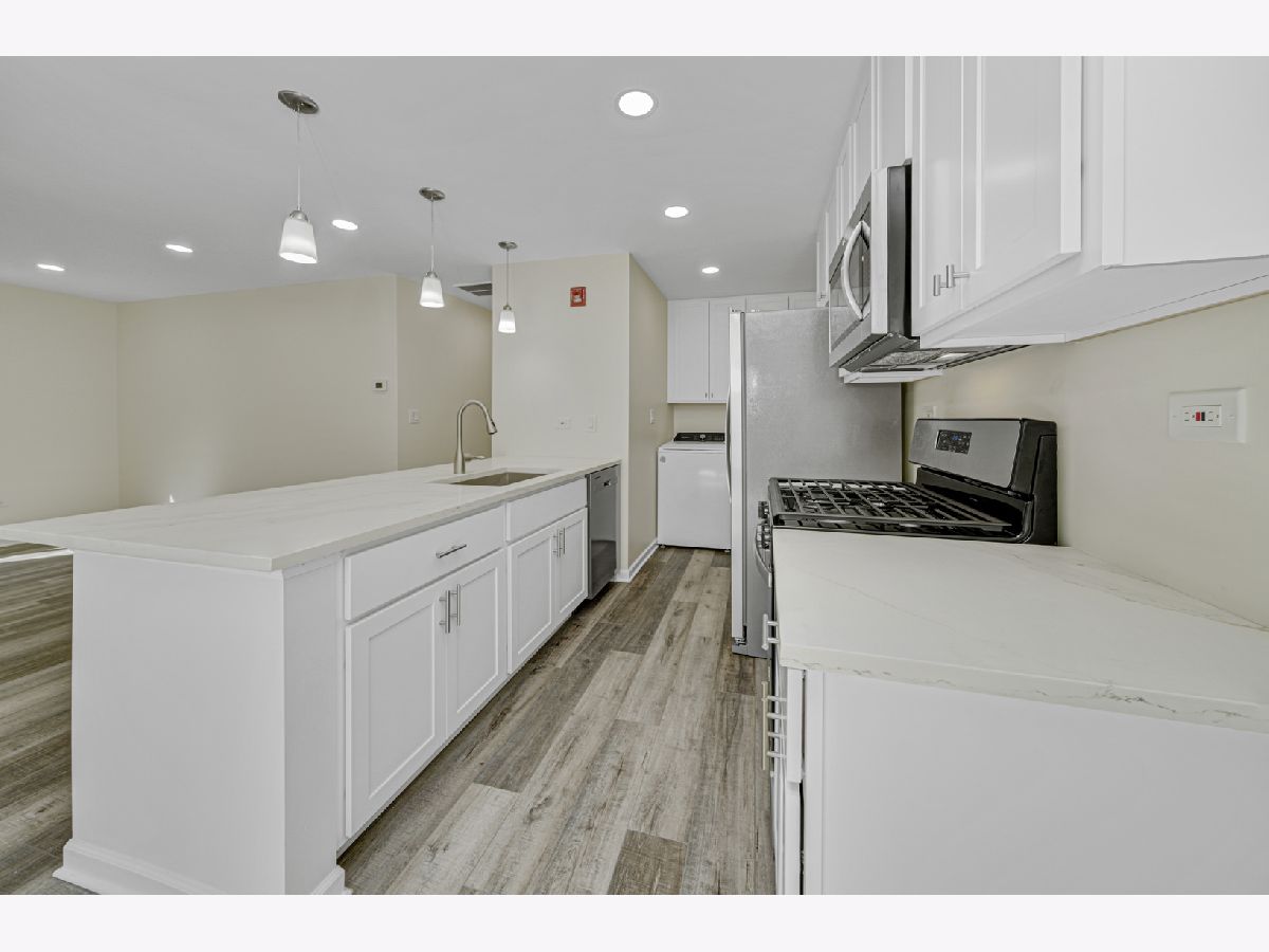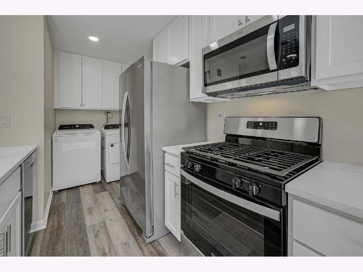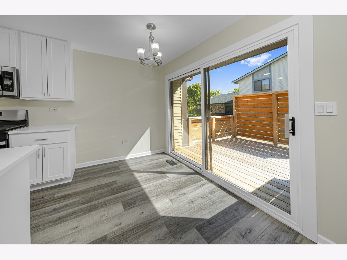 Quality craftsmanship is evident in this newly updated & highly sought after 3 bedroom, end unit, ranch townhouse/condo that's nestled on a prime lot overlooking a wooded preserve! Features: A stunning kitchen with 42" white cabinets, stainless steel appliances, quartz counters & breakfast bar; Sun-filled living room with an abundance of recessed lighting; Dining area with a door to the private, enclosed deck offering serene views of nature; Spacious master suite with double closets; Generous sized bedrooms; The large, upscale bath offers a quartz vanity & custom tile detail; Convenient attached garage & in-unit laundry; Luxury vinyl plank flooring throughout. Ideally situated close to local amenities, including various shopping centers, a selection of restaurants, and easy access to the interstate.