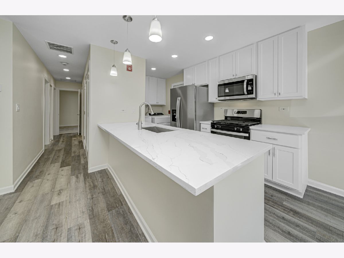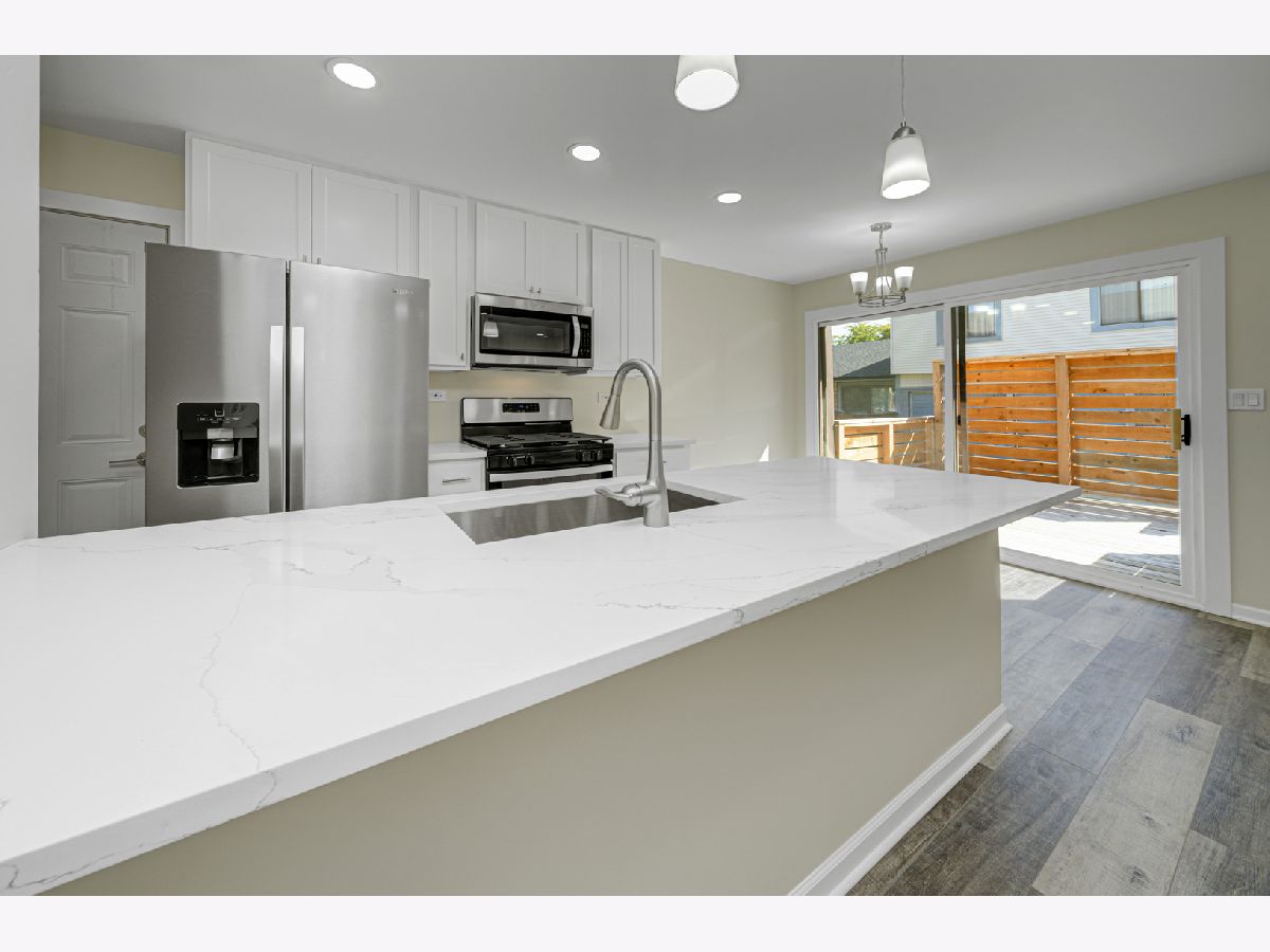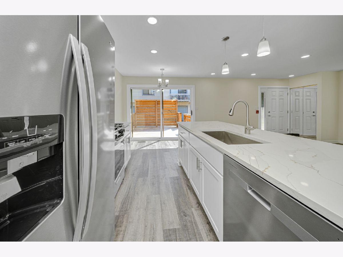 Quality craftsmanship is evident in this newly updated & highly sought after 3 bedroom, end unit, ranch townhouse/condo that's nestled on a prime lot overlooking a wooded preserve! Features: A stunning kitchen with 42" white cabinets, stainless steel appliances, quartz counters & breakfast bar; Sun-filled living room with an abundance of recessed lighting; Dining area with a door to the private, enclosed deck offering serene views of nature; Spacious master suite with double closets; Generous sized bedrooms; The large, upscale bath offers a quartz vanity & custom tile detail; Convenient attached garage & in-unit laundry; Luxury vinyl plank flooring throughout. Ideally situated close to local amenities, including various shopping centers, a selection of restaurants, and easy access to the interstate.