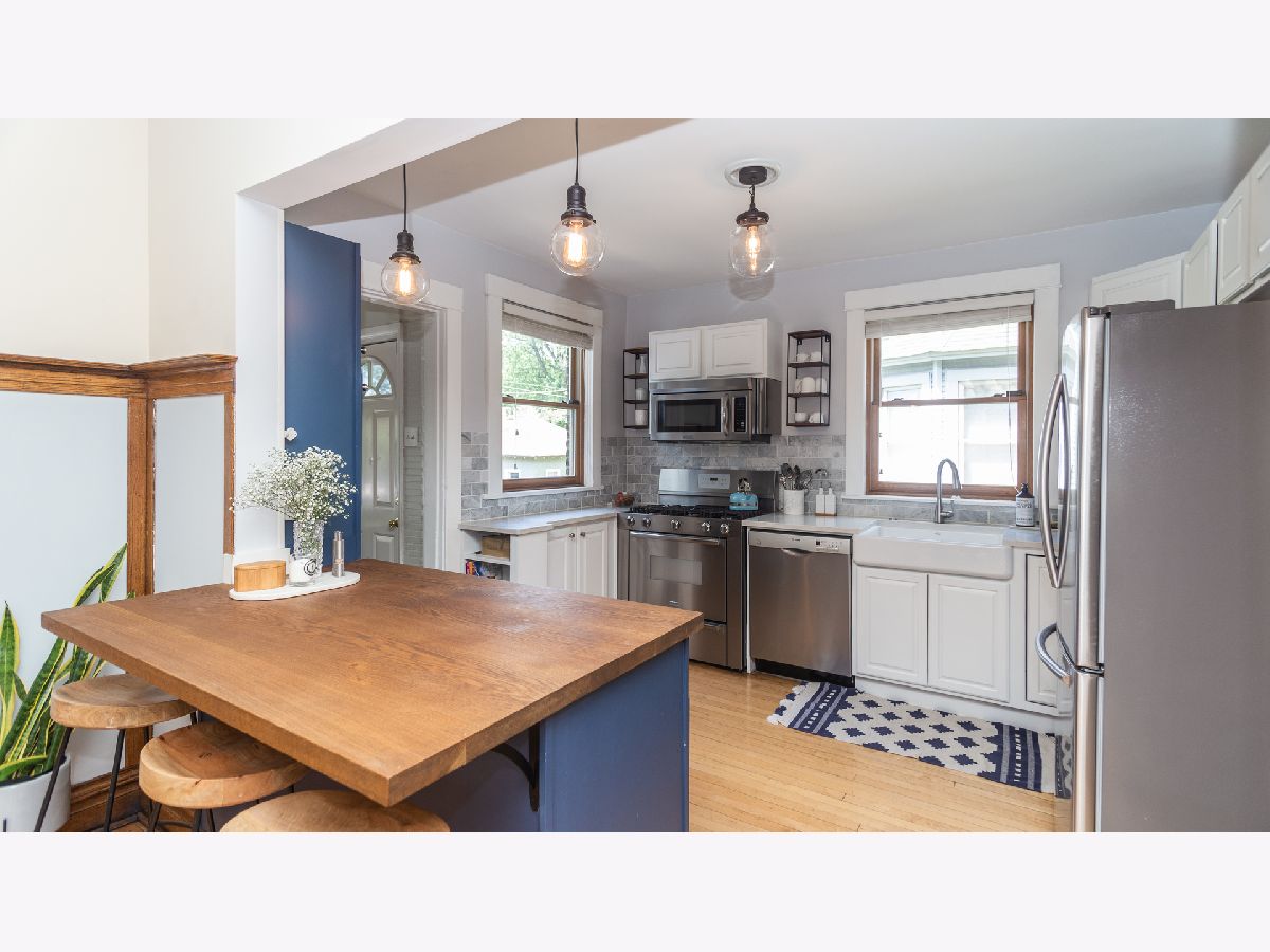 Welcome home to this solid brick, totally updated home in the Arts District! The gorgeous open kitchen features a butcher block island, custom cabinetry, white quartz countertops and stainless appliances. The enclosed front porch offers flexible space and the family room is conveniently located off the kitchen. Beautiful original built-ins, woodwork and stained glass throughout. Windows have also been replaced throughout. 2nd floor features 3 nice-size bedrooms plus a tandem room that can be an additional bedroom or office. The bathroom has been completely updated with white subway tile, new vanity and lighting! The basement offers a finished office space as well as clean, dry storage and laundry. The large, landscaped yard with patio is fully fenced and offers lots of room for kids, dogs and entertaining. The oversized 2-car garage is 6 years new! All of this PLUS you can walk to EVERYTHING-CTA Blue line, Arts District shopping and restaurants, parks, schools, library and more! Nothing to do but move in and enjoy the Oak Park life!