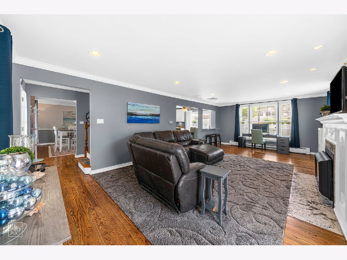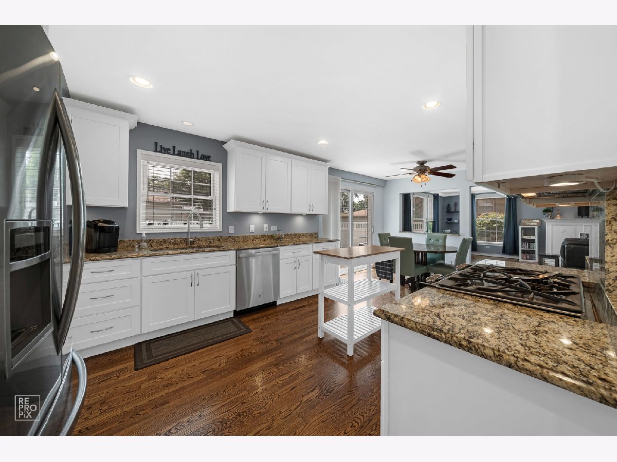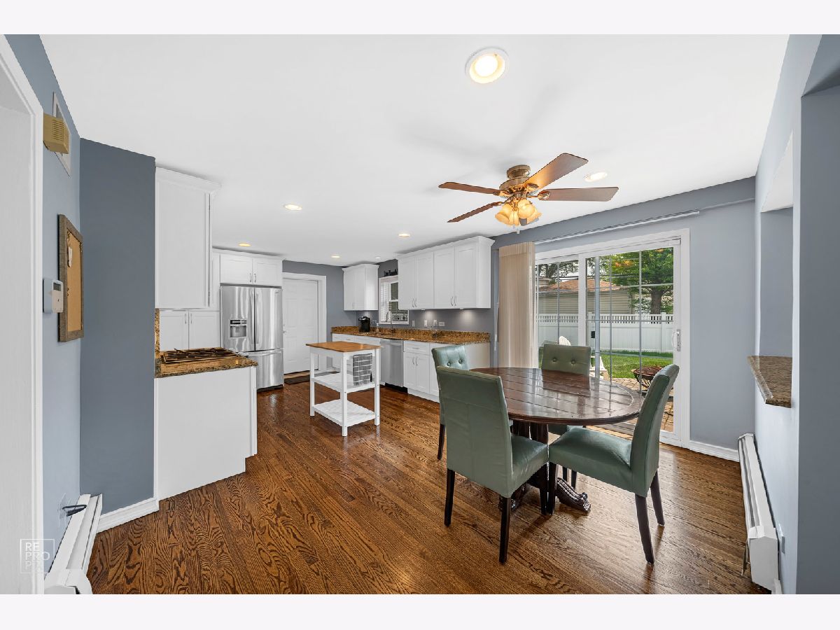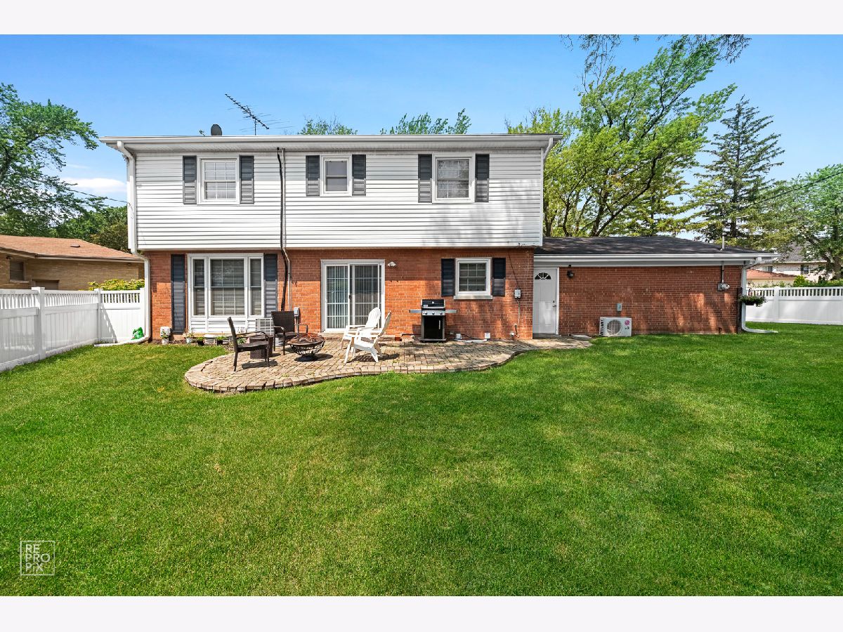 This home has it all! 4 bedroom 3.5 bath completely updated center entrance Colonial on a quiet street. Newly refinished hardwood floors throughout. New updated eat-in kitchen opens to the large family room with fireplace. Sliding glass doors off kitchen leads to brick paver patio. Separate formal dining room. 4 large bedrooms on the second floor with master bathroom. Finished basement with laundry room and full bath. Great size fenced yard, 2.5 car attached garage with new concrete driveway and walkway. Minutes from the Dee Rd. Metra. Nothing to do but move in!