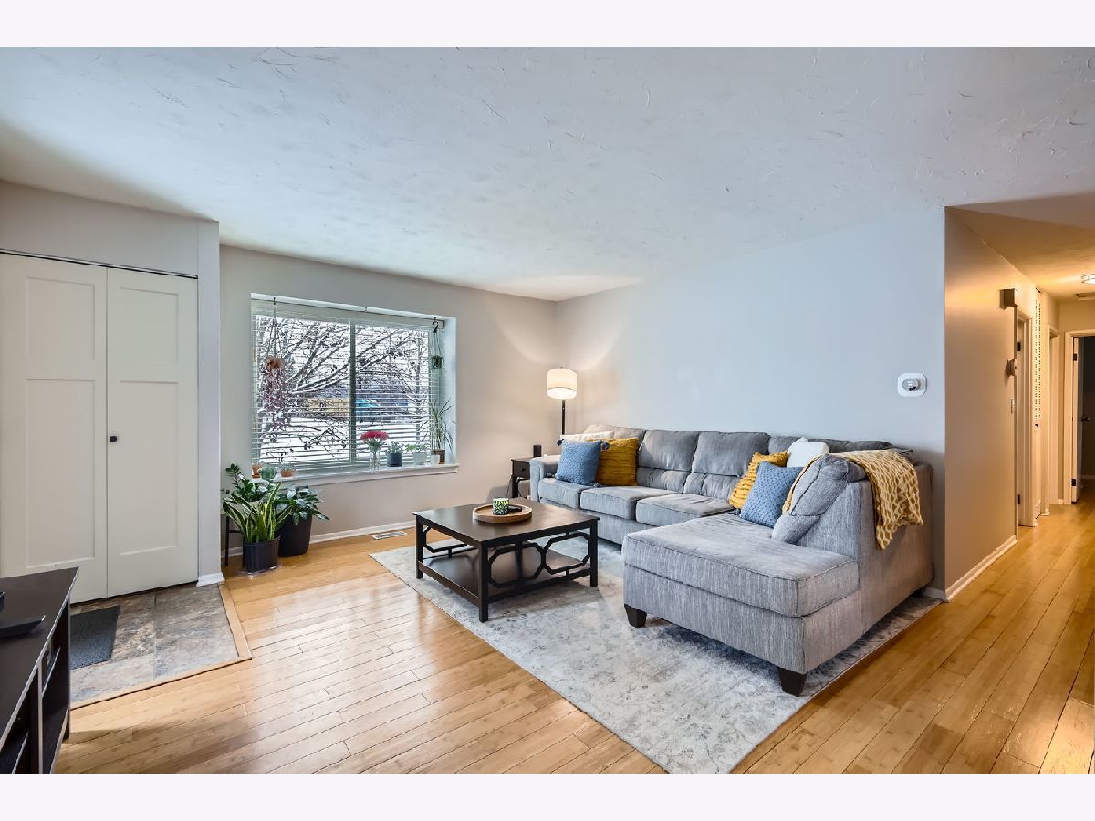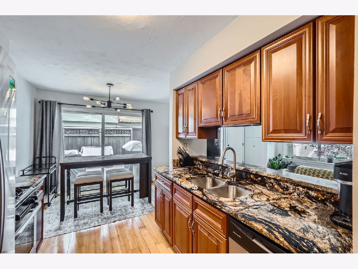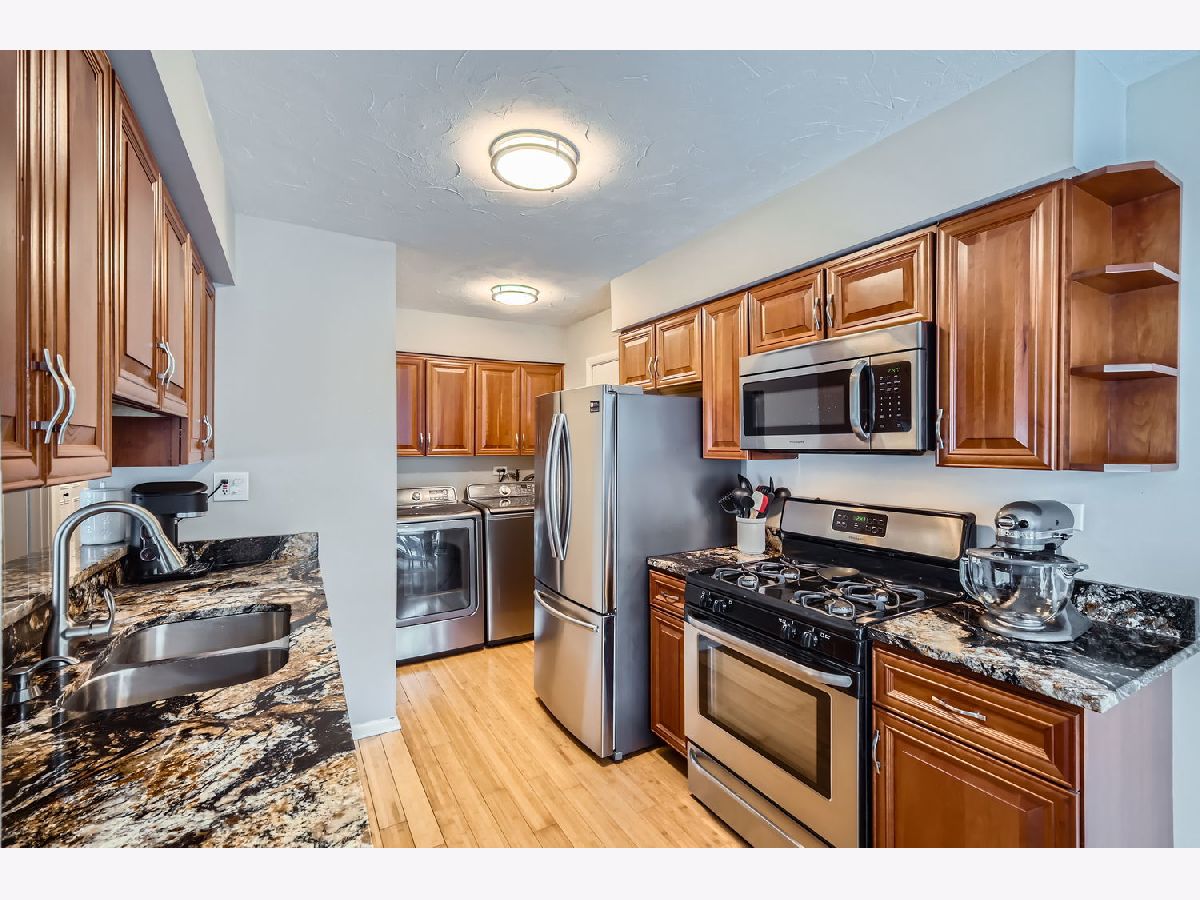 Awesome 3 bedroom ranch townhouse! Light and bright end unit. Newer kitchen with Cherry cabinets, granite counter-tops and stainless-steel appliances. Beautiful Bamboo flooring throughout. In-unit laundry with newer washer and dryer. New closet doors which make a beautiful addition to the decor. Lots of updates: walls and ceiling freshly painted throughout. New modern light fixtures and modern black matte faucets in the bathroom. The furnace & AC 2016, refrigerator 2018. All 3 bedrooms have new ceiling fans. Includes a deck off the dining room with privacy fencing, ideal for grilling or chilling. Parking includes your attached one car garage and shared exterior spaces Exterior maintenance included in the HOA. Snow removal, lawn care and trash included. Easy access to I-55 and close to shopping, restaurants and Waterfall Glenn forest preserve.