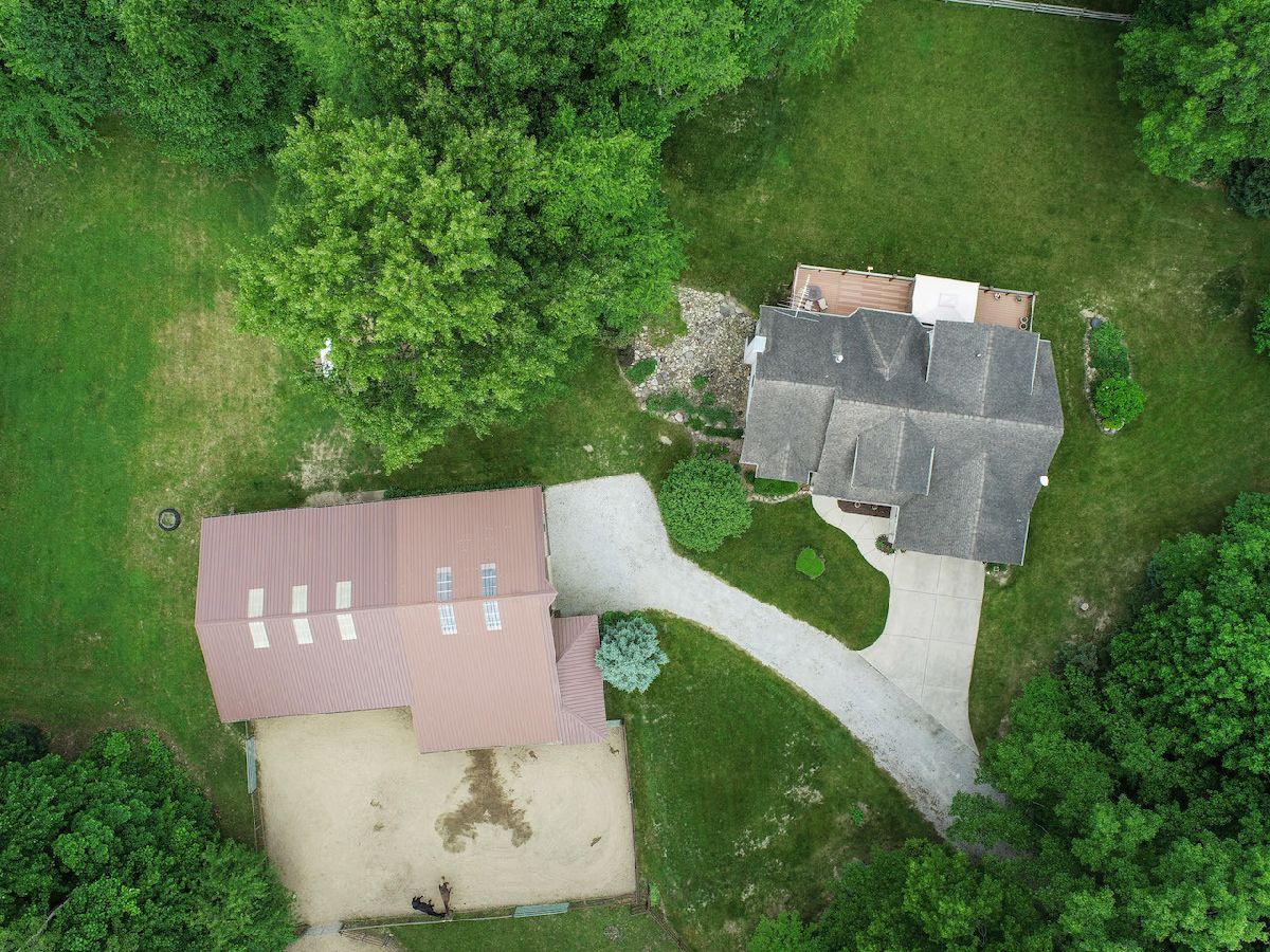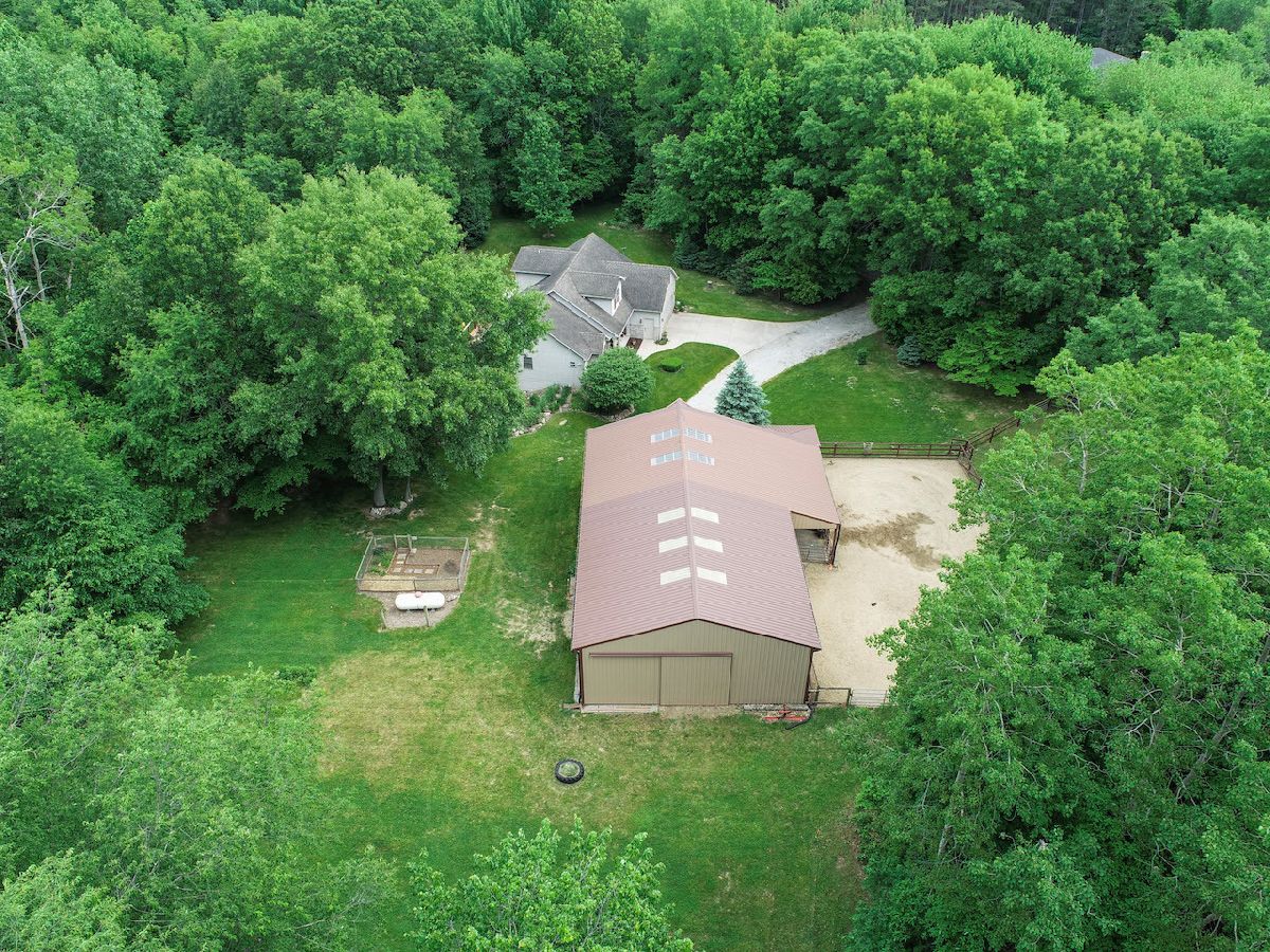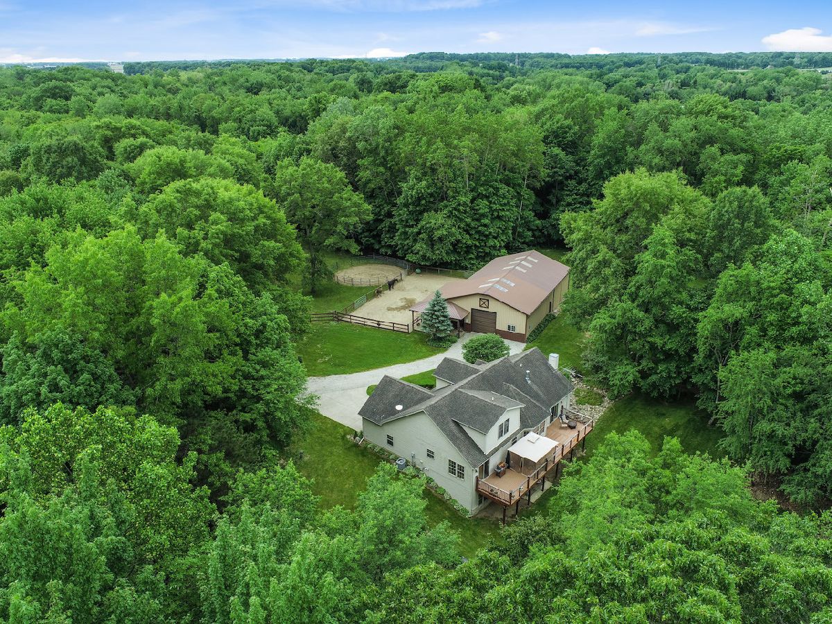 Easily the best of ALL worlds: a great home AND great horse property; nestled in a secluded setting YET near everything! 2004 custom-build home on 8+acre with open main level living, vaulted ceilings, fireplace, upgraded kitchen (ss apps, granite counters, soft-close hickory cabs, grouted vinyl floors, kitchen nook, pantry), primary bedroom suite with fireplace and sliding door to full rear deck. Main floor also includes dining room (flex room), 1/2 bath, large mudroom off 2+ car garage, and laundry room. 2nd floor boasts 2 add'l bedrooms plus full bath. Full walkout basement with 9.5ft ceilings awaits your vision: rough-in for add'l bathroom, possible fireplace, plenty of space. 70' x 40' 2-stall horse barn with direct access to paddock, round pen, and 12' overhang, double loft, tack room, 2 large overhead doors. Plenty of outdoor space including riding trails. Porter Cty, Duneland schools. Near Michigan City, Valparaiso, Chesterton, and easy access to highways for access to/from Chicago. view drone footage for overview of this must-have property!
