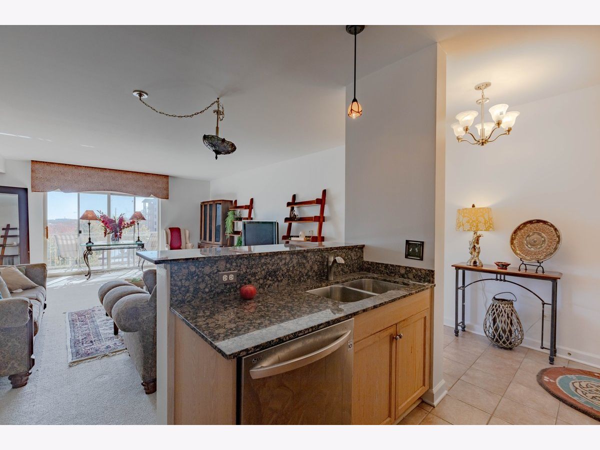 Rare "Woodlands" offering: 2 BRS + Den & 2 Baths. 2 car(tandem) garage and 2 separate storages spaces. Spectacular southeast exposure offering superb bright cheerful early sun & skyline views. Best & most desirable third floor location. Note the huge master bedroom & walk in closet + a spa like master bath w/60' shower stall. Dramatic living - dining room combination adjacent to the lovely granite kitchen. The Den is conveniently located off the Living room(opposite the bedrooms) and the 15' balcony. Enjoy 9' ceilings w/ high transom windows for added sunshine. Heated radiant floors (heat include w/monthly assessment) and quality construction. Note the luxury Lobby entrance and two elevators. The Woodlands is exceptionally managed (w/management office on site) offering a quality, quiet and safe environment. Conveniently located adjacent to the Metra station, world class forest preserves, easy access to highways, O'Hare, bus, school, park, pool and numerous restaurants and shopping centers.