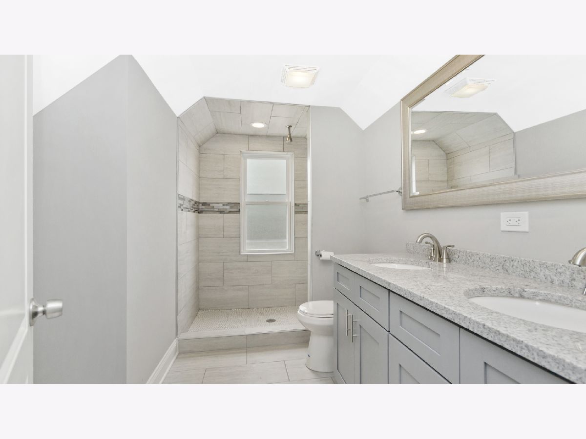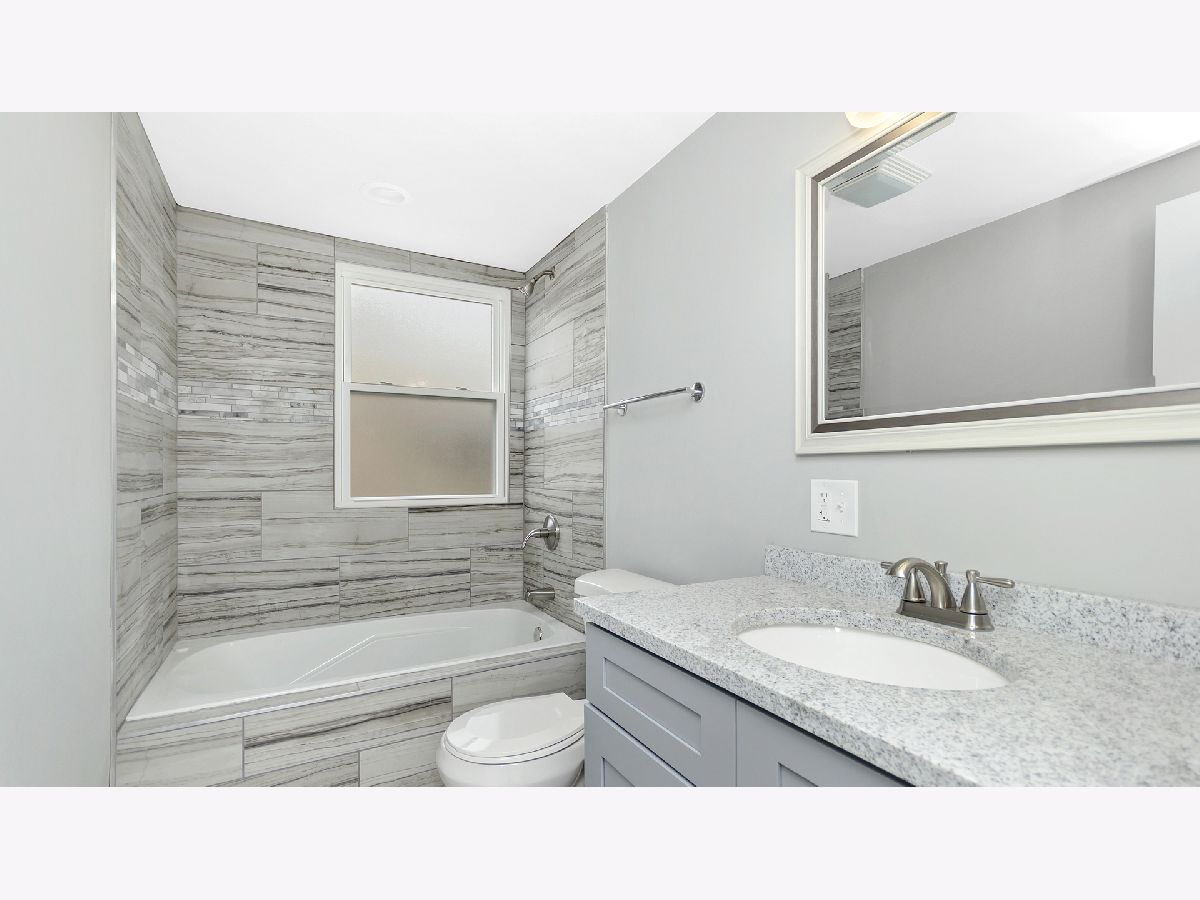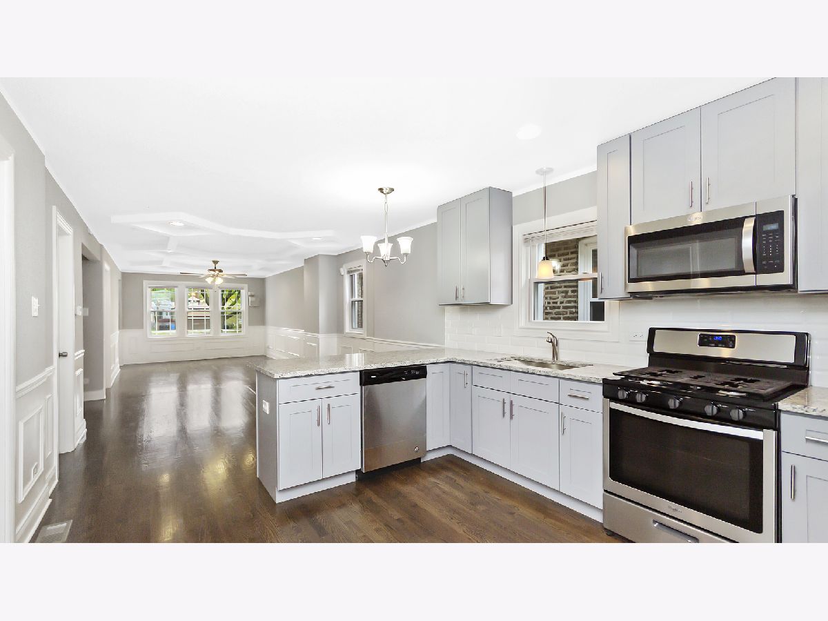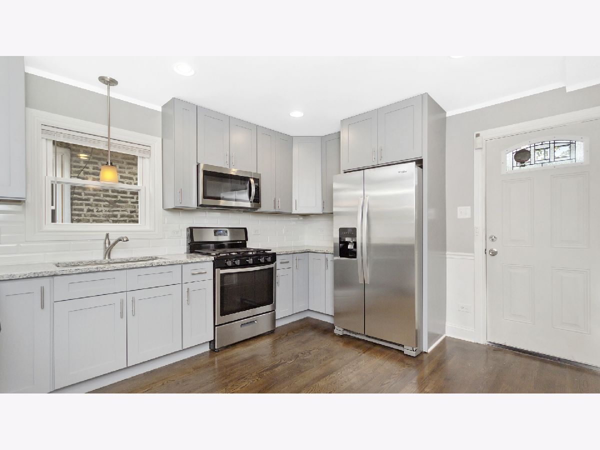 Sun filled brick rehab with all new finishes and fixtures, kitchen, baths, roof, windows and more! Open concept living/dining with great natural light, custom millwork, and warm hardwood flooring. Adjoining kitchen with soft close shaker cabinetry, SS Whirlpool appliances, beveled subway tile backsplash, and granite counters. Two main level bedrooms and full guest bath with jetted tub. Upper level master suite with sliding barn door, skylights and private full bath with dual vanity and shower. Spacious lower level with large recreation space, 4th bedroom, full bath with shower, and utility room with laundry hook up, utility sink, and all new furnace and water heater. Great outdoor space with fresh landscaping/sod, small back porch, and all new two car garage. Easy access to the Metra, I90, Lake Shore Drive, and area conveniences. Perfect for the first time buyer!