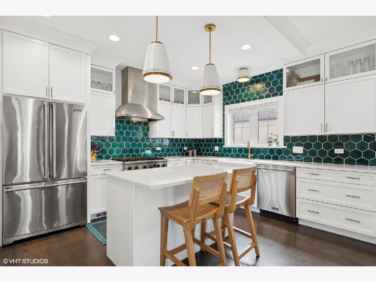 Introducing a truly incredible luxury home in the heart of Arlington Heights! Built in 2020 by a highly respected local builder known for their timeless design and quality construction, this stunning 4-bedroom, 5-bathroom home has all the style and features you have been dreaming about. Flooded with natural light, the exceptional and pristine millwork is showcased throughout, complementing the rich hardwood floors. Upon entering, you'll be greeted by a bright and open foyer, showcasing a beautiful wrought iron staircase that serves as a centerpiece. The chef's kitchen boasts white shaker cabinetry, sleek quartz countertops, a stunning custom backsplash, Viking stainless steel appliances - including a convenient ice machine, and an island with seating. Beautiful coffered ceilings join the kitchen and the open and spacious living room, perfectly anchored by a modern fireplace. An elegant open dining room with tray ceiling is perfect for both entertaining and everyday living. A private office filled with sunlight, as well as French doors leading to a patio, provides an ideal working space. A well-organized mudroom with cubbies and a full bathroom complete the main level. Upstairs, the dreamy primary suite includes a large bedroom, walk-in closet, and huge spa-inspired bath with a separate soaking tub, oversized shower, and double sinks. Two bedrooms share a large Jack & Jill bathroom, and an additional bedroom includes a walk-in closet and ensuite bathroom. All bedrooms feature elegant tray ceilings. A convenient laundry room and two linen closets complete the second level. The full, finished basement offers even more living space with a huge recreation room, full bathroom, and large storage room. Outdoors, relax on the expansive stone patio overlooking the large, private backyard. With a side-entry, two-car heated garage equipped with an electric vehicle charging station, convenience meets luxury at every turn. A+ location close to the thriving downtown, parks, and amenities such as the library and Arlington Ridge Center. Top-rated schools Olive, Thomas, and Hersey. Plus, right on the Fourth of July parade route! Don't miss the opportunity to build new memories in this exceptional luxury home!